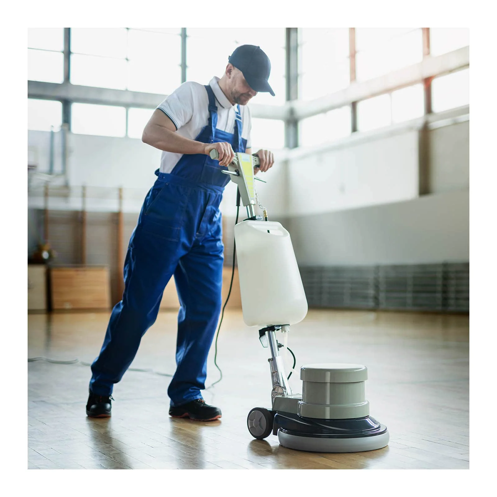 Floor Scrubber for Cleaning and Polishing High Performance 1100W motor drives the 42cm (17-inch) brush at 155 rpm Versatility capable of cleaning and polishing a wide variety of surfaces Maneuverability compact and lightweight design for easy maneuvering Simplicity user-friendly machine with quick and easy-to-change accessories (pads, brushes) Ergonomics suitable for people of varying heights thanks to its height-adjustable handle Whether you work in a hotel, supermarket, or high-traffic office building, a clean floor inspires greater confidence in your customers. For fast and efficient cleaning, the floor scrubber is the ideal solution. It is suitable for a wide variety of floor coverings PVC, marble, wood, linoleum and can also be used to polish surfaces to restore their original shine. Thanks to its powerful 1100W motor and 155 rpm rotation speed, this floor scrubber tackles even the most stubborn dirt. It comes equipped with two 42.2cm (17-inch) diameter brushes. Cleaning is a two-step process: a shampoo brush handles the pre-wash, followed by a cleaning brush that removes any remaining dirt. When fitted with a shampoo brush and a microfiber pad, the floor scrubber creates a rich lather and deep cleans carpets and rugs. For polishing, three pads with varying degrees of hardness are available, depending on the type of surface you wish to shine. The various accessories (brushes and pads) are easily interchangeable without tools. The floor scrubber is very easy to use and requires no prior knowledge. Once assembled, it is immediately ready to use. It maneuvers smoothly on any surface. Thanks to its compact size, the scrubber-dryer is easy to maneuver in tight spaces. Furthermore, its ergonomic handle is height-adjustable, allowing you to maintain good posture and protecting your back. Voltage/Frequency 230V/50Hz Power 1100W Brush Speed 155 rpm Clean Water Tank Capacity 12L Brush Diameter 17 inches (42.2 cm) Wheel Material TPE + PP Power Cord Length 12m Dimensions (L x W x H) 147.00 x 42.00 x 119.00 cm Weight 39.00 kg Shipping Dimensions (L x W x H) 163.80 x 120.80 x 251.20 cm Shipping Weight 51.00 kg Package Contents Scrubber Handle Water Tank Cleaning Pad Holder 3 Cleaning Pads Shampoo Brush Scrubber Scrubbing Polymetric wrench User manual Can cleaning products be used with this machine? Yes. You can pour cleaning product into the clean water tank.