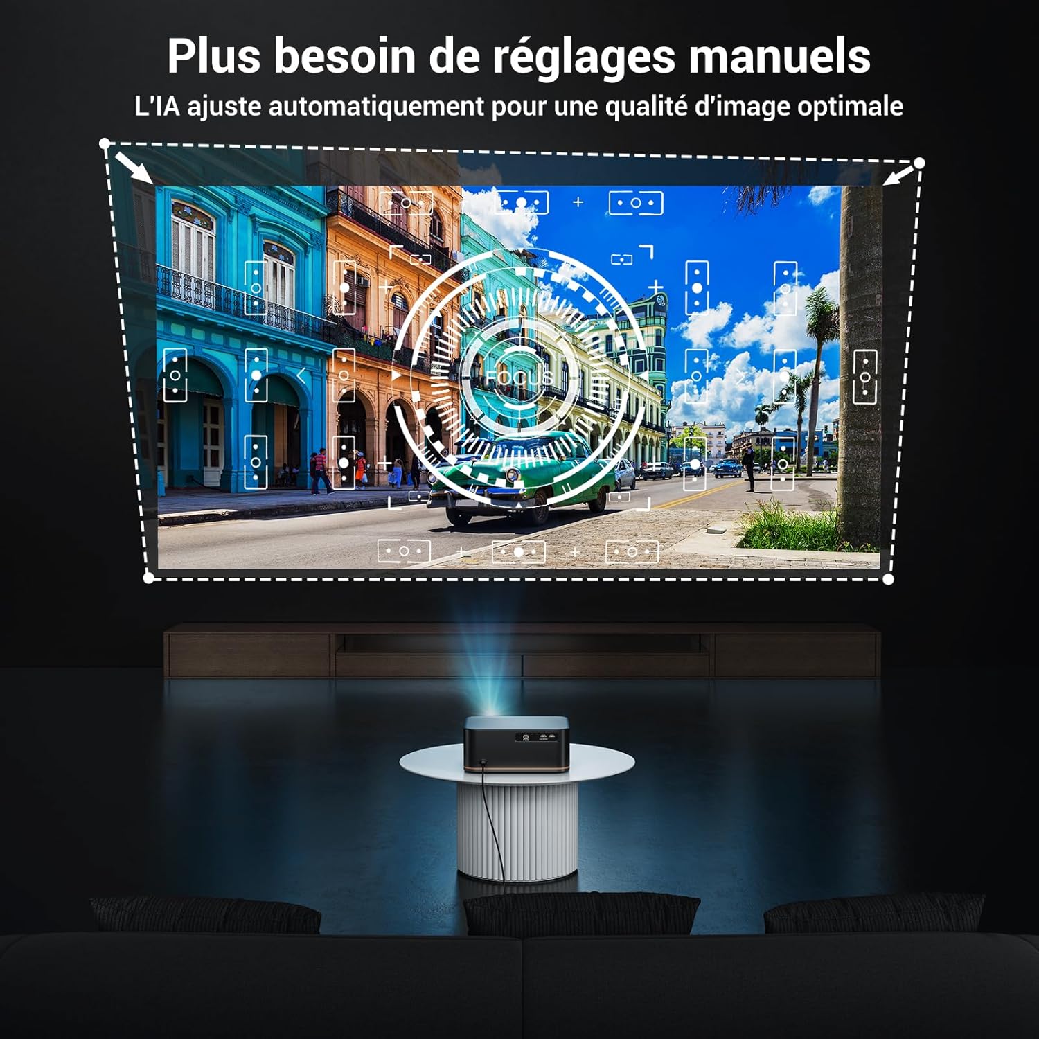 AI Intelligent Adjustment The HAPPRUN projector features autofocus and 6D keystone correction, delivering a perfect rectangular image in just 5 seconds! This 4K projector also boasts AI obstacle detection and automatic screen alignment, instantly adapting to wall, ceiling, or desktop mounting without complex adjustments. Achieve 50% to 100% image scaling without moving any devices. You can also switch between 4:3 and 16:9 aspect ratios and enjoy multiple projection modes, turning any space into a private cinema whether at home, in the garden, or on the go. 1500 ANSI Lumens & 4K Support This 4K projector boasts a powerful 1500 ANSI lumens of brightness and supports native 4K resolution, ensuring clear and vibrant images day and night. With a high contrast ratio of 20000:1 and 95% color gamut, it delivers highly saturated colors, deep blacks, and rich details even in moderate ambient light. This 4K projector immerses you in a cinematic audiovisual experience with accurate color and lifelike detail reproduction. Whether indoors, in the garden, or outdoors, it transforms every moment into a visual feast. [Superior Audio: 8W Speakers & Two-Way Bluetooth 5.2] This 4K Bluetooth projector features built-in 8W HiFi speakers for rich and nuanced sound. With two-way Bluetooth 5.2, you can connect external speakers or use it as a Bluetooth projector for your phone. With Wi-Fi and Bluetooth capabilities, this projector is ideal for smartphone projection, delivering a comprehensive entertainment experience. [Ultra-Fast Wi-Fi 6: 9.6 Gbps Zero Latency] This dual-band (2.4 GHz/5 GHz) 4K projector supports wireless mirroring for iOS/Android devices. Wi-Fi 6 technology boasts throughput of up to 9.6 Gbps, 40% faster than Wi-Fi 5, ensuring smooth and stable video transmission for perfect HD streaming content. This projector is ideal for outdoor projection or laptop projection, providing the best connected experience. [Multiple Connection Options & Wide Compatibility] This 4K projector features 2 HDMI ports, 2 USB ports, 1 AV input, and 1 3.5mm headphone jack. It's compatible with TV sticks, Chromecast, Roku, iOS/Android smartphones, PCs, laptops, PS4/PS5, and more. This wall-mounted and outdoor video projector boasts a massive 300-inch screen with 50% zoom, fitting into any space. Perfect for home theaters, outdoor parties, gaming, yoga, birthday parties, and concerts. [Worry-Free Shopping Experience & Reliable After-Sales Service] HAPPRUN 4K video projectors offer 24/7 support, a 30-day money-back guarantee, a 2-year repair warranty, and lifetime technical support. Whether you're using an outdoor video projector or any other 4K projector, feel free to contact us with any questions: we're dedicated to serving you and continuously improving our products.