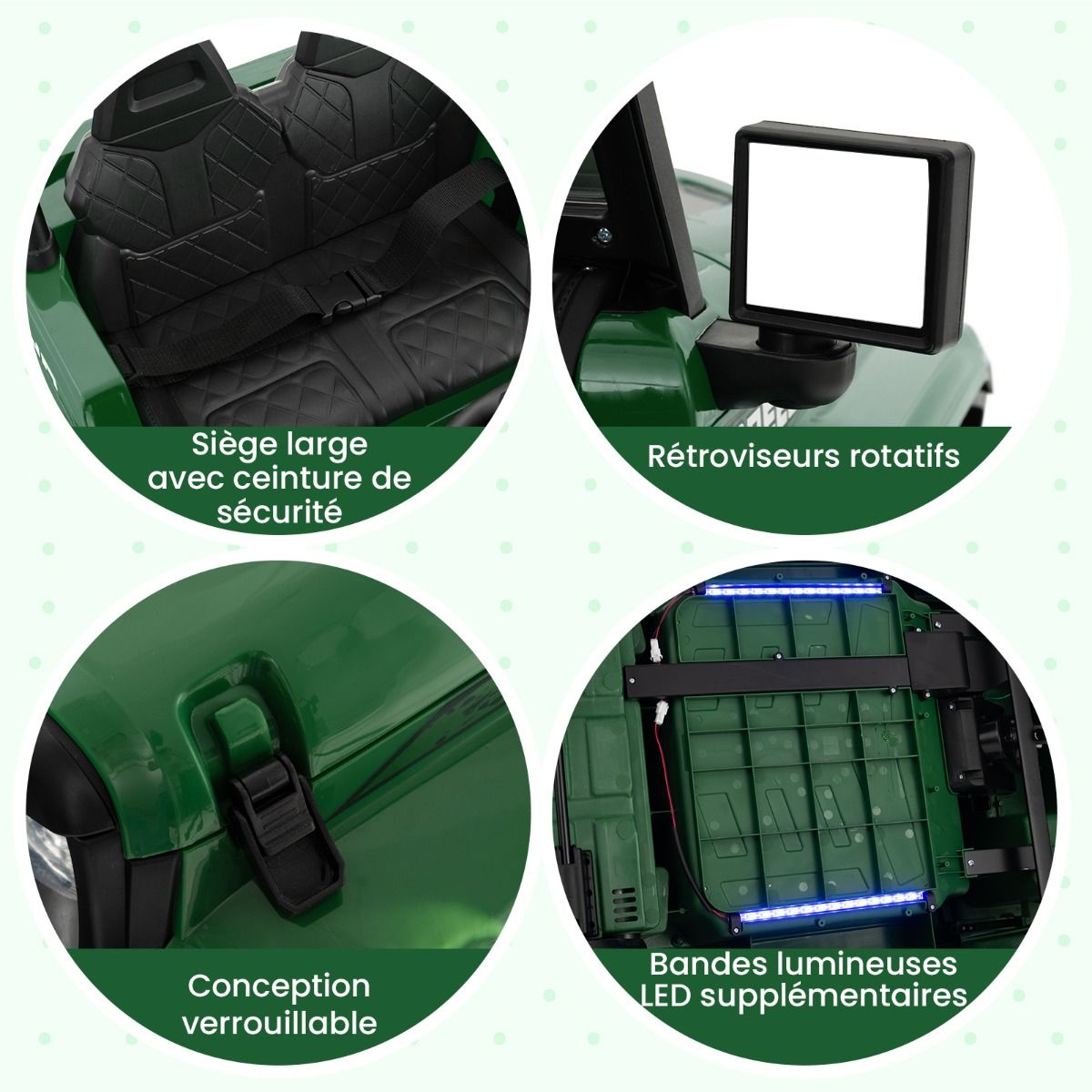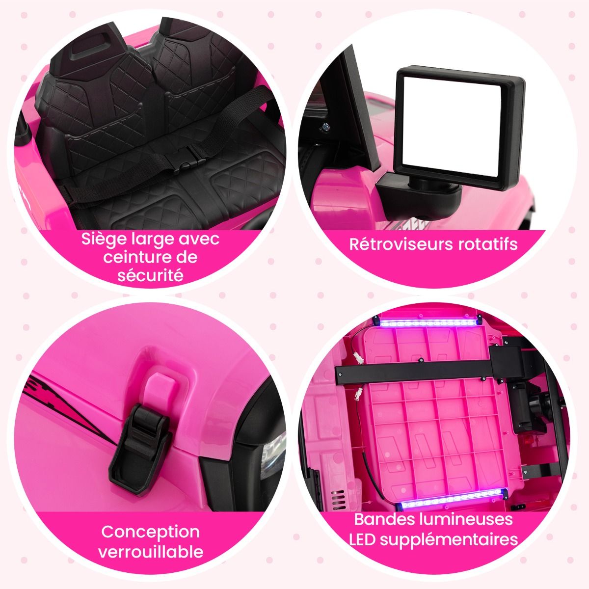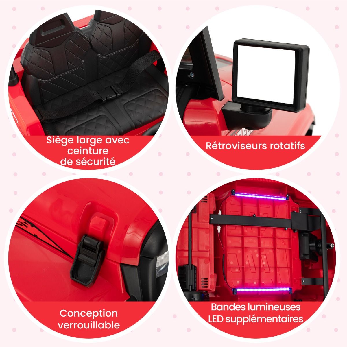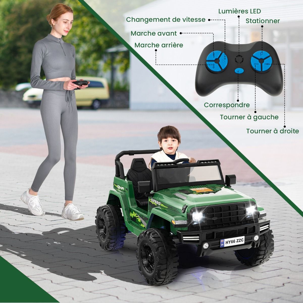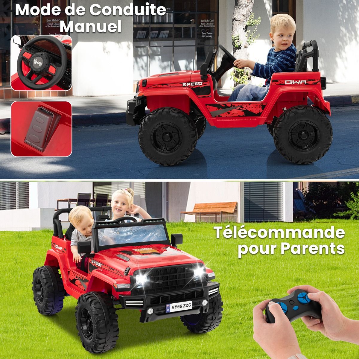 This electric children's car is made of durable and safe PP and metal materials, ensuring longevity. The spacious seat with a seatbelt can accommodate up to two children. Younger children can operate it using a remote control. As children grow older, they can manually drive using the steering wheel and pedals for a realistic driving experience. Rotating rearview mirrors, large wheels, music, and a USB interface keep children entertained while driving. Bright LED lights and LED light strips add even more fun. Product Features: Superior PerformanceThis car is equipped with a 24V battery and motor, providing powerful performance. A full charge allows children to play continuously for up to two hours. Furthermore, it features a low-speed gear of 2.6 to 3 km/h and a high-speed gear of 5.5 to 6 km/h, allowing children to choose their preferred forward or backward speed. Two Driving ModesFor younger children, parents can use the remote control to ensure safety. Older children can drive independently for a more immersive driving experience. Additionally, the fully functional steering wheel can emit horn and engine sounds, adding more fun. Safe and Stable StructureThis children's four-wheel drive car is made of high-quality PP material and sturdy metal, ensuring durability. The spacious seat, equipped with a seatbelt, can safely accommodate two children. More importantly, the four large, non-slip, and wear-resistant wheels ensure excellent performance on various road surfaces. [Multi-functional Control Panel] The one-button start function makes this children's electric car easy to operate. Children can enjoy music or the built-in radio while driving. Additionally, you can connect electronic devices via USB to play their favorite songs. The car is also equipped with lights and bright LED light strips, adding even more fun. [The Perfect Children's Holiday Gift] This 24V electric car features a child-friendly design, making it a wonderful gift for children aged 3 to 8, accompanying them as they grow. They can enjoy the fun of driving with friends. At the same time, you can also enhance parent-child interaction during family time. Features: Manual or parental control driving modes; spacious seat with seatbelt, accommodating up to two children; operable steering wheel with horn and engine sounds; simulated dashboard and buttons for an immersive experience; forward/reverse speed and high/low speed modes to meet different needs; pleasant music and bright LED lights add to the fun; soft start and one-button operation ensure safety; made with durable and safe materials for a longer lifespan; large wheels adapt to various road surfaces; long-lasting 24V battery for extended playtime; an ideal gift for children aged 3-8; easy to assemble and use, with detailed instructions included. Specifications: Colors: Red/Pink/Green; Material: PP, Metal; Overall Dimensions: 77 x 115 x 67 cm (L x W x H); Seat Dimensions: 20 x 40 x 27 cm (L x W x H); Maximum Weight Capacity: 35 kg. Recommended Age: 3-8 years old Battery/Motor: 24V Low Speed: 2.6-3 km/h High Speed: 5.5-6 km/h Charging Time: 8-12 hours Running Time: 1-2 hours Charger: DC 24V output Net Weight: 16 kg Package Contents: 1 x Children's Electric Car, 1 x Remote Control, 1 x Charger, 1 x Instruction Manual