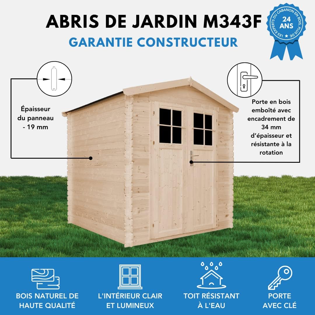 Wooden garden shed with treated floor, high-quality lockable door - Outdoor storage 3.55 m2 (216 x W206 x H218 cm) - Waterproof roof, windows M343F+M343G