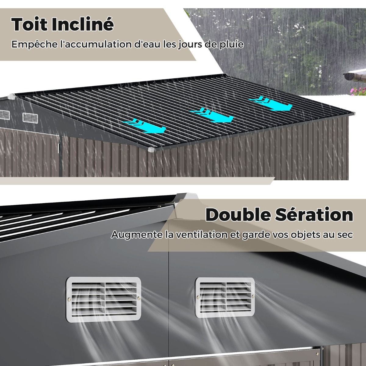 • Large Outdoor Storage Shed/Tool Shed with Sloping Roof Design, Lockable Doors with Keys, 4 Ventilation Vents, 350x350x198cm, Grey