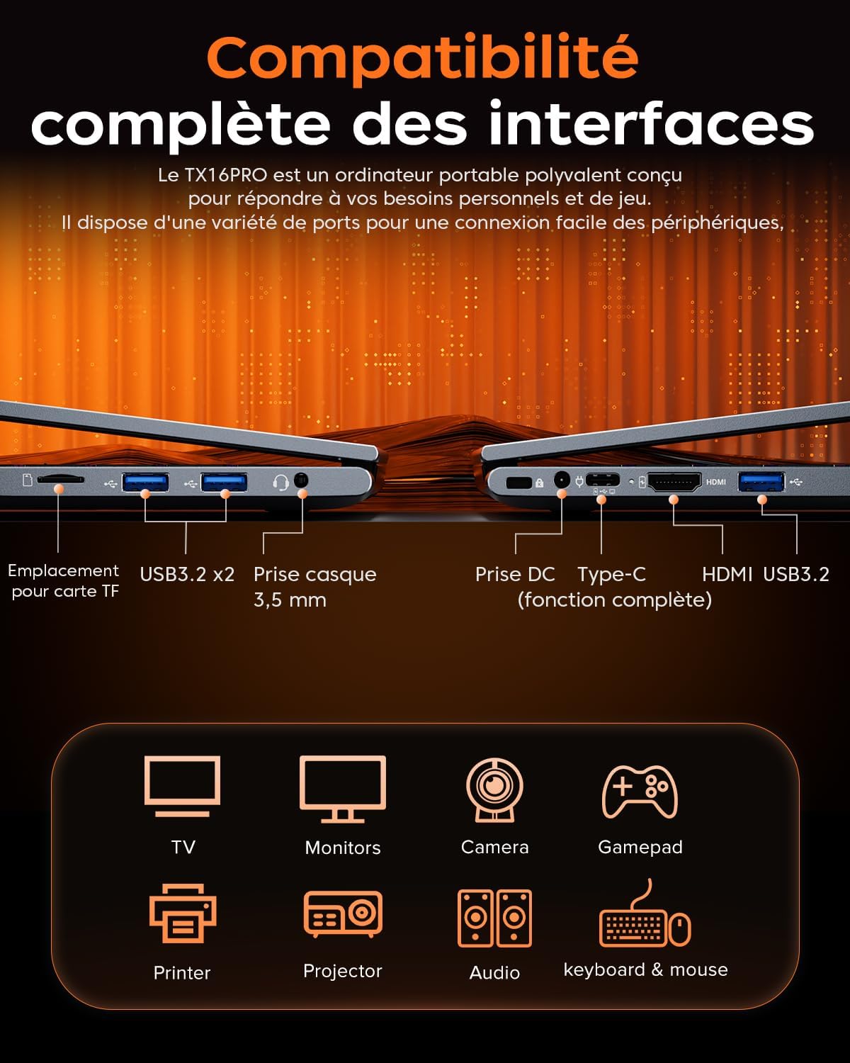 The Acemagic 2025 gaming laptop features an 8-core Ryzen 7 5825U processor with 8 cores and 16 threads, boasting a maximum turbo frequency of 4.5 GHz, and integrated Radeon Graphics 2.0 GHz. It also features adjustable battery life, allowing for flexible operation and maximizing battery life while intelligently running various office software, video editing programs, and playing demanding games, thus improving work efficiency! Ample memory: 16GB-64GB DDR4 RAM, 512GB M.2 2280 NVMe PCIe 3.0 SSD, expandable up to 4TB. Our laptop comes equipped with 16GB DDR4 SO-DIMM 2666 MHz RAM, expandable up to 64GB; a 512GB M.2 SSD, expandable up to 4GB, and supports PCIe 3.0, providing high-speed and efficient data transfer for a super-fast gaming experience and data transfer speeds! Metal casing and backlit keyboard: The most worthwhile investment in a laptop is its metal casing! Durable and scratch-resistant, it also promotes heat dissipation, keeping it looking new even after long-term use. The backlit keyboard emits a captivating blue glow in the dark, providing a precise typing experience and a stylish, high-tech look. Three customizable power modes: In High Performance mode, unleash full processing power to easily handle games and heavy workloads. Balanced mode is perfect for everyday office work, such as web browsing and document editing, balancing speed and battery life. When on the go, Optimal Energy mode maximizes battery life without sacrificing essential functions. Elevate your laptop experience now! 16:10 widescreen ratio & 1920*1200 60Hz Full HD screen. This 16-inch Full HD screen boasts a 1920*1200 resolution and a 16:10 widescreen ratio, delivering a crisp and sharp visual experience. A wide color gamut and a 60Hz high refresh rate make images more vivid, realistic, and fluid. Extremely high color fidelity ensures every detail is clearly presented. Whether it's magnificent scenery or intense battle scenes in the game, everything is presented with optimal effect, helping you gain the upper hand in the game. [Immersive Connectivity: WIFI 6, Bluetooth 5.2, Full-size Type-C Port, DMIC*2, HDMI Port] Equipped with 3 USB 3.2 ports, 1 HDMI port, 1 3.5mm headphone jack, 2 DMICs, and a full-size Type-C port, meeting all your data transfer and video output needs! Furthermore, WIFI 6 and Bluetooth 5.2 ensure seamless connectivity in any environment! 1. 4TB High-Capacity Solid State Drive 2. Backlit Keyboard 3. 4800mAh 54.72Wh Battery 4. Abundant Ports 3. USB 3.25 Ports Ultra-fast WIFI 6 Choose the Mode for Your Travel: Highest Performance Mode: Ideal for gaming or video editing. Fully utilizes hardware performance, providing smooth multitasking and high-speed processing. Balanced Mode: Perfect for everyday activities such as web browsing. Balances power consumption and performance while offering good battery life. Best Power Saving Mode: Traveling? Save power. This mode optimizes the system, reducing power consumption while maintaining essential functions. 1 Enjoy a variety of games 2 Immersive experience, always having fun. Welcome to ACEMAGIC? What are the biggest differences between the TX16PRO and AX16PRO laptops? The latest TX16PRO features 16GB 2666MHz DDR4 SO-DIMM memory, with options up to a 64GB SSD, and a 512GB M.2 2280 NVMe PCIe 3.0 SSD, with options up to a 4TB SSD; while the AX16PRO features two 16GB 2666MHz DDR4 SO-DIMM memory modules and a 512GB M.2 2280 NVMe SSD. What are the differences in the screens of the TX16PRO and AX16PRO laptops? The latest TX16PRO model features a 16-inch screen with a resolution of 1920*1200, which is clearer than the AX16PRO, and the screen ratio is 16:10.
