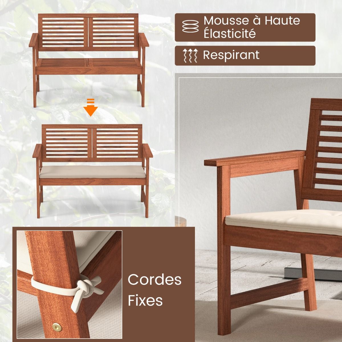 Wooden Garden Bench with Backrest, Slatted Seat, Armrests, Removable Cushion, 2 Seats, 150KG Load Capacity, Indoor/Outdoor Use