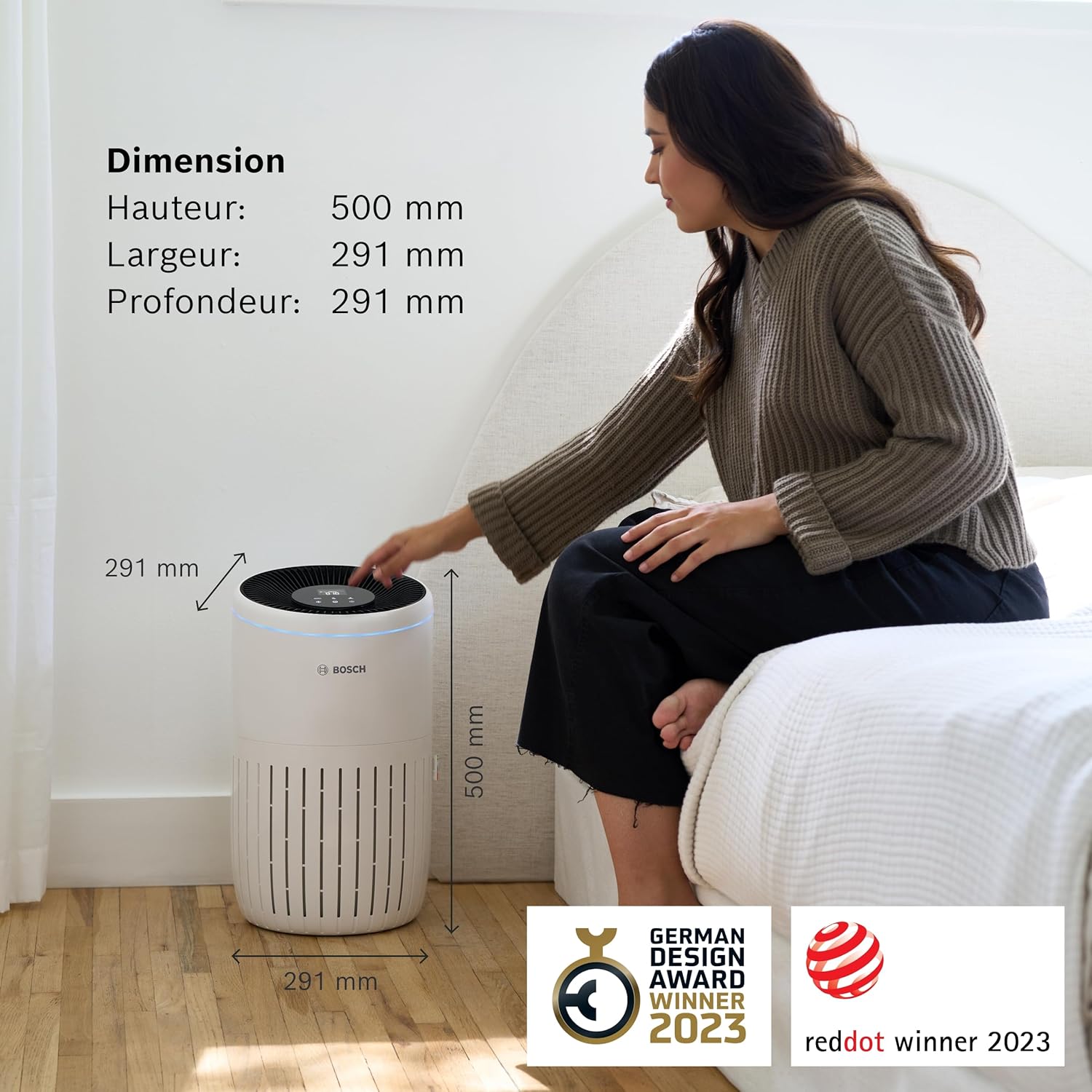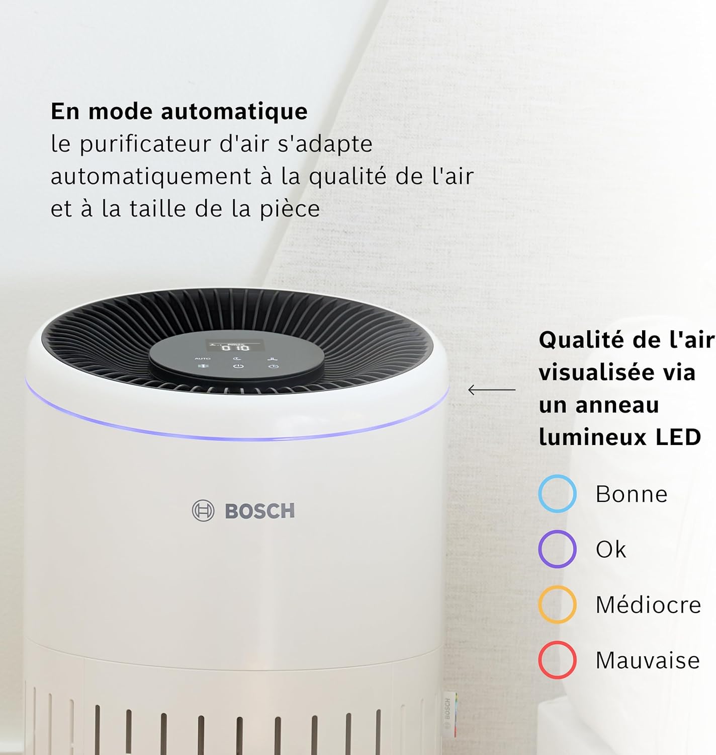 Bosch Air 4000 - Air Purifier - For rooms up to 62.5 m2 - Effectively filters over 99% of pollutants - Intelligent sensor, auto and silent modes (< 25 dB(A)) - CADR: 300 m3/h