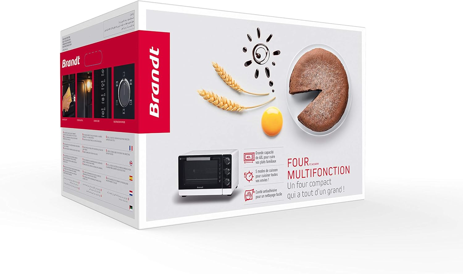 • BRANDT - FC405MW - Compact countertop mini oven, 2100W - 40L capacity - Multifunction with 5 cooking modes - Even cooking - Double glazing - White