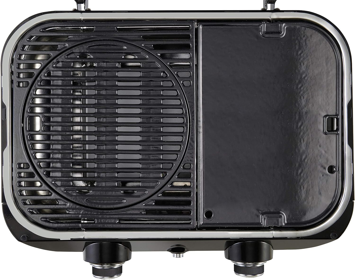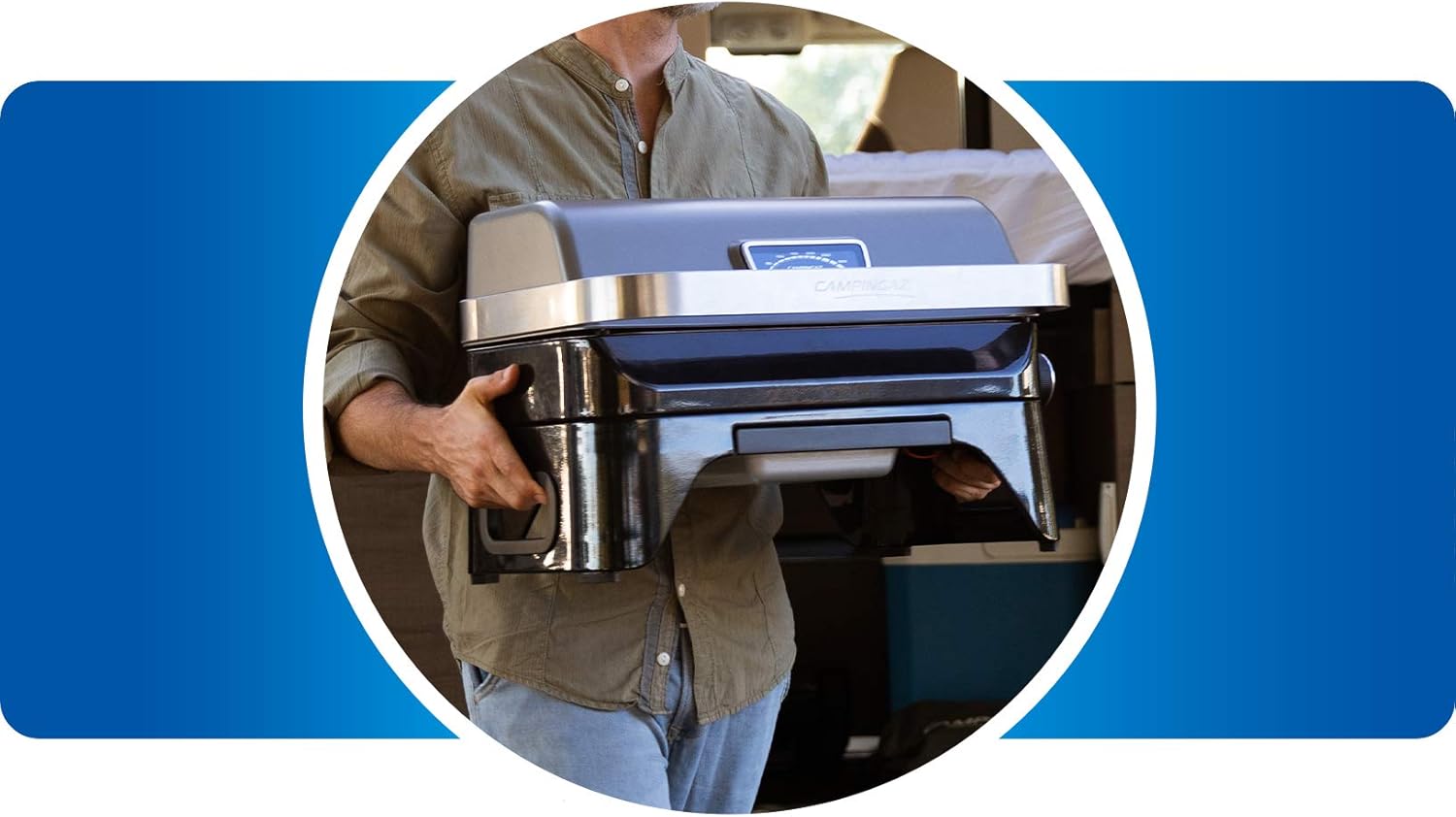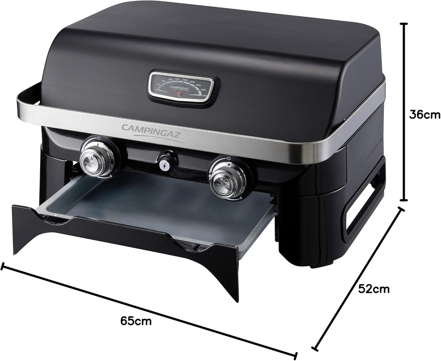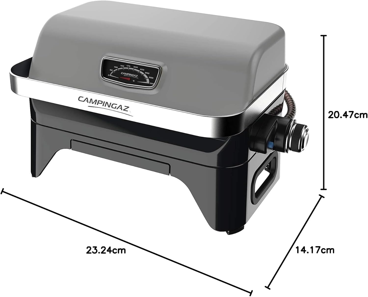 About this item COMPACT SIZE, BIG PERFORMANCE: Its 2.4 kW stainless steel burner distributes heat evenly across the entire grilling surface; a compact tabletop barbecue for balconies, picnics, and camping. LARGE GRILLING SURFACE WITHOUT FLAME: Despite its compact size, this barbecue grill offers a generous 48 x 26 cm enameled cast iron grilling surface; integrated flame cover. RUNS WITH A CV 470 PLUS GAS CARTRIDGE: Easy connection thanks to the EasyClic Plus system and usable everywhere thanks to the European gas network; visit campingaz.com/gasfinder. MORE TIME FOR WHAT MATTERS: No assembly required; this camping barbecue comes fully assembled. Cleaning after use is simple thanks to its dishwasher-safe grease trap. TOP-LEVEL EQUIPMENT: Piezoelectric ignition, lid with thermometer, cast iron grate, weight 13 kg, dimensions closed 59 x 52 x 36 cm, open 59 x 47 x 61 cm, hose and cartridge fitting included The pleasure of barbecuing always at your fingertips. The Attitude 2go CV is a tabletop barbecue powered by a cartridge that offers all the advantages of a classic gas barbecue in a compact, urban format. It comes fully assembled with all the necessary fittings; all you have to do is connect the cartridge before you can start grilling