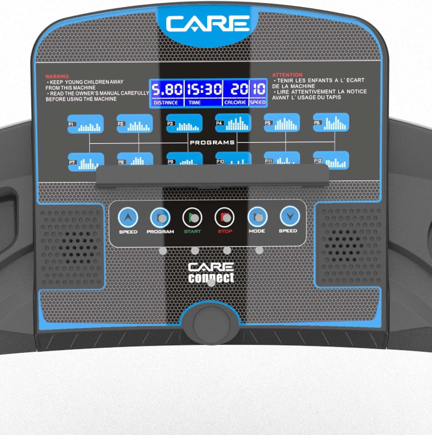 • Care Fitness - Connected Treadmill - Foldable - Maximum Speed 14 km/h - Electric Walking Treadmill with Incline and Foldable Design - 12 Training Programs - 3 Inclines