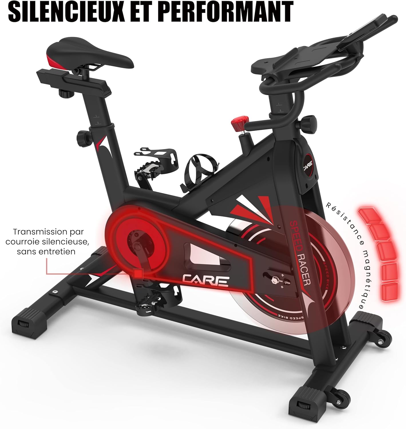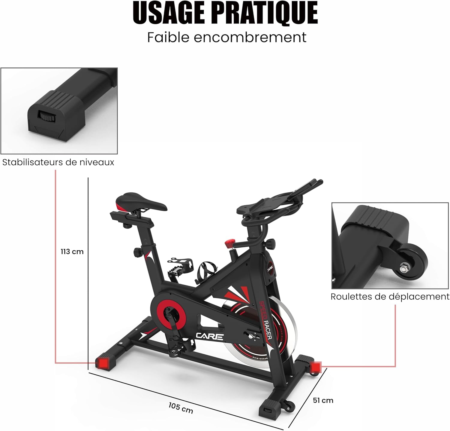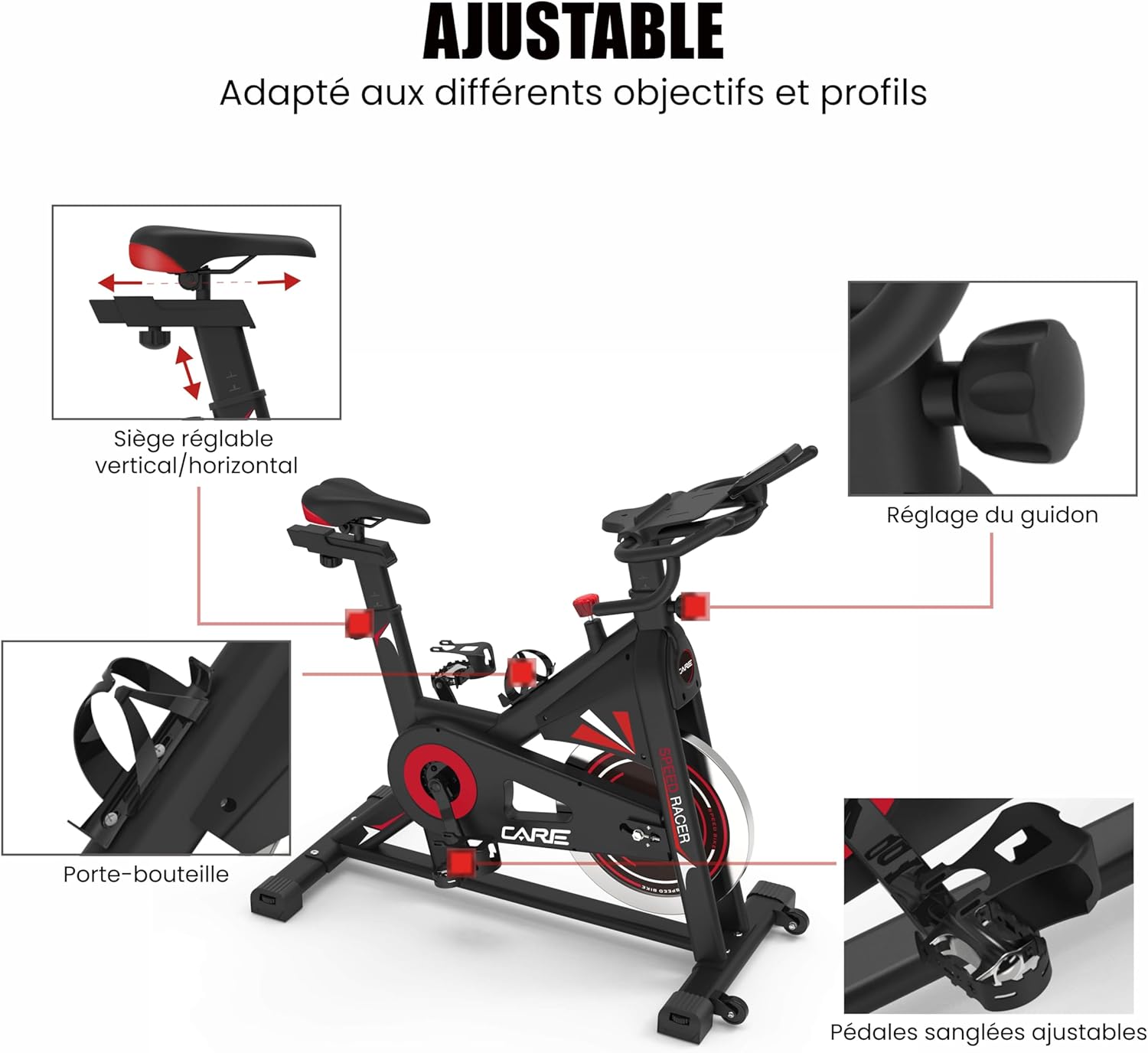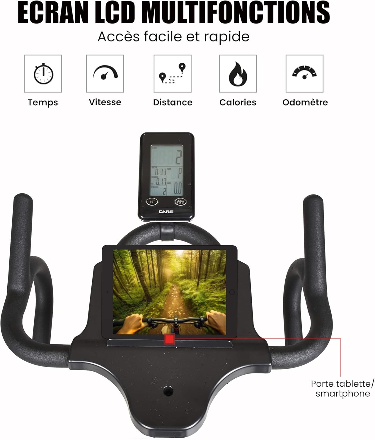 • CARE FITNESS - EXERCISE BIKE - Speed Racer - stationary bike with LCD screen - 22kg flywheel - Adjustable handlebars and seat