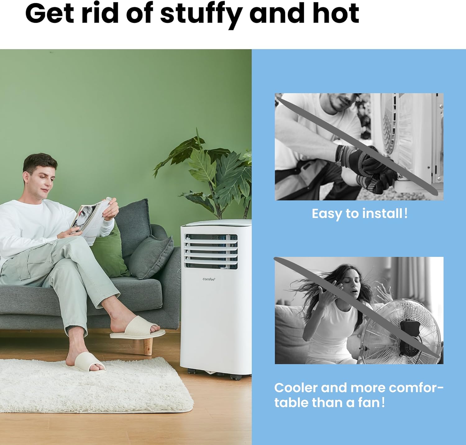 COMFEE' Portable Air Conditioner 9000 BTU/h 2.6kW, 3-IN-1 Cooler Dehumidifier Fan, Follow Me Function, Timer, Night Mode, For Living Room and Home up to 33�O/88m3, MPPH-09CRN7, R290