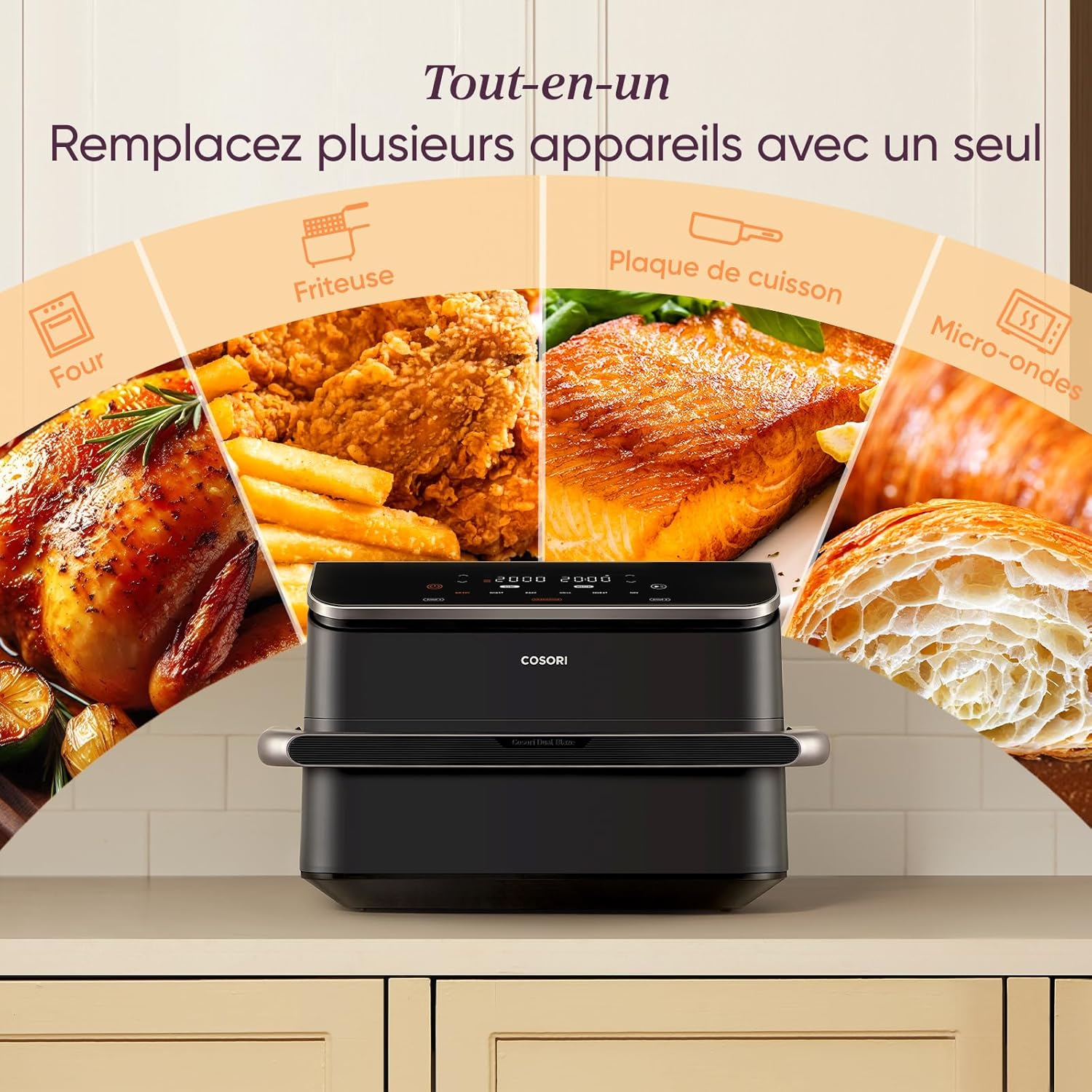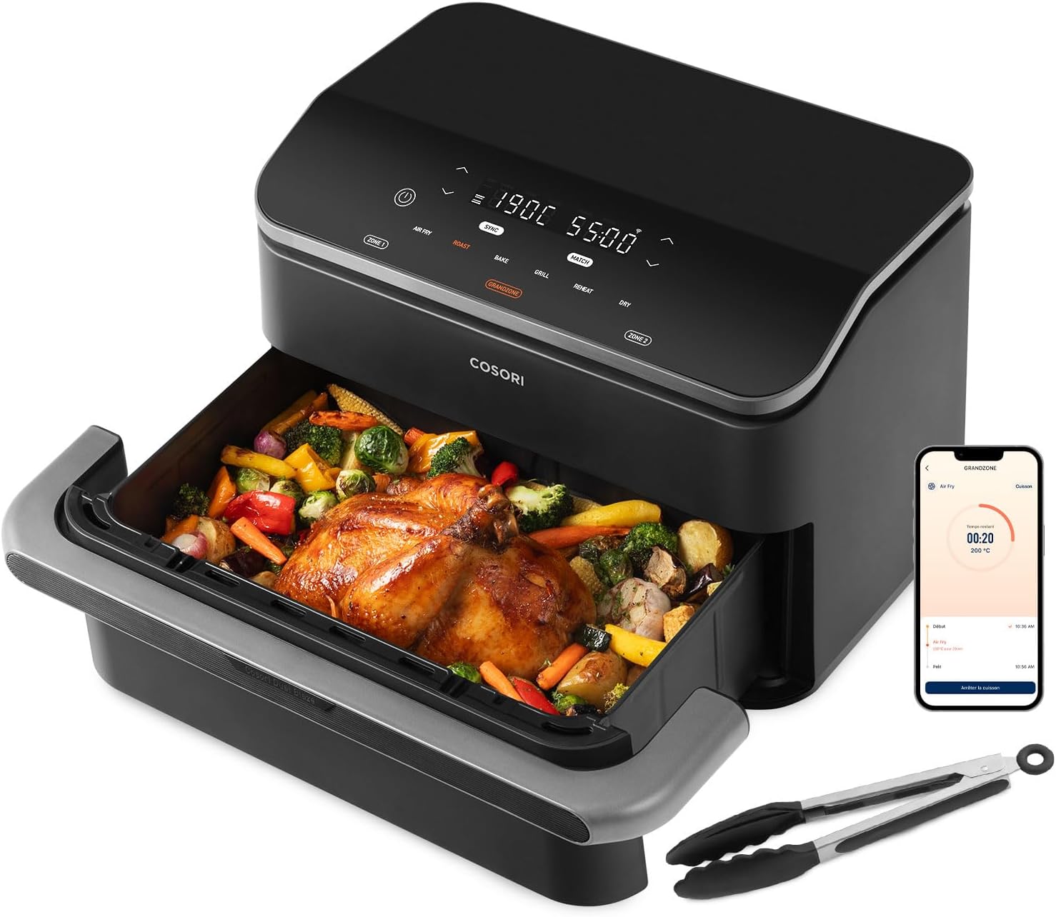 Smart cooking: Thanks to Cosori's TwinFry technology, cooking is 35% faster and 66% more energy-efficient*, for delicious meals ready in no time! *Test conducted with sausages, compared to a traditional four-pack. Results may vary.