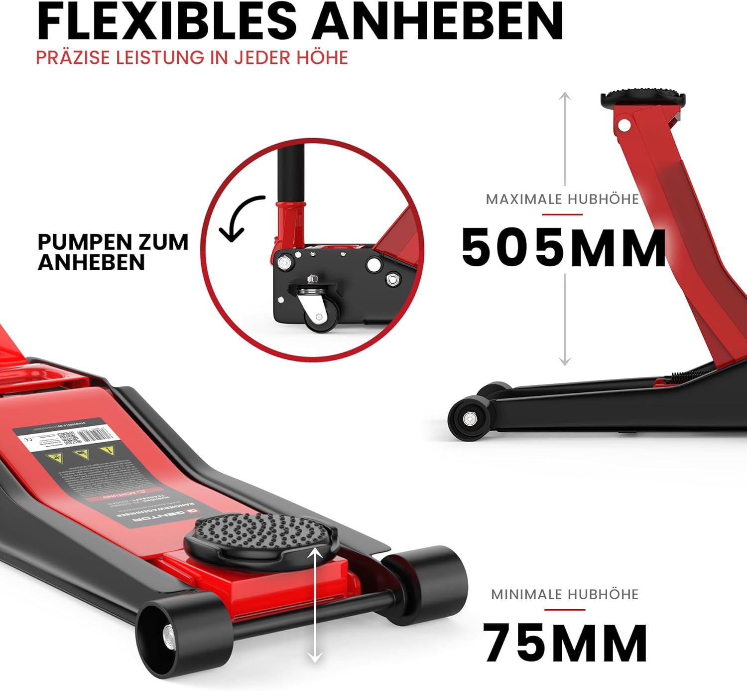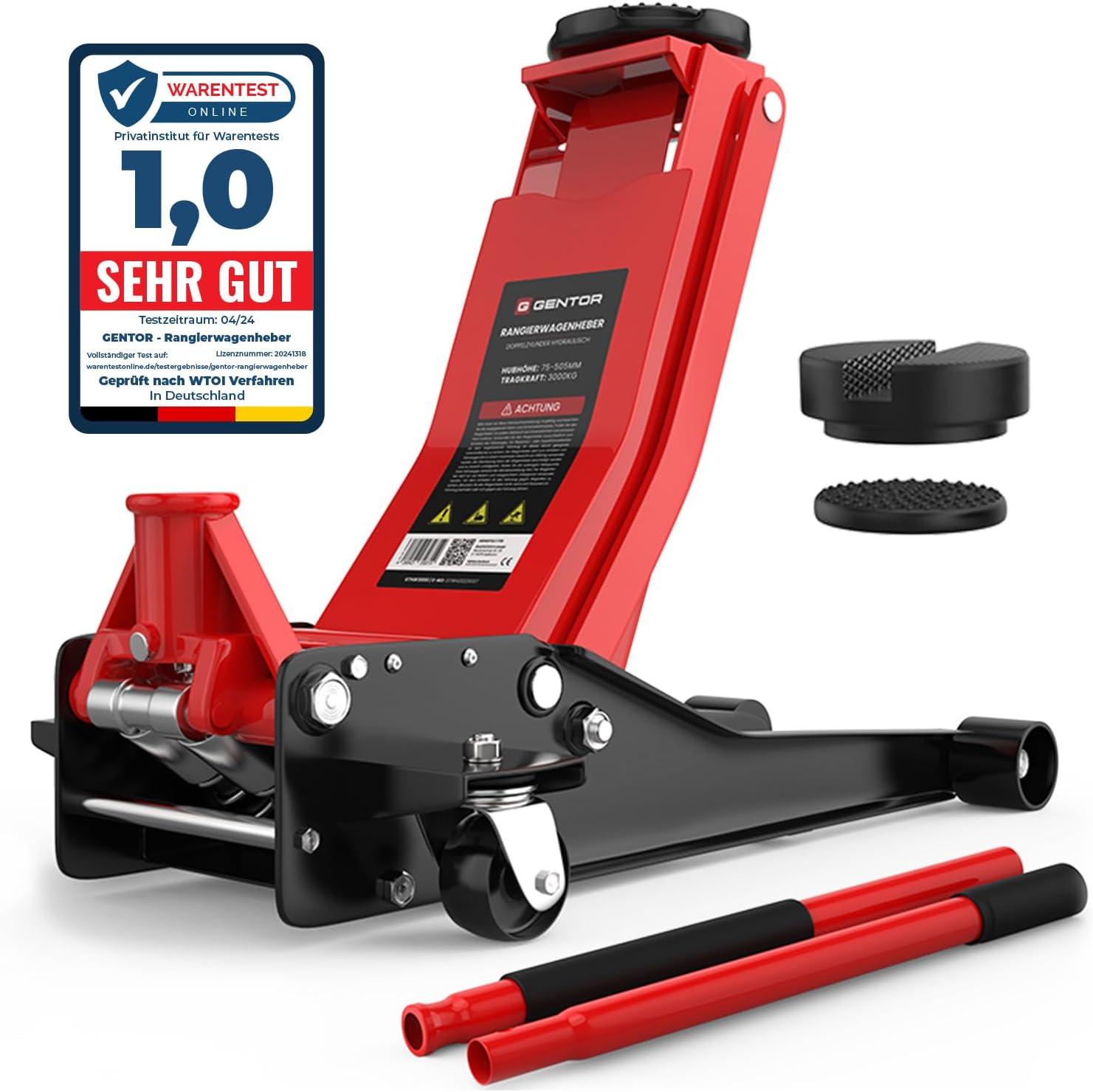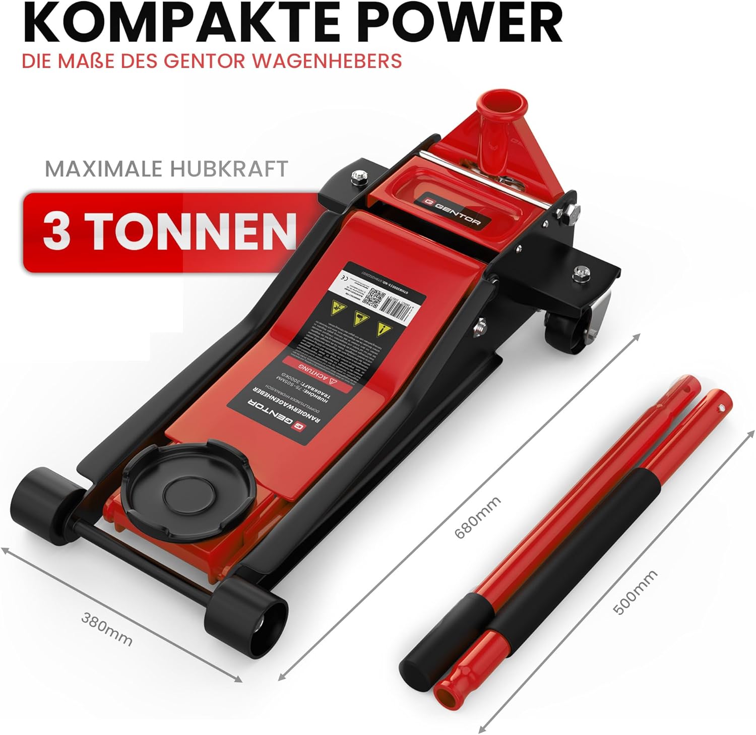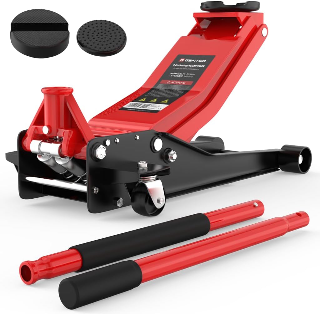 This 3-ton hydraulic jack is ideal for DIY enthusiasts, easily usable in your backyard or garage for repairing cars or other equipment. Whether changing a tire or doing other jobs, the GENTOR flatbed jack is your best choice. Safe Lifting This jack easily hydraulically lifts flat loads up to 3 tons/3000 kg. The rubber coating on the lifting platform prevents slippage, allowing you to lift and unload without worry. Additionally, the rubber grips prevent the lifting rod from slipping. Easy Access to Deep Surfaces: This flatbed jack has a minimum lifting height of 75 mm and a maximum lifting capacity of 3 tons. A lifting height of up to 505 mm creates ample space for any operation on vehicles and equipment. Even the deepest surfaces can be easily reached with this flatbed hydraulic jack. Hydraulic System: The Quicklift lifting system uses two hydraulic cylinders to ensure safe and rapid lifting and lowering. This allows this 3-ton jack to be quickly ready for work and put into use. Easy Operation: Thanks to two swivel casters and two wheels, this jack can be easily positioned as needed, even with a load capacity of up to 3 tons. Adjusting the hydraulic jack to a level surface is a breeze, and you don't need to worry about heavy casters. Explore the GENTOR 3-ton hydraulic jack a mobile lift for all vehicles. The GENTOR 3-ton hydraulic jack is ideal for those seeking stability, safety, and maximum lifting capacity. Whether for personal use, workshop operations, or motorsport, this jack impresses with its superior performance, quality, and meticulous design. Ultra-thin design, built for low-chassis vehicles: With a minimum height of only 75 mm, this jack is perfect for sports cars, low-chassis vehicles, or low-slung sedans. Even SUV owners can benefit from its impressive lifting height of up to 505 mm far exceeding many traditional jacks. Quicklift dual-cylinder hydraulic system fast and efficient: The integrated dual-cylinder hydraulic system enables rapid lifting with easy and effortless operation. Just a few pumps are all it takes to lift ideal for changing tires, repairs, or maintenance, whether in the workshop or on the road. Steel construction ensures maximum safety and durability: GENTOR jacks are made of robust steel for long-lasting performance. Their sturdy structure easily supports weights up to 3 tons, ensuring reliable support every time. Practical features for everyday and workshop use: Extra-long (1000 mm) non-slip handles, rubber-reinforced lifting platforms, and foam padding provide superior user comfort while effectively protecting the vehicle. A mobile professional tool for car enthusiasts and professionals: Two swivel casters and two fixed casters ensure agile handling even on uneven surfaces. An integrated handle makes it easy to carry, whether in the workshop, on the track, or on the go. Versatile: GENTOR jacks can be used as car jacks, hydraulic jacks, mobile jacks, or professional lifting equipment, adapting to various usage scenarios with their professional-grade performance. Summary: Superior quality and meticulously designed technology. Choosing the GENTOR 3T means choosing a high-end, safe, and durable lifting tool that meets all the needs of the modern automotive industry. For anyone who values ??quality, precision, and lifting capacity, this is an essential choice. Scope of delivery: GENTOR 3-ton hydraulic jack, two-section handle, 2 anti-slip rubber pads, German user manual. GENTOR hydraulic jacks ideal for easily lifting vehicles. Jacks are indispensable tools in any garage or repair shop. Choosing the right model makes lifting vehicles simple and safe. GENTOR hydraulic jacks combine quality, safety, and high performance, making them ideal for individual users, DIY enthusiasts, and professionals. Hydraulic jacks the perfect combination of reliability and power. GENTOR hydraulic jacks utilize advanced hydraulic technology to lift vehicles quickly and easily.