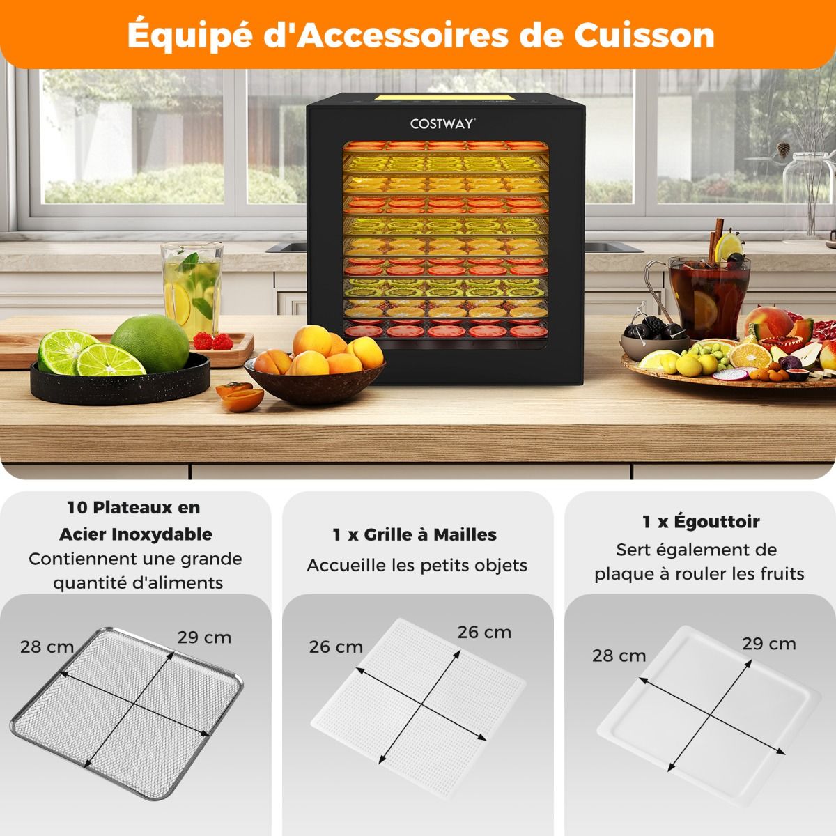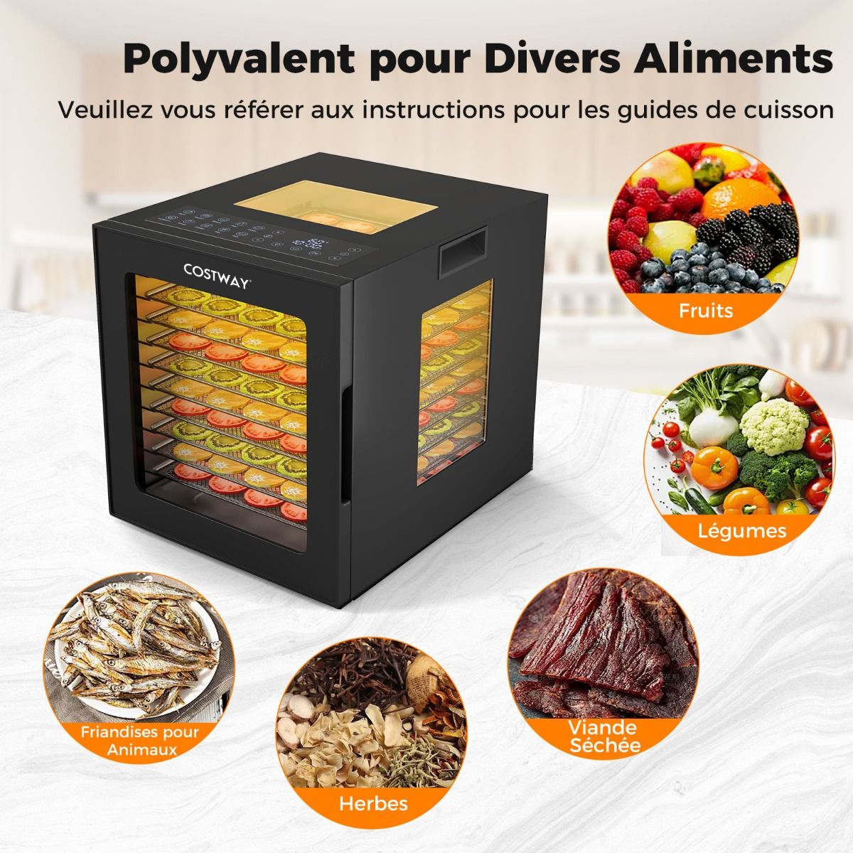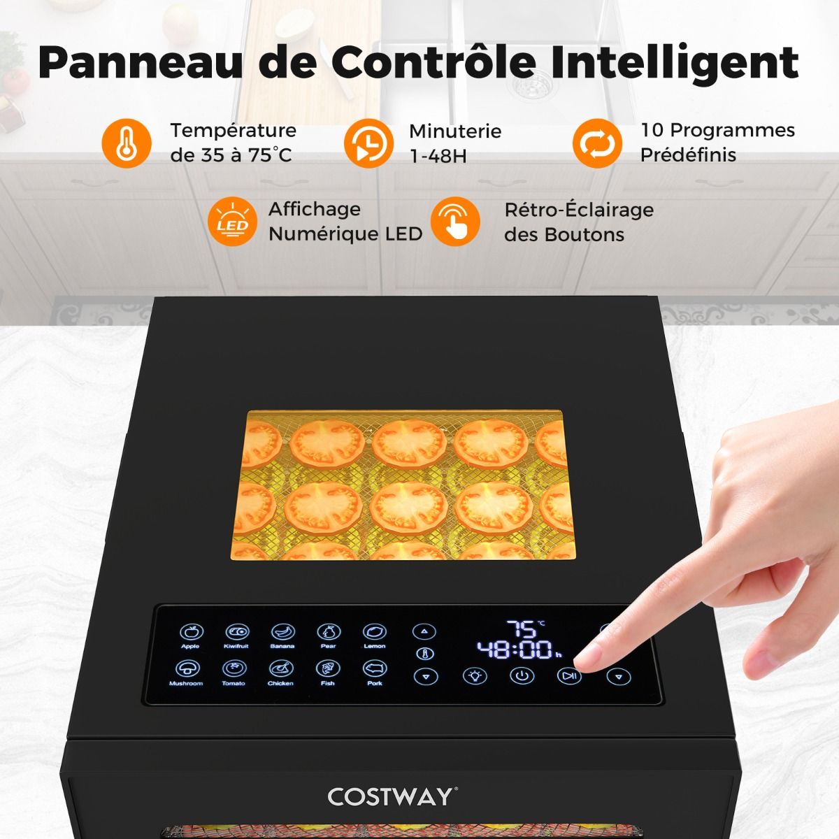 • Food Dehydrator with 10 Stainless Steel Trays, 10 Preset Programs, 48H Timer & 30-75 Temperature Range, Black -