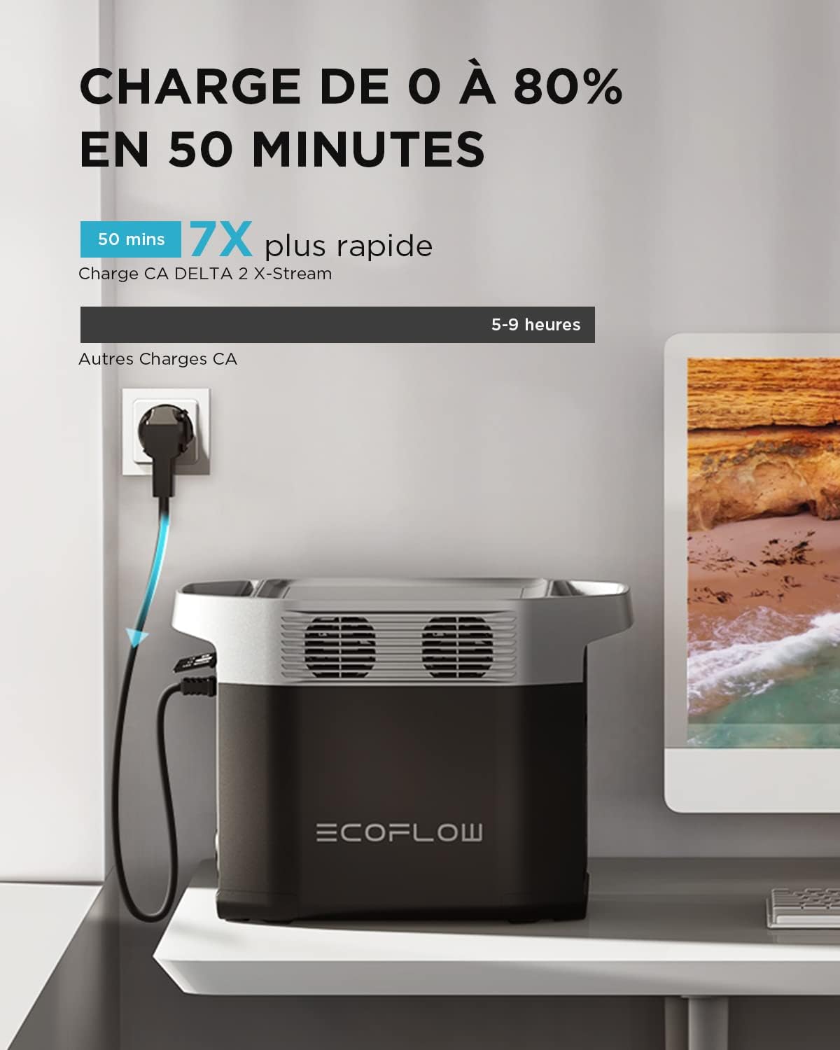 • EcoFlow DELTA 2 Portable Power Station with scalable capacity of 1-3 kWh, LFP battery, fast charging, solar generator for home backup power, balconies, camping and motorhomes