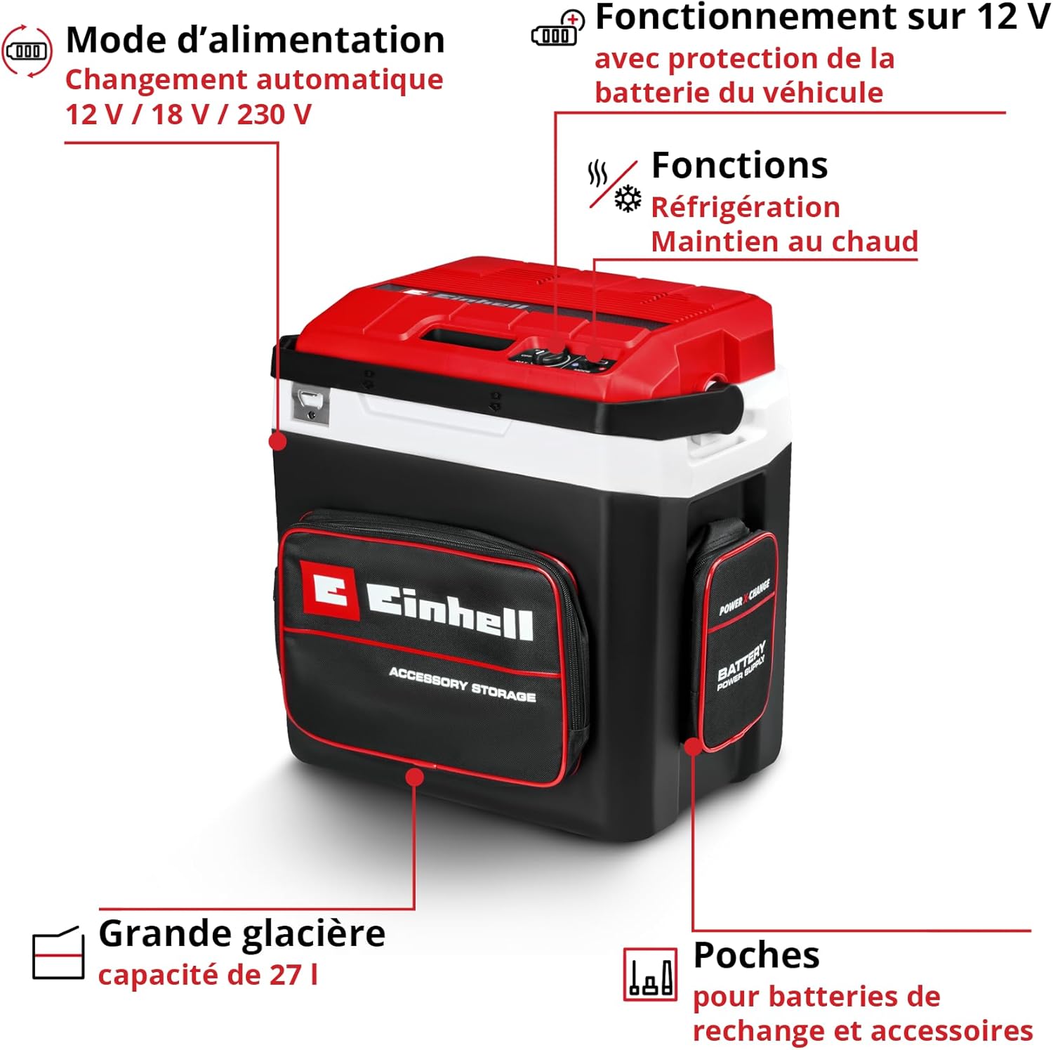 Einhell TE-COL 18/27 Li-Solo Power X-Change Cordless Portable Cooler (18V, 27L, cools and keeps warm, 12V hybrid mode for car and 230V mains, with pockets, without battery)