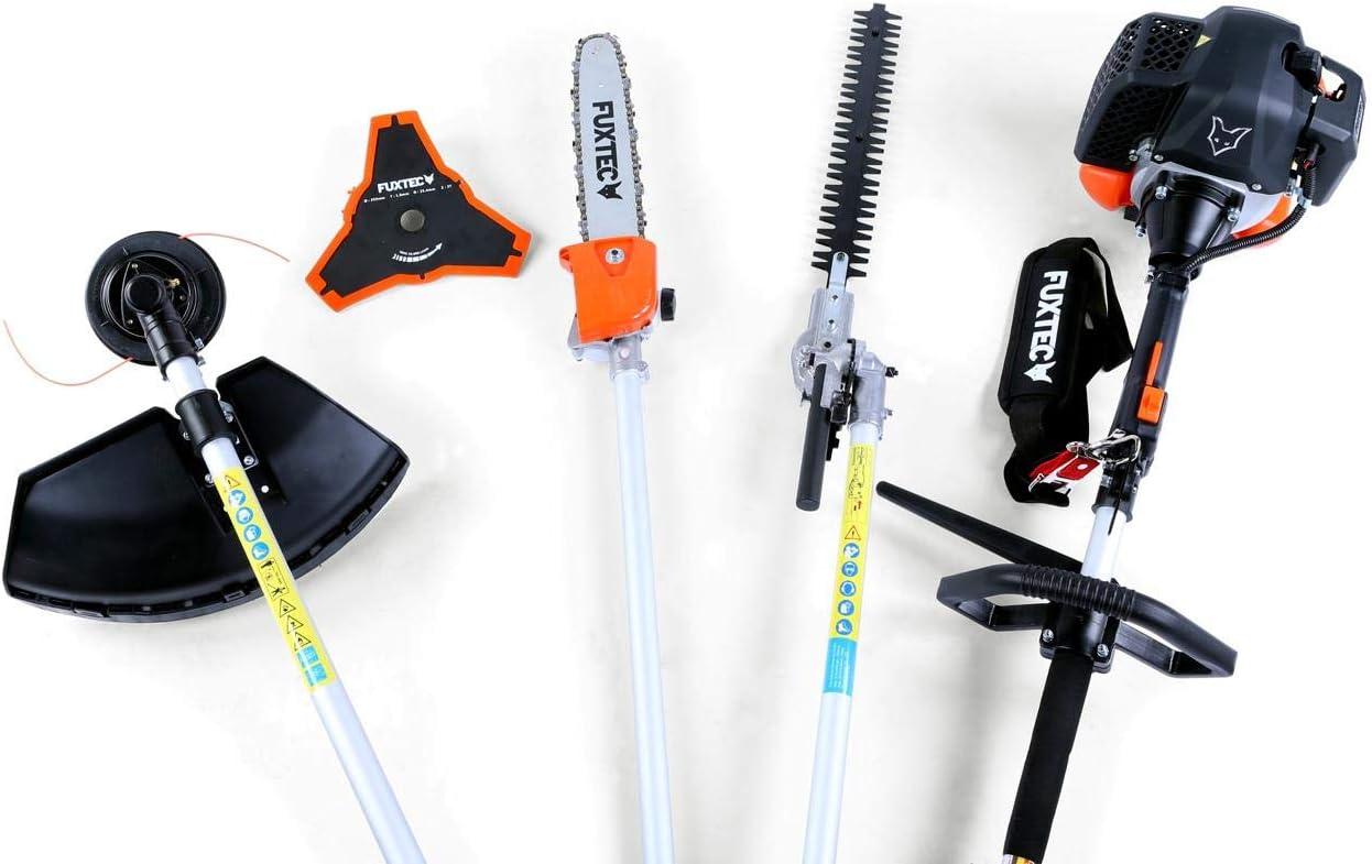 • Fuxtec FX-MT152E 5-in-1 Multi-Tool Petrol Brush Cutter - Easy Starter, 3 HP, 52 cc, 2-Stroke Engine, Pruner, Hedge Trimmer, Edger with Cord or Blade, 1 Meter Extension