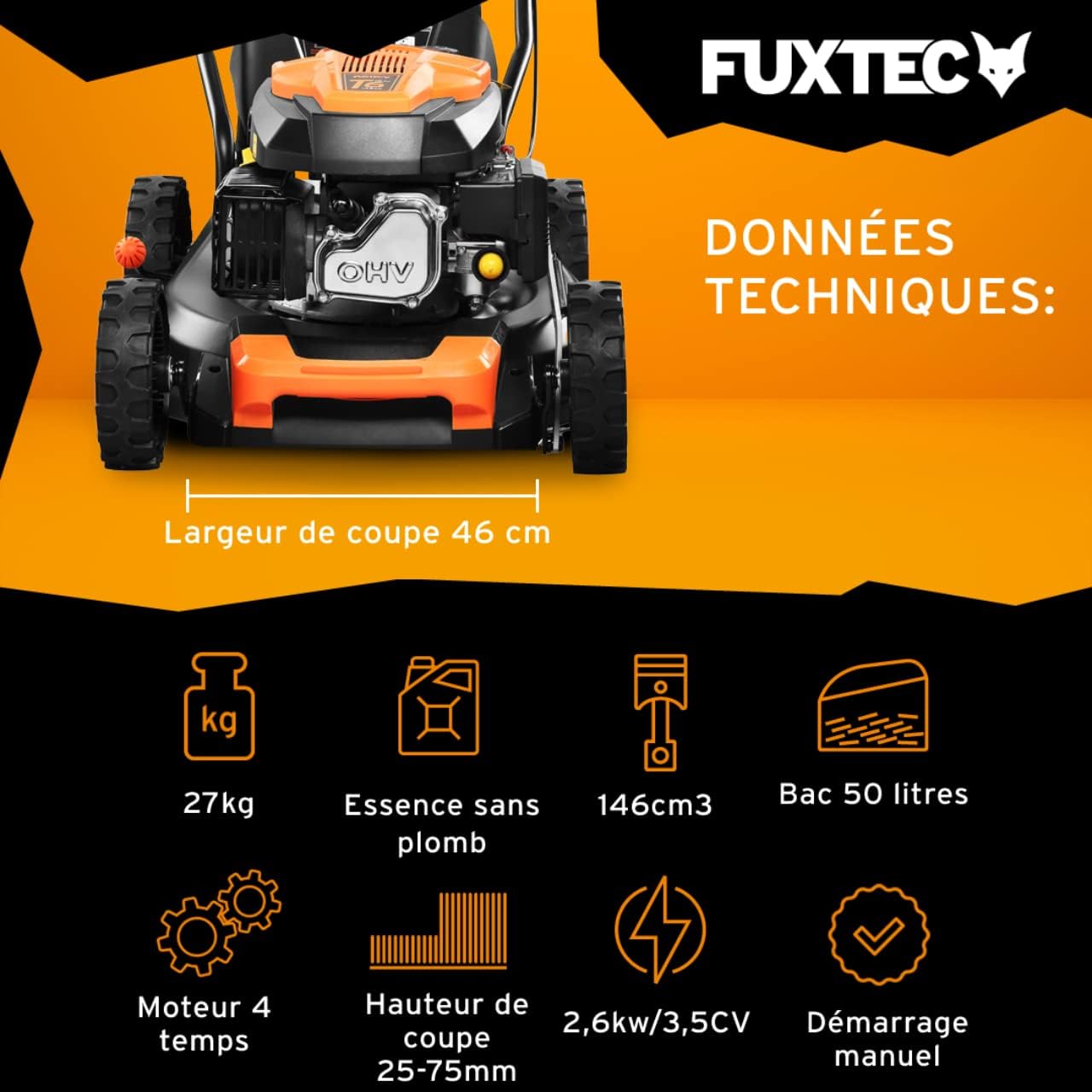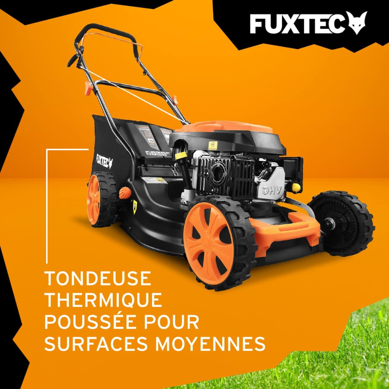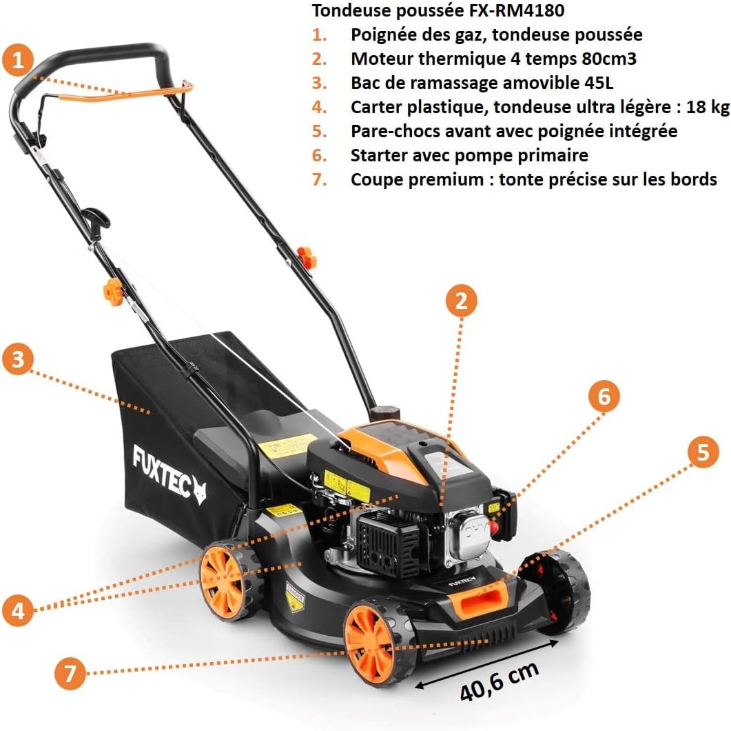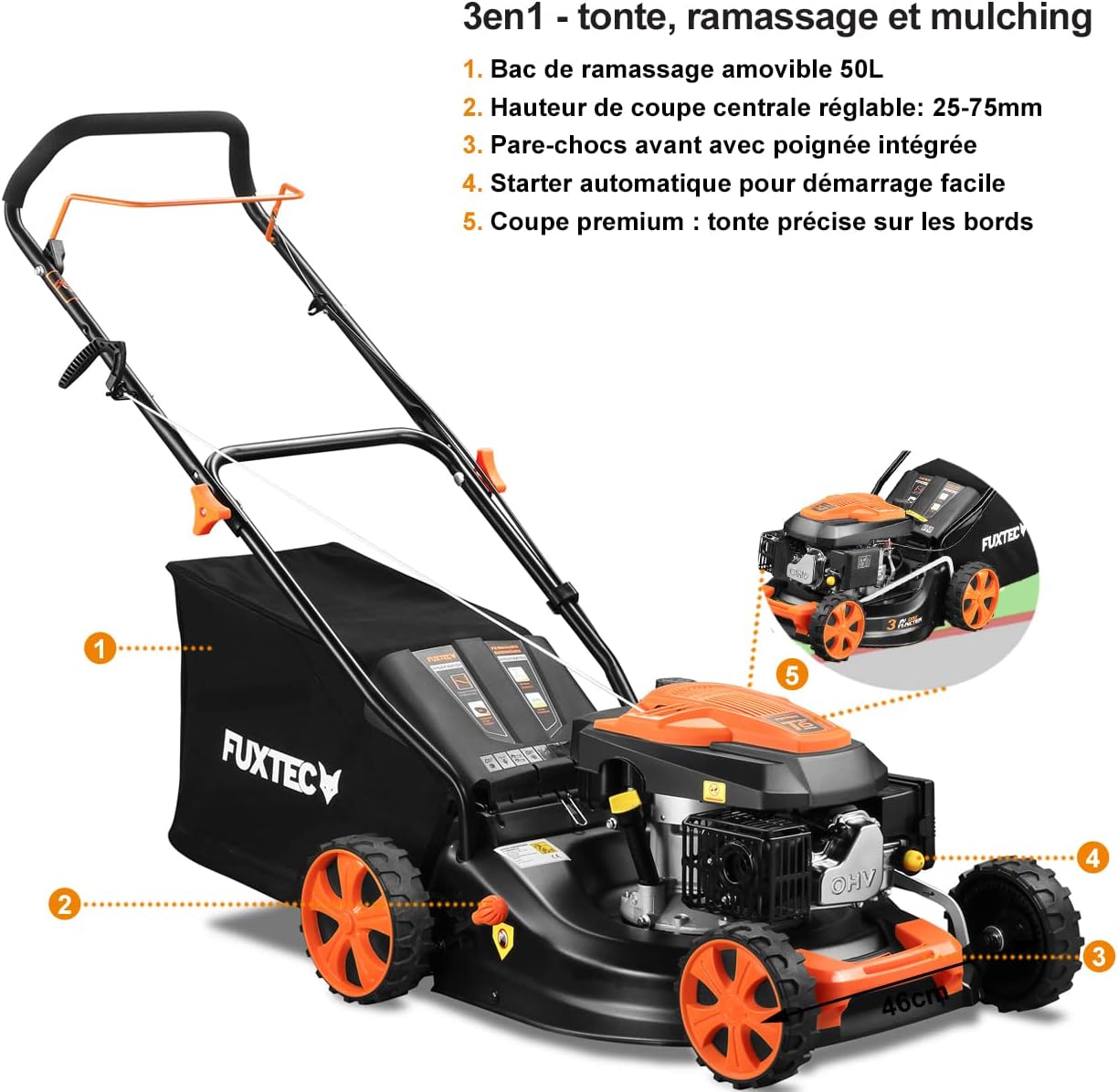 • FUXTEC FX-RM4646ECO Push Lawnmower - Excellent value for money - Easy Clean 3-in-1, 46cm cutting width - 50L grass collector
