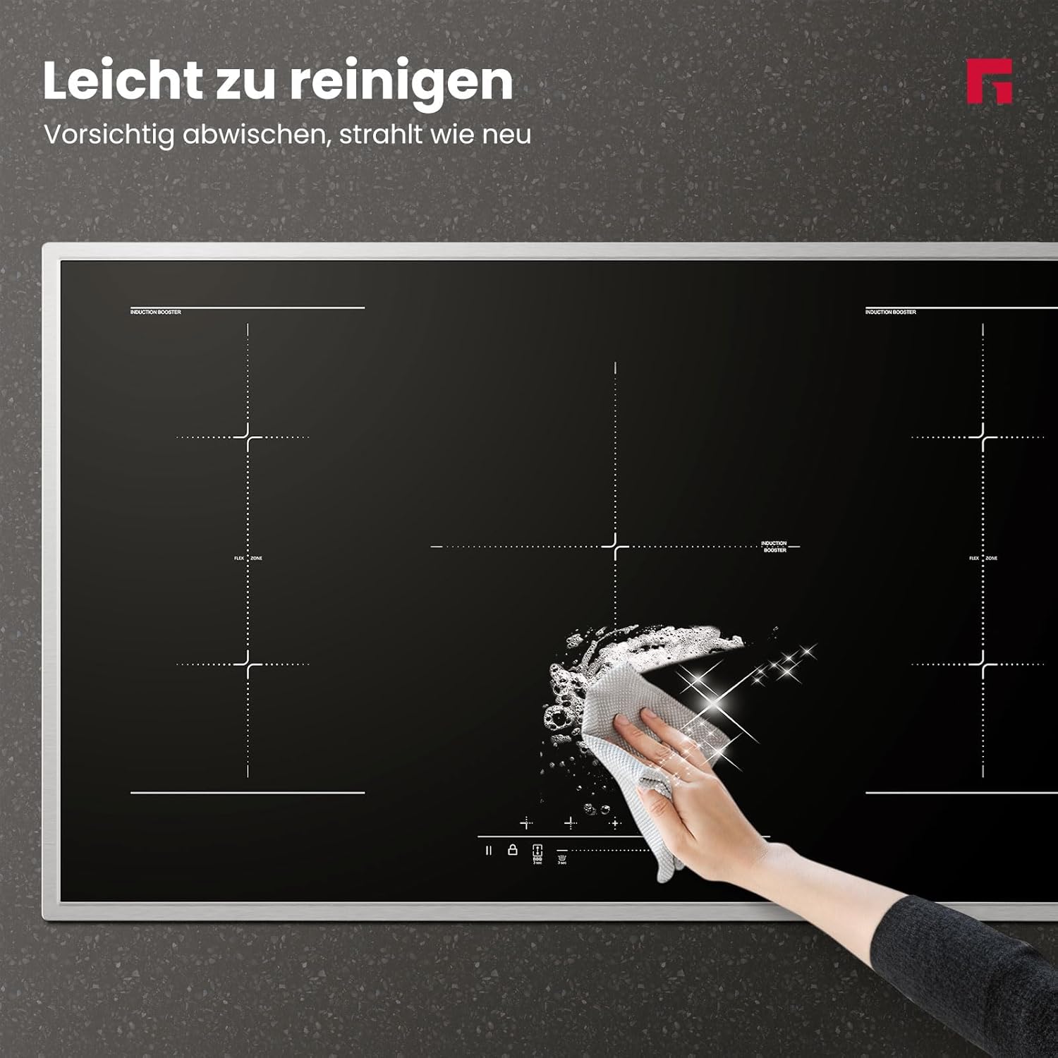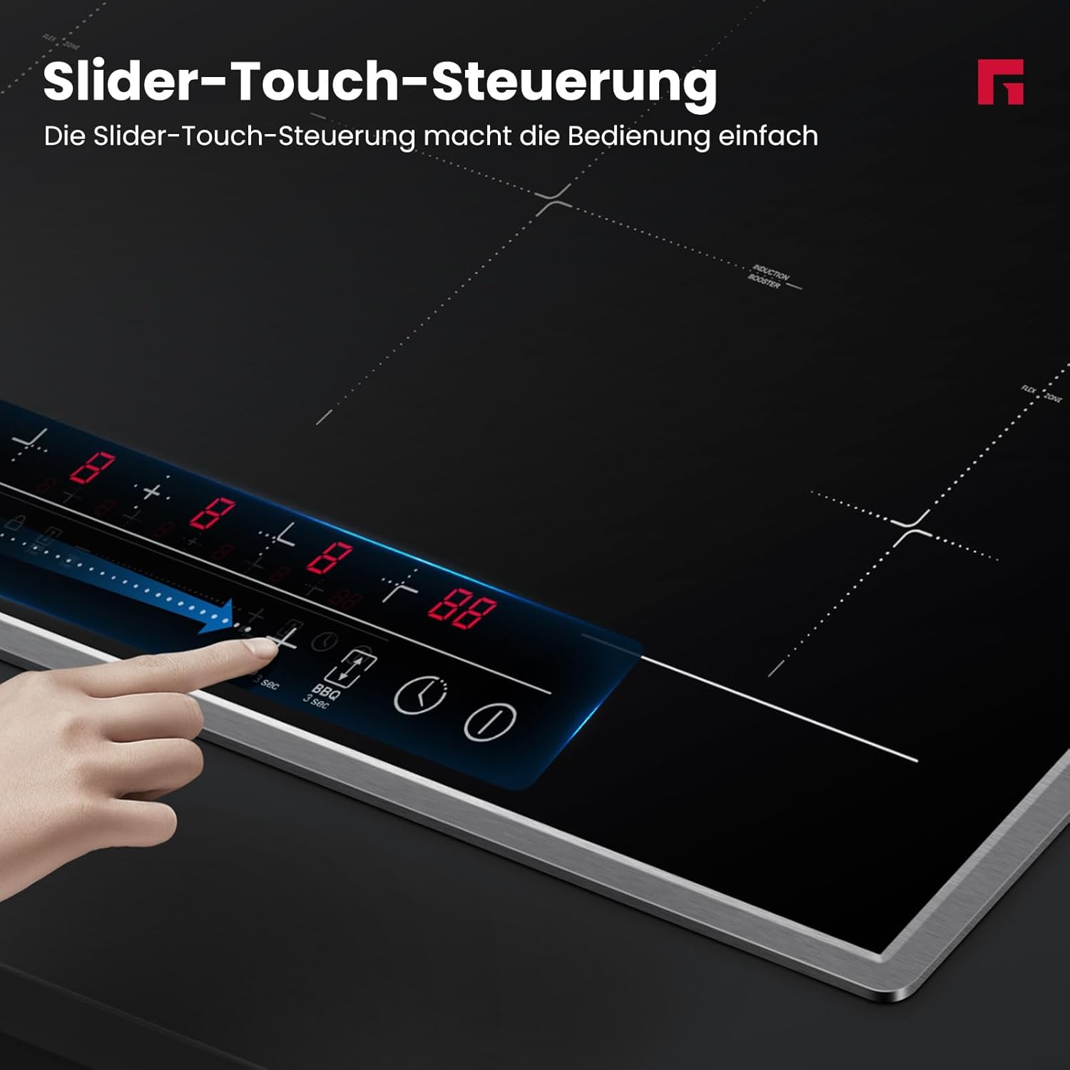 High-performance induction cooker Total power 10,000 watts, 9 power levels adjustable via slider. Three-phase wiring, suitable for 380-415 volts. A minimum 50mm ventilation clearance is required. Ample ventilation ensures a longer product lifespan. More flexible cooking options Two vertically connected cooking zones are combined into one large rectangular cooking area. You can freely place pots and pans, making efficient use of cooking space, ideal for cooking large stews, grilled steaks, or even paella. Powerful heating function Simply press the powerful heating button for rapid heating, no long waits required. Even with a large pot of boiling water, the powerful heating function provides instant, strong heat, saving you time. Stainless steel frame The stainless steel frame typically offers excellent structural stability, providing a solid support for the induction cooker. Stainless steel is a very strong and durable material, capable of withstanding daily use and cleaning without rusting or corroding. Smart timer Built-in timer, programmable up to 99 minutes, automatically shuts off when the timer reaches 0, helping you cook precisely and avoid overcooking. Multiple safety features including child lock, overheat protection, and residual heat warning, ensure safe cooking and make it an ideal choice for families. GASLAND focuses on creating kitchenware that fosters a simple, comfortable, warm, and joyful home atmosphere. We hope to bring families into this environment to cook and bake desserts together and enjoy the fun of cooking. Compatible with our induction cooktop frying pan. (Product No.: IHGD-S23C) GASLAND 90cm Induction Cooktop: Cooking is easier, life is better.