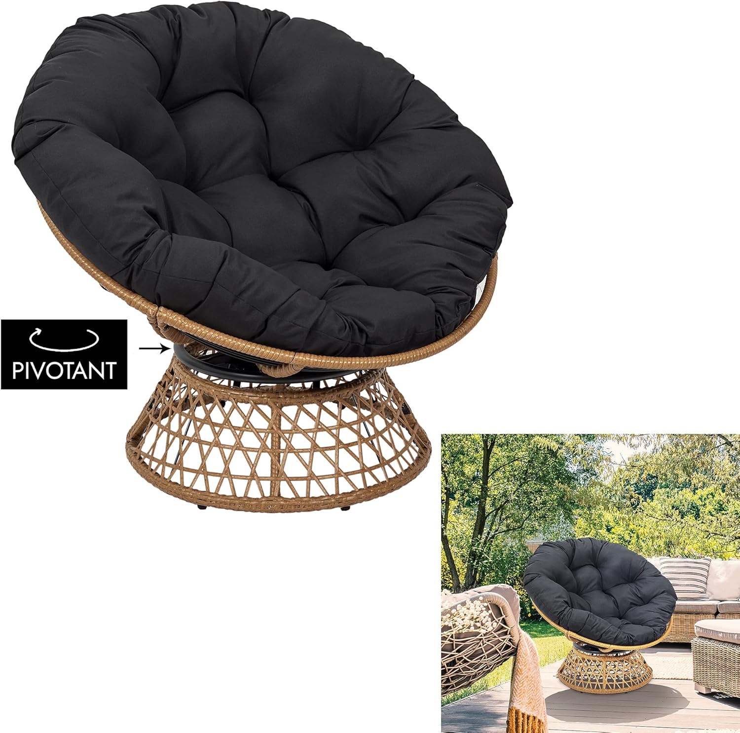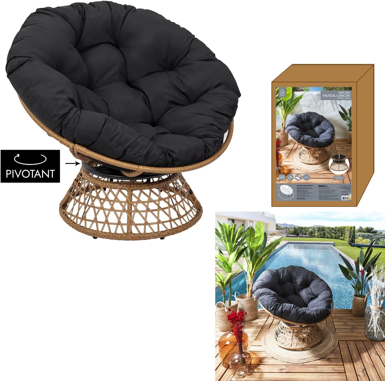 HOME DECO FACTORY, Outdoor Swivel Armchair, Round Relaxing Chair, 1-Seater, 360Spend Swivel, Thick Comfort Cushion Included, Garden Furniture for Balcony and Terrace Furnishing