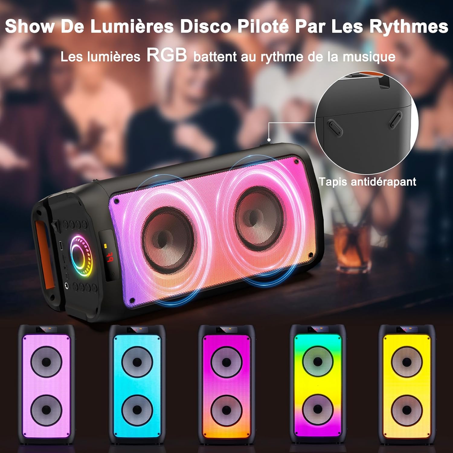 JYX Karaoke Machine with 2 Microphones, Portable Bluetooth Karaoke for Adults with RGB Lighting, Karaoke Equipment for Parties with Friends and Family Events, Supports TF/USB, AUX, FM, REC, TWS