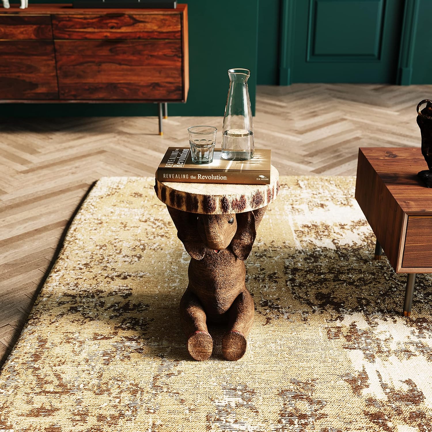 Animal-Shaped Side Table: Inspired by cartoons, this elephant-shaped side table is both humorous and practical. Eye-Catching: This elephant-shaped table is sure to turn heads. More Realistic Than a Real Elephant: This uniquely designed table will bring a smile to every viewer's face. Practical Platform: Our elephant side table provides a practical platform. Lightweight and Sturdy: Weighing only 6.5 kg, it is still very sturdy and durable. Product Description: This uniquely shaped elephant side table is incredibly eye-catching. Our elephant side table is more realistic than a real elephant and is sure to bring a smile to your face. Safety Warning: The tabletop can only support a maximum weight of 20 kg. Do not overload to avoid accidents.