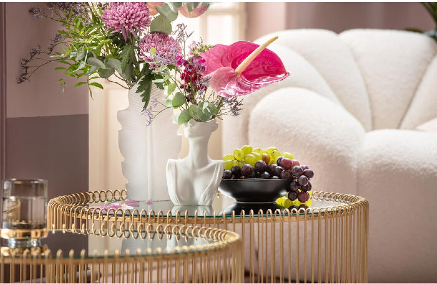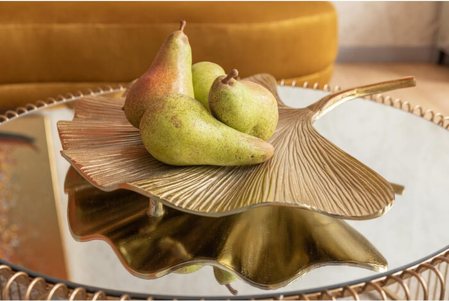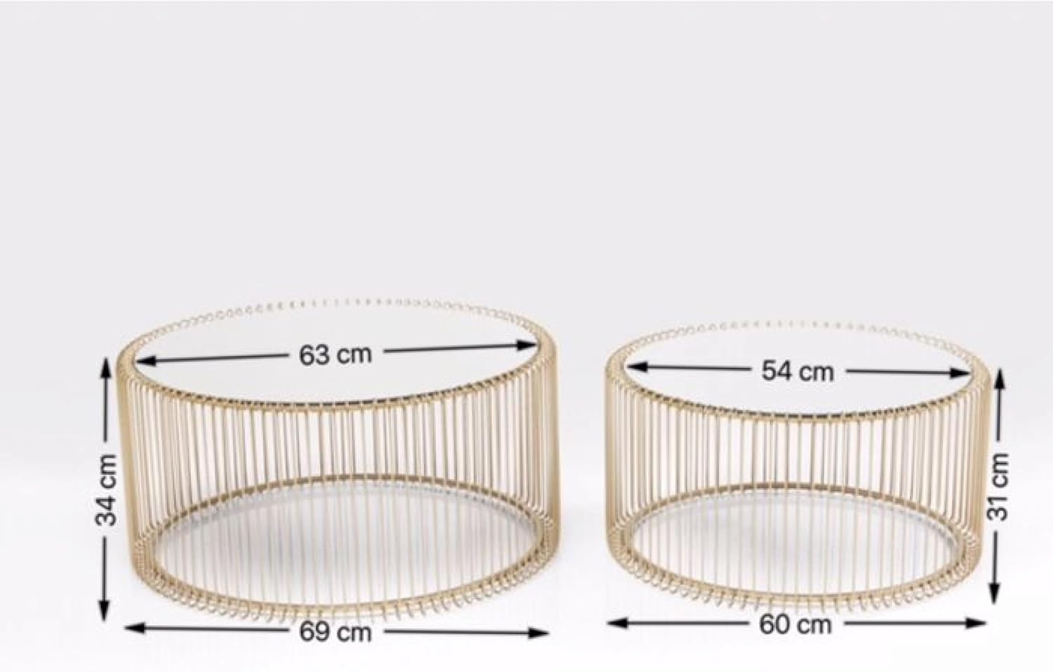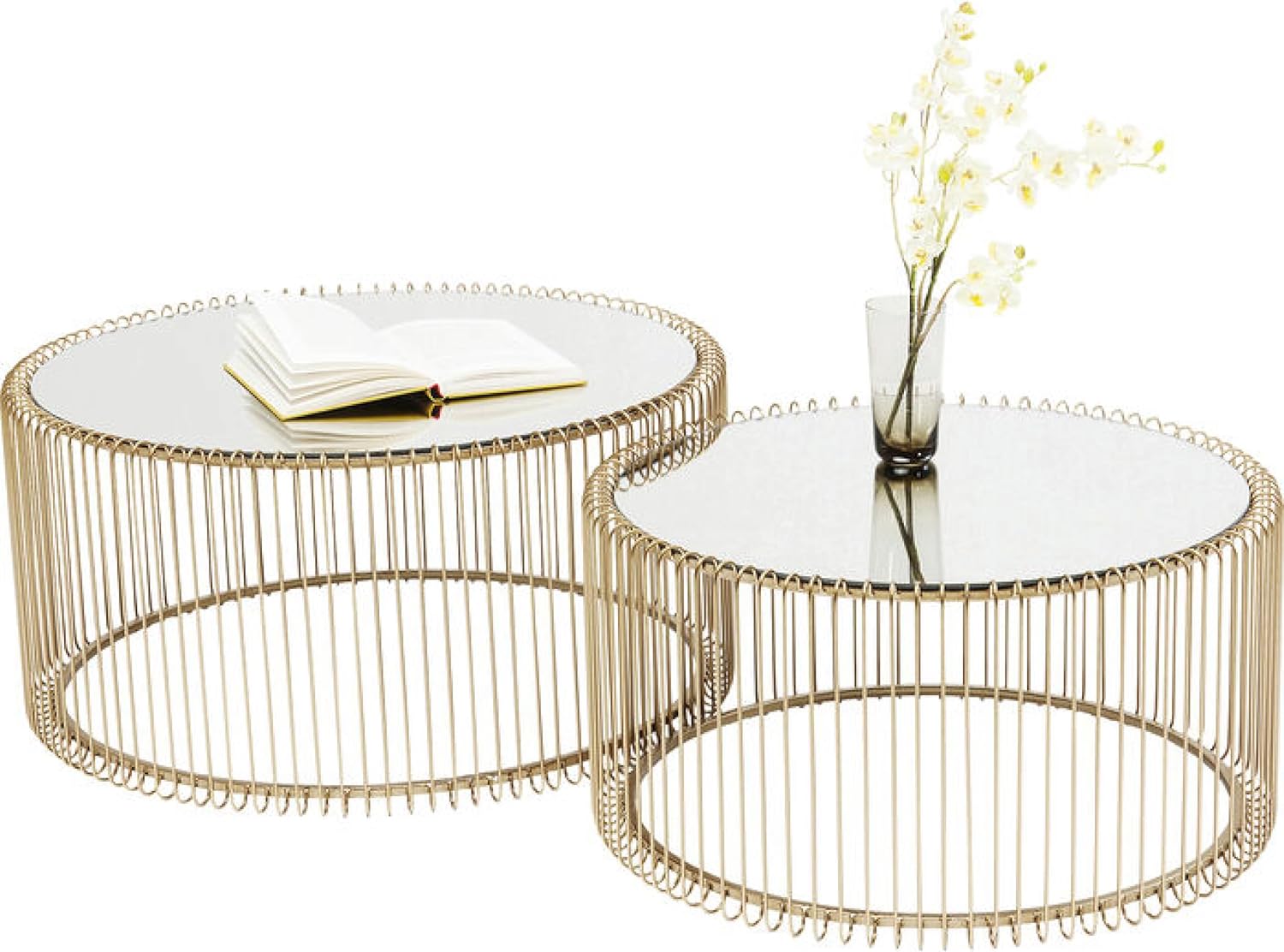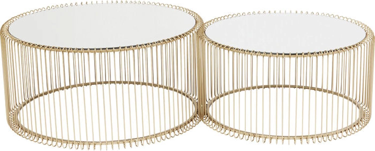 This coffee table adds glamour to your living room: its bright gold finish and mirrored glass top bring a dazzling and captivating touch. Perfect for pairing with luxury sofas: complements luxurious or patterned sofa covers, creating a sophisticated and elegant atmosphere. Versatile style: its elegant design blends effortlessly into almost any interior style. Multifunctional and modern: also a great alternative to a traditional bedside table. Decorative highlight: an eye-catching piece that adds a touch of luxury to any room. Product description: A coffee table is like a handbag the finishing touch to an overall look. This coffee table is truly the finishing touch: the Wire Messing model is presented as a two-seater set. This compact coffee table not only boasts a round shape, but its highly polished openwork base and mirrored top are equally striking. Safety warning: Caution: The glass surface is fragile. Do not overload. Secure the coffee table firmly to prevent tipping.