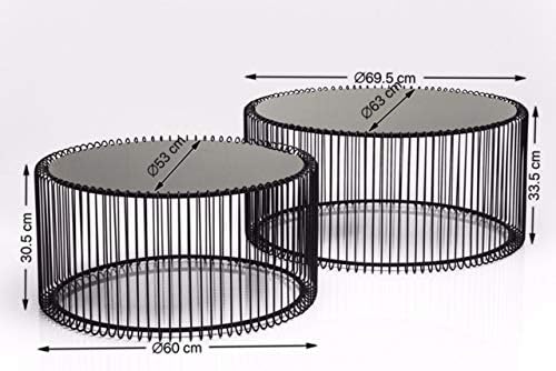 • Kare Design Wire Coffee Tables, Set of 2, Black, Round, Steel, Glass Tabletop, Diameter 70/60cm, Modern Style, Elegant, Living Room Coffee Table, Interior Decor, Bedroom Decoration