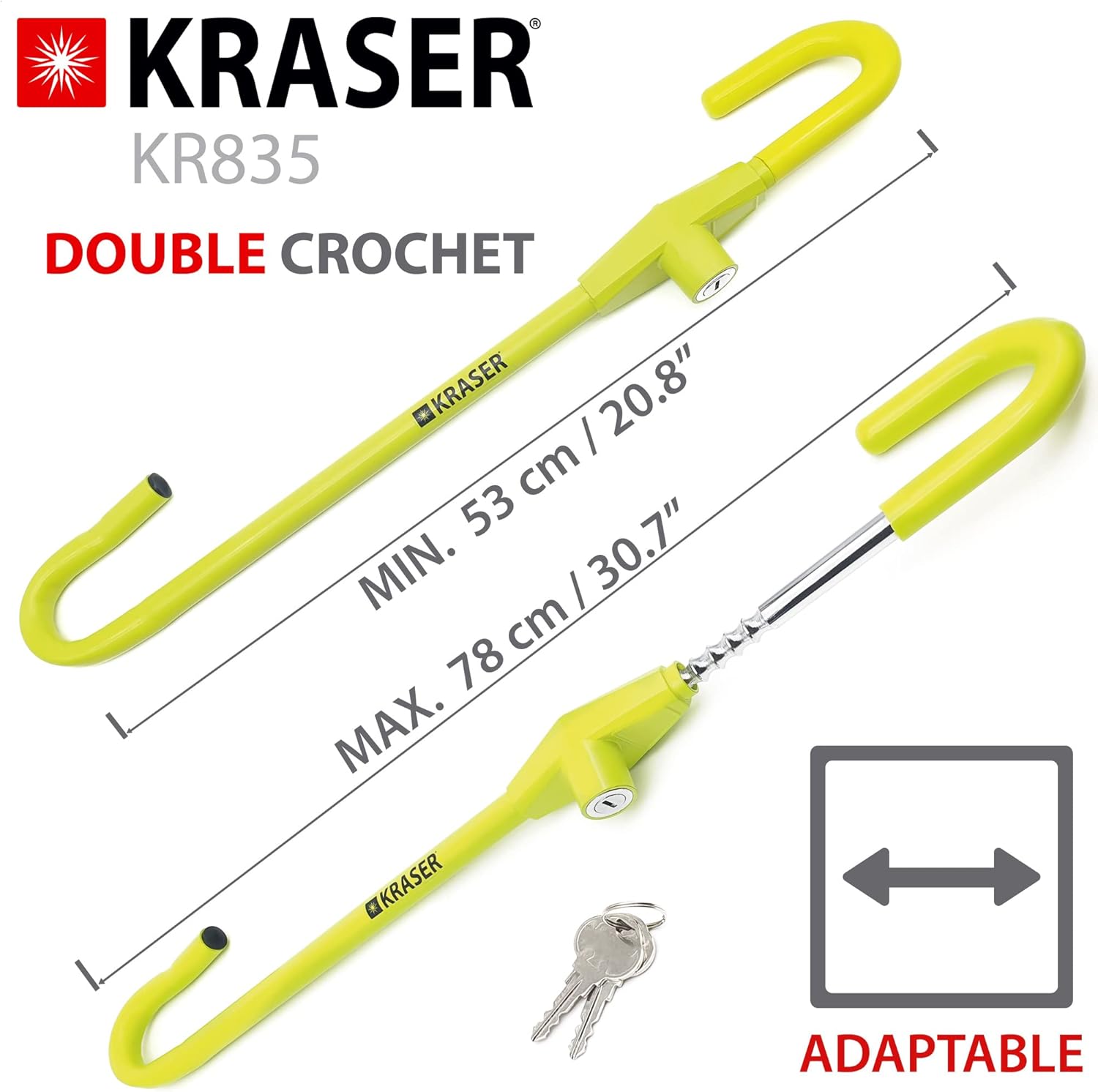 KRASER KR835 Car Steering Wheel and Pedal Lock, High Visibility Yellow Cane, Steel Security Lock, Adjustable and Extendable Hook, Universal Steering Wheel Lock Bar for Cars, Camper Vans