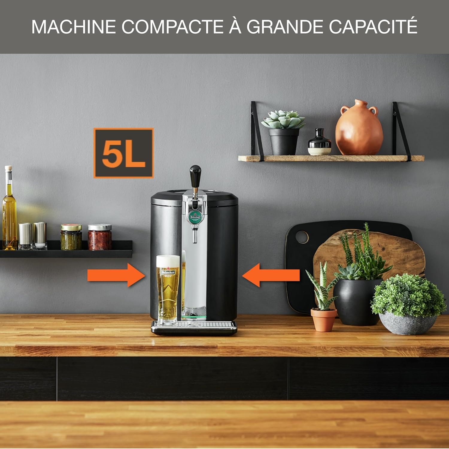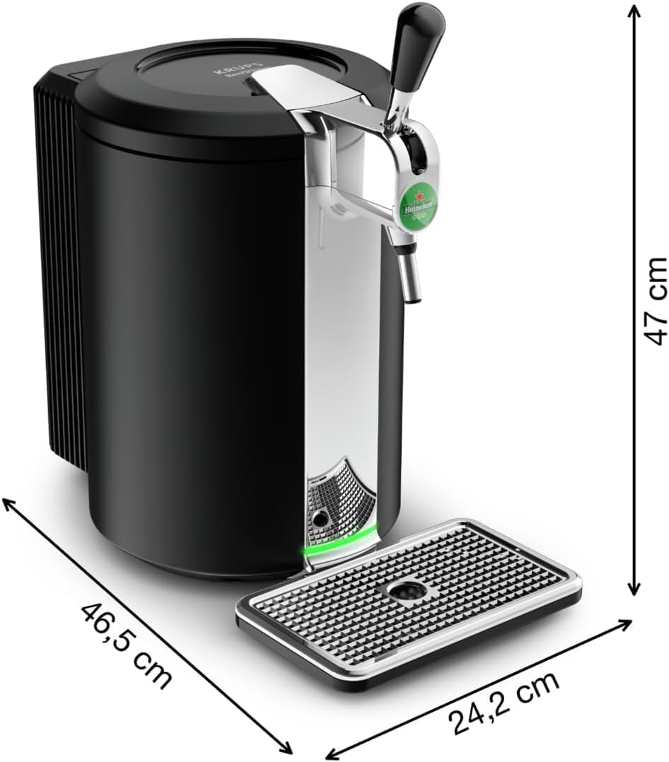 • Krups Beertender Draft Beer Machine for 5L Kegs, Heineken Group Brands, Indicator Light, Perfect Temperature and Foam, Fresh Beer, Easy Installation, Compact Black VB450E10