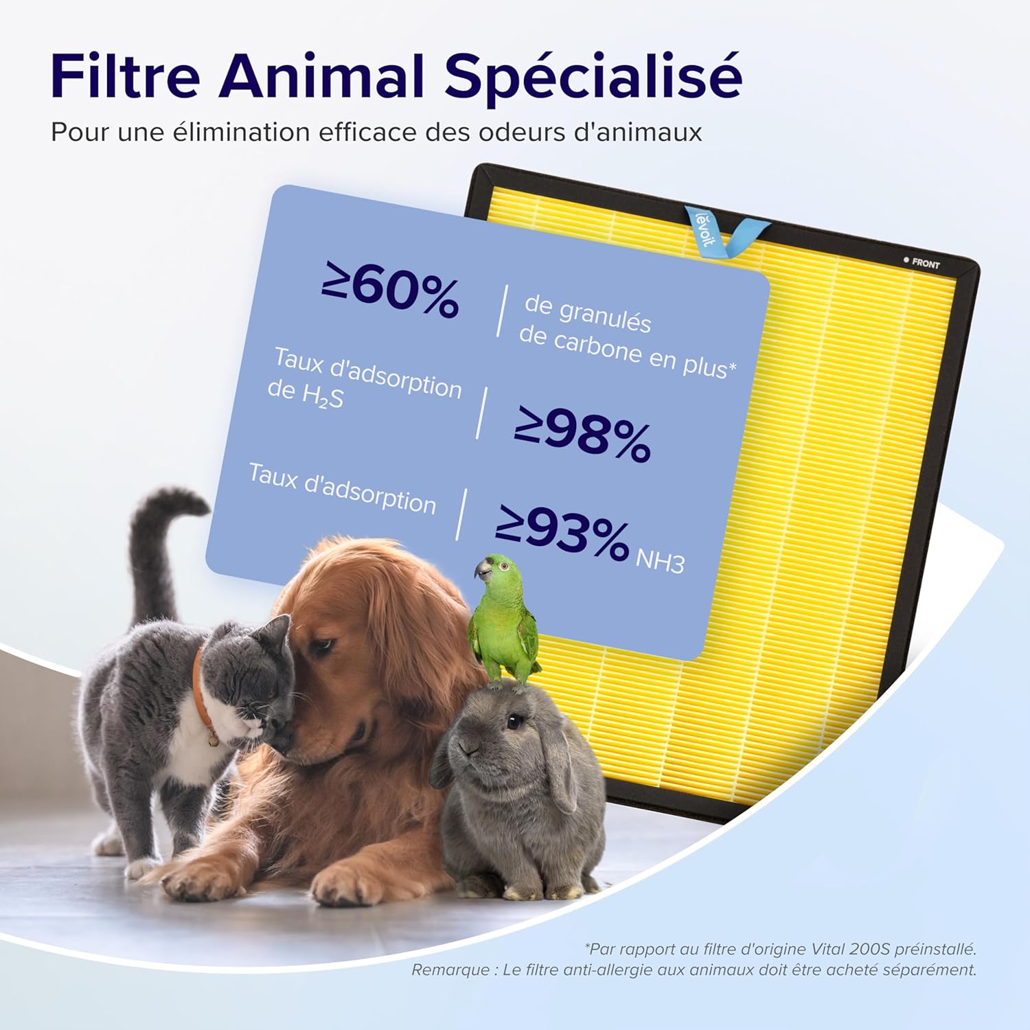 More efficient cleaning performance, fresher air: The Vital 200S smart air purifier can be controlled via an app, purifying a room of up to 87 square meters twice per hour, with a CADR of up to 416 cubic meters per hour; its three-stage HEPA filter removes 99.97% of airborne allergens, pollen, fine dust, and even odors. Larger air intake: Quickly purifies the air; equipped with a regular air intake and an additional U-shaped air intake, it easily captures pet hair and dander in the air, preventing clogging. Light sensor and 24-decibel sleep mode: The Vital 200S's 24-decibel sleep mode meets your sleep needs at different times of the night; the light sensor detects changes in ambient light and automatically turns off the screen to create a dark environment. Ideal for pet owners: Activating Pet Mode (controllable only via the VeSync app) filters pet hair and odors from the air while saving energy; this mode can switch between high and medium ventilation levels. An additional U-shaped air intake helps capture airborne hair without causing blockages. Three-stage filtration: A washable pre-filter helps extend the life of the three-stage filtration system; the HEPA filter captures pet hair, pollen, etc., while the high-efficiency activated carbon filter helps neutralize pet odors, vapors, and carbon dioxide. Stay in control: Control via Alexa and Google Assistant voice commands, or use the VeSync app to view indoor air quality index and filter life. Our app will not reveal any of your privacy information. Create schedules and timers: Do you want your air purifier to purify the air at specific times? You can create detailed schedules with your preferred fan speed and mode to suit your needs; timers can set the device's runtime to 1/2/4/8 hours (1-24 hours via the VeSync app). Levoit official filters: Using replacement filters from third-party manufacturers may damage your air purifier; please remove the filter packaging film before using the filter. We recommend that users place the filter in a well-ventilated area for about 24 hours before trying again. After that, we recommend that users place the air purifier in a well-ventilated area, such as a hallway, and let it run for a period of time. The LEVOIT Pet Mode Air Purifier is designed for allergy sufferers, boasting a CADR of up to 416 cubic meters per hour. It is suitable for areas up to 87 square meters, equipped with dual sensors and a washable pre-filter. The H13 grade HEPA filter effectively removes 99.97% of pet hair, as well as odors from mold, pollen, and dust.
