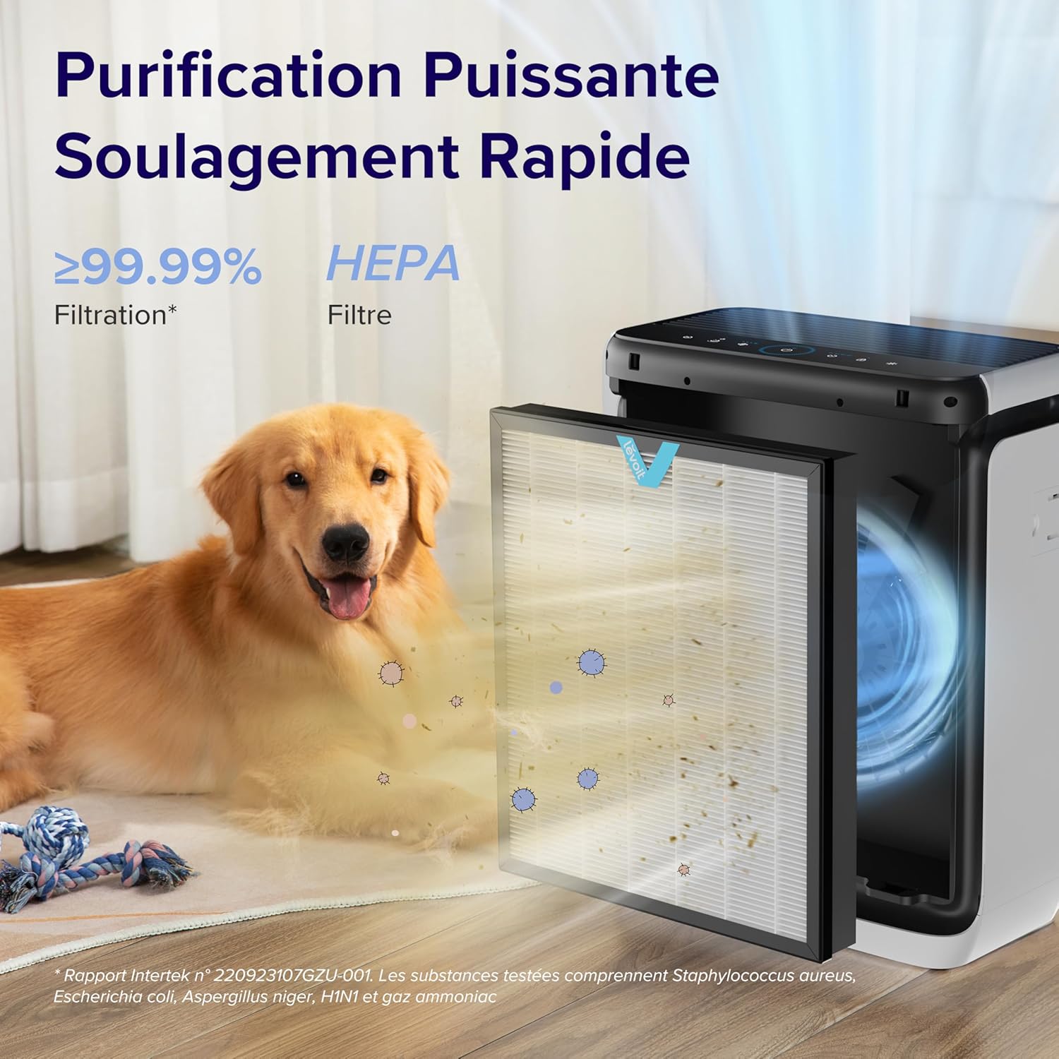 LEVOIT Air Purifier for Allergy Sufferers with Pet Mode, CADR 416 m3/h up to 87 m2 for Smoking Rooms and Apartments, Dual Sensor and Washable Pre-Filter, HEPA Air Filter