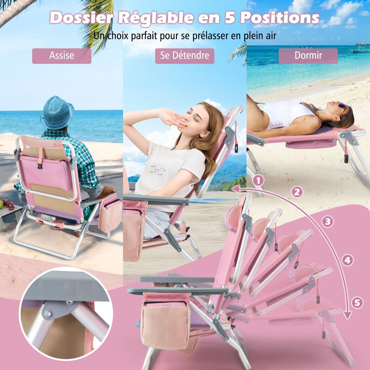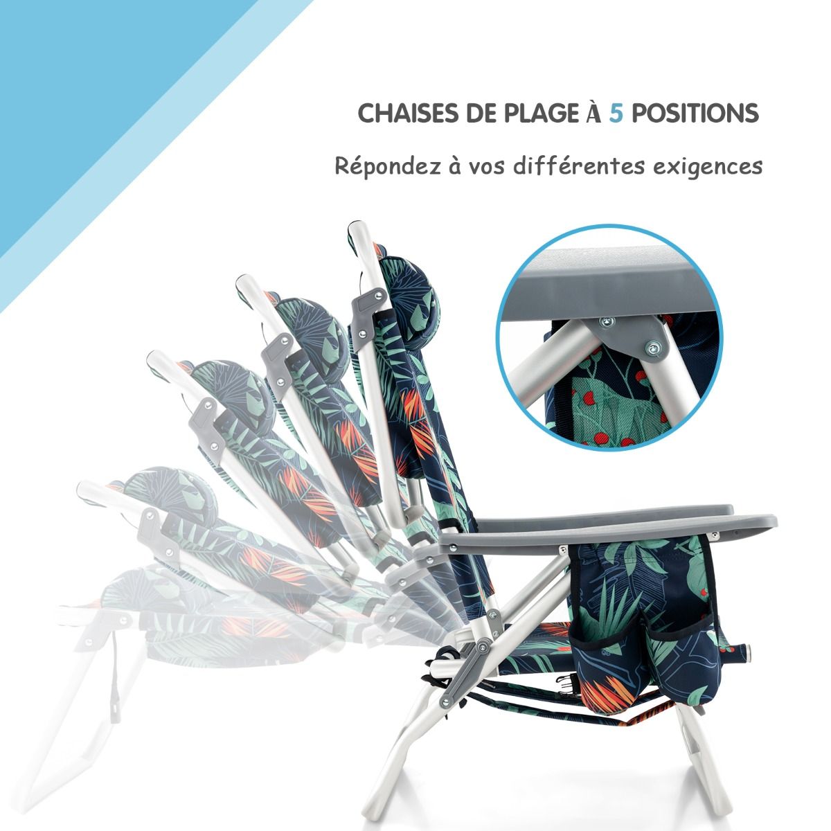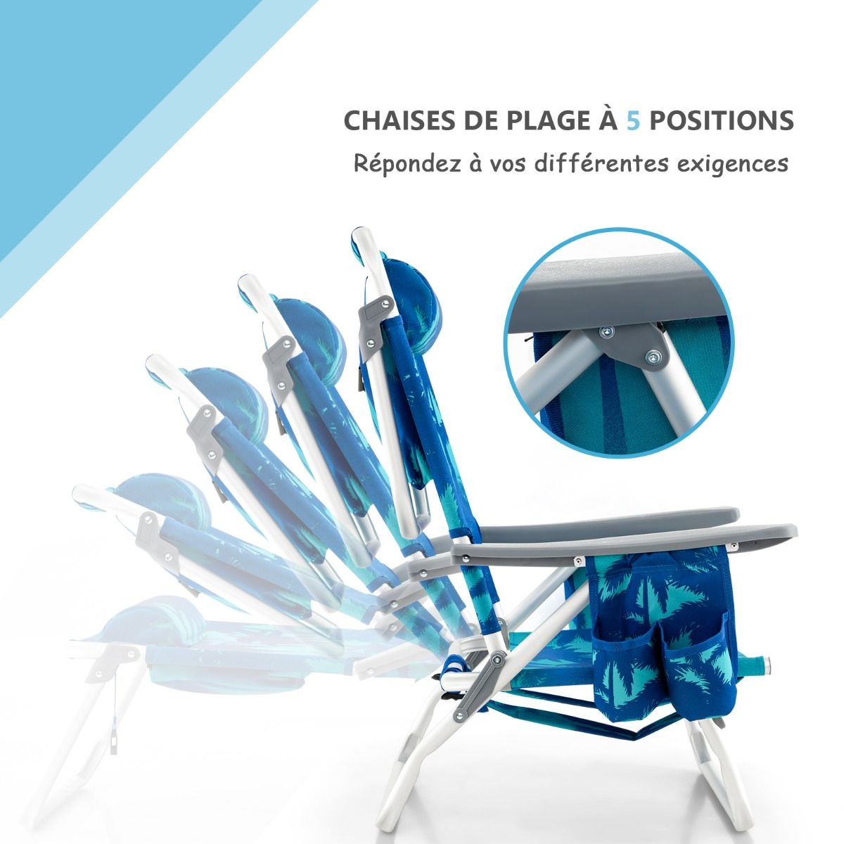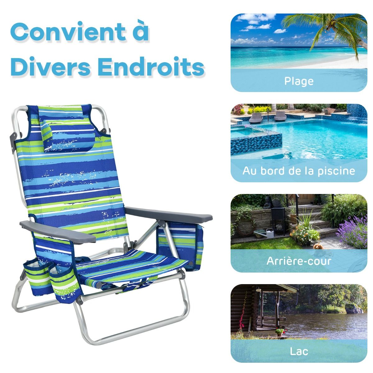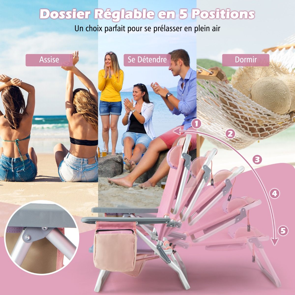 • Set of 2 Folding Camping Beach Chairs with Roll-Up Aluminum Table, Headrest, 5-Position Adjustable Backrest, 6 Colors to Choose From -