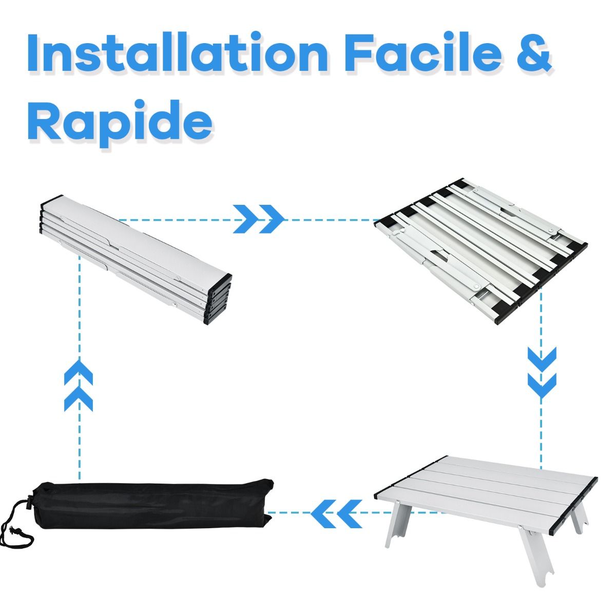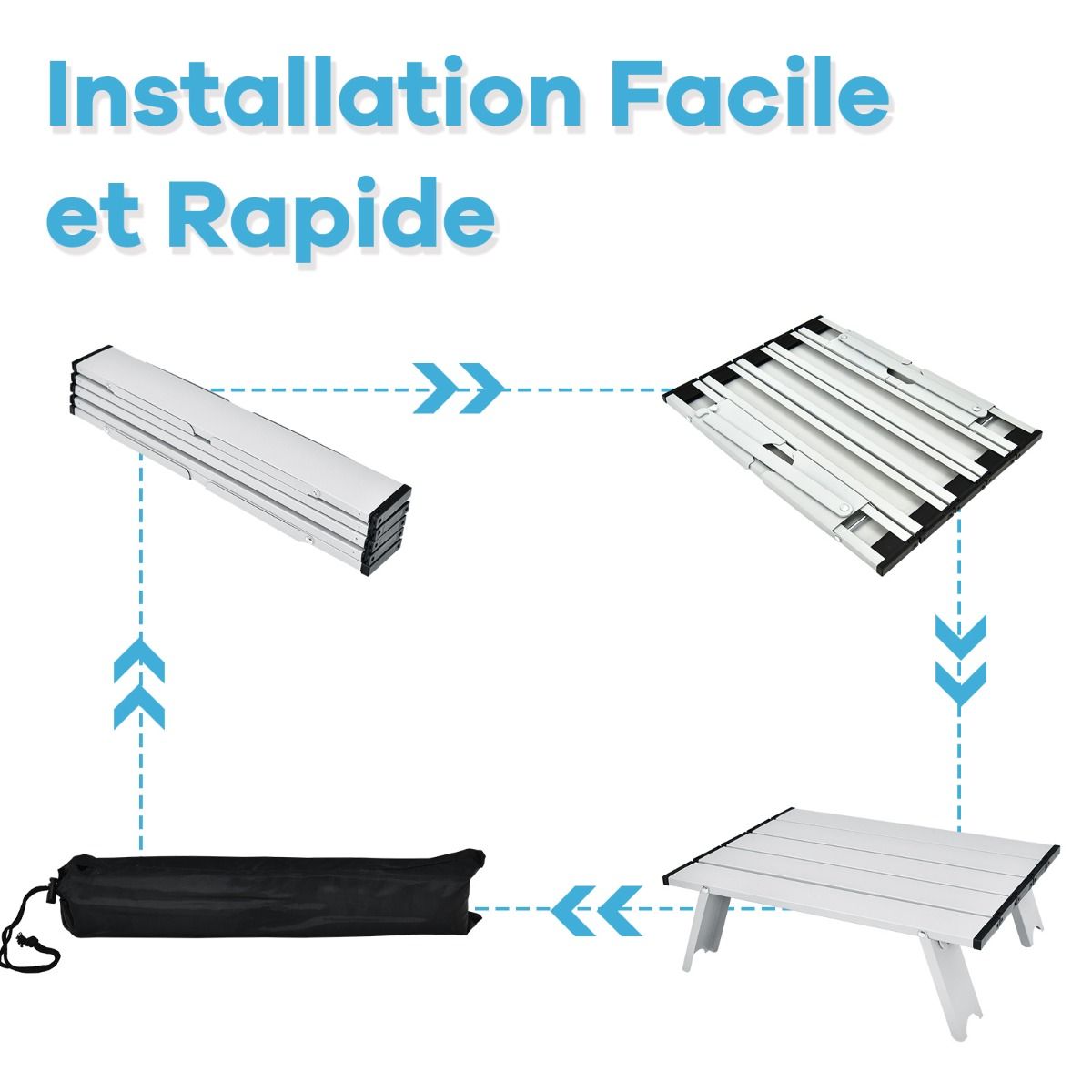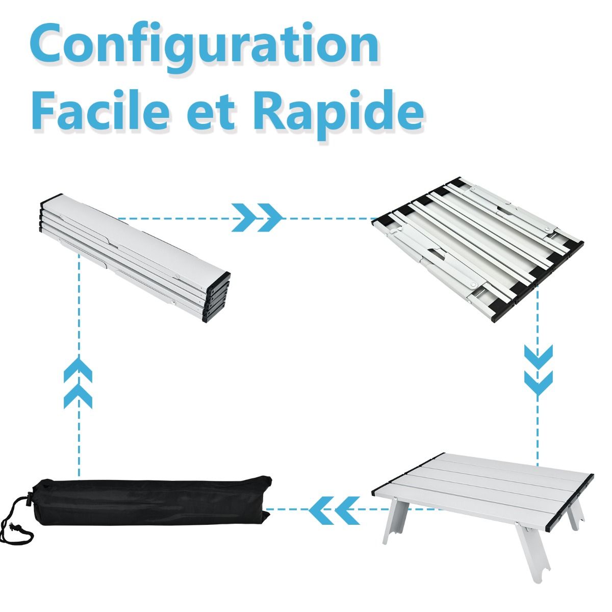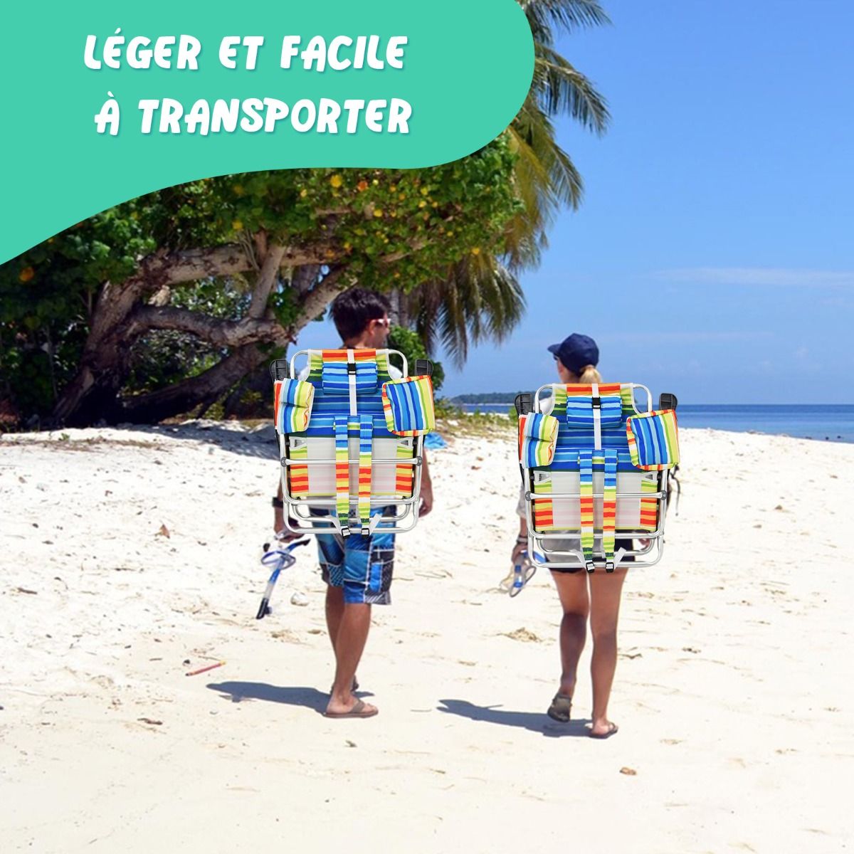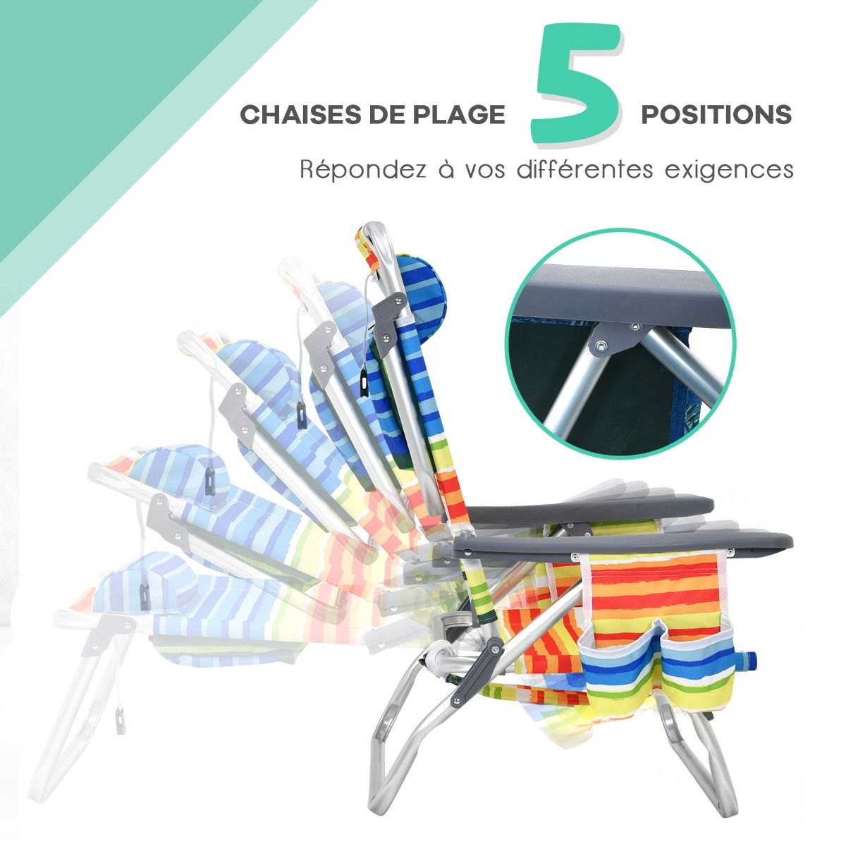 • Set of 2 Folding Camping Beach Chairs with Roll-Up Aluminum Table, Headrest, 5-Position Adjustable Backrest, 6 Colors to Choose From -