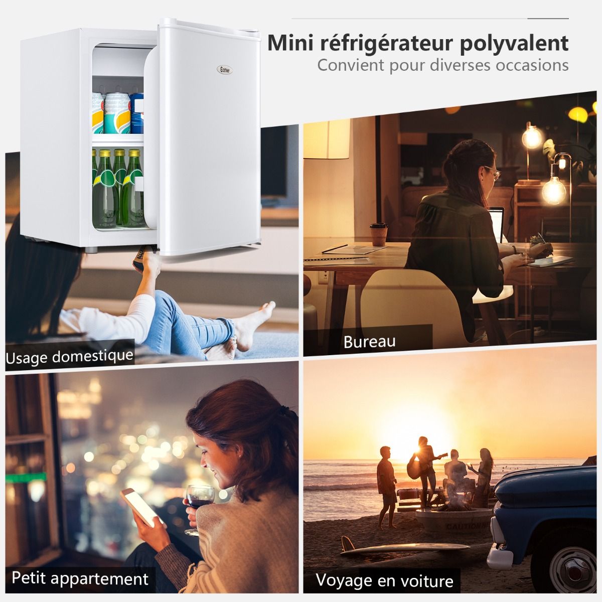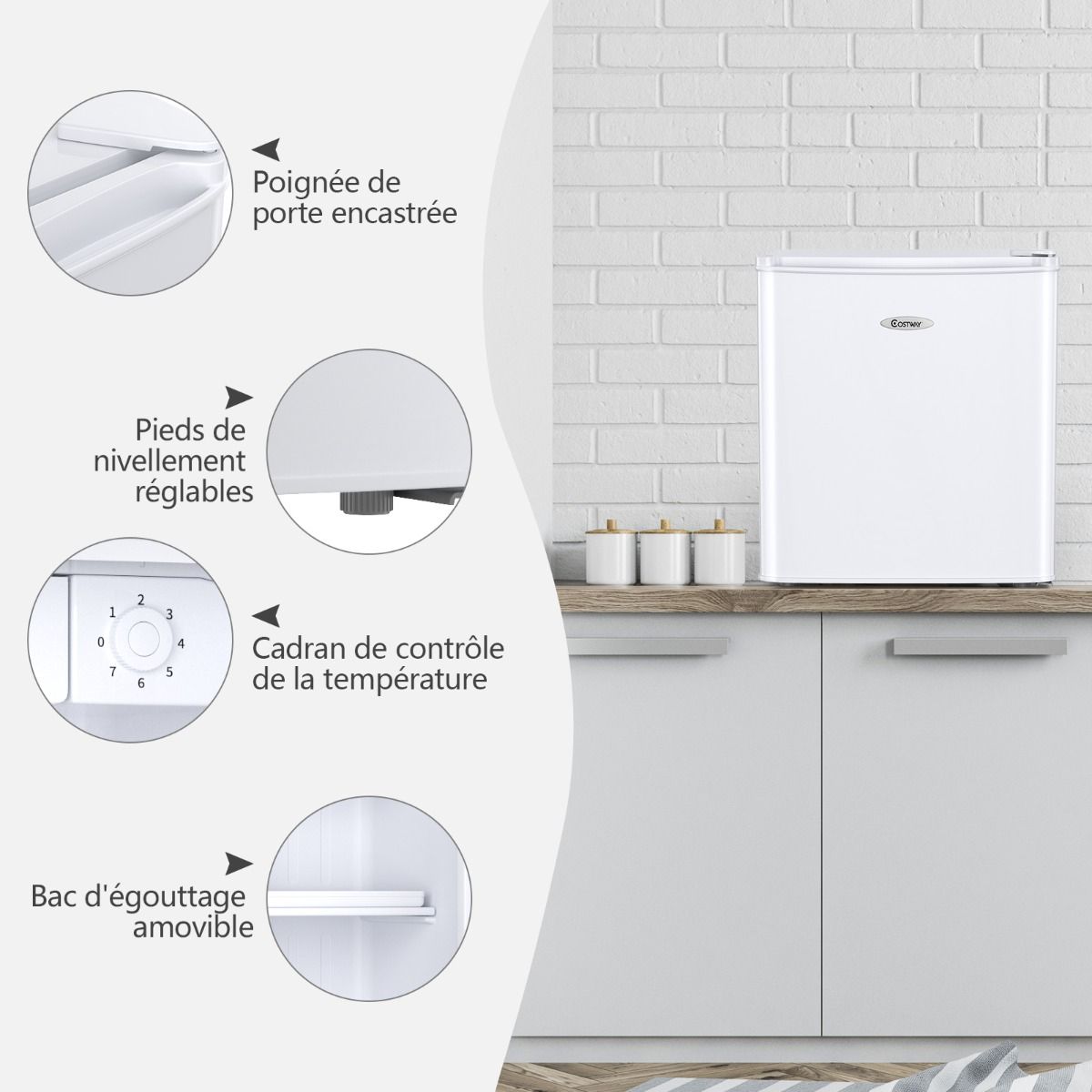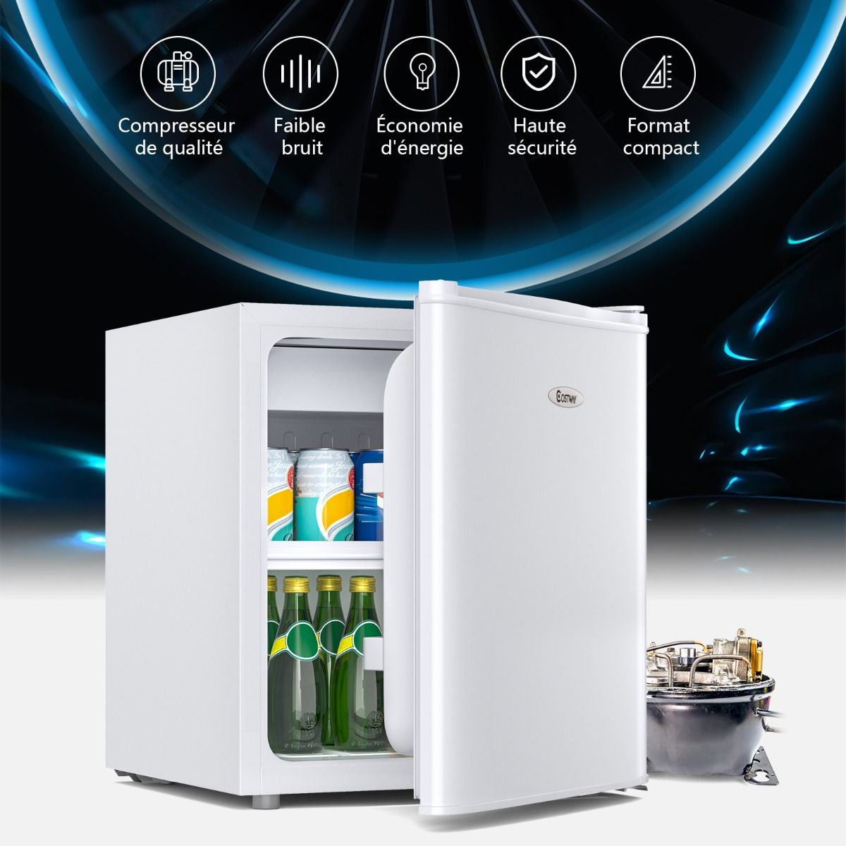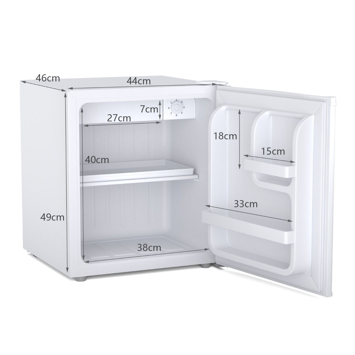 This mini-fridge boasts a massive 46-liter capacity! It's ideal for small spaces like offices, bedrooms, kitchens, studios, and hotels. With its A+ energy efficiency rating, it's both environmentally friendly and economical, offering exceptional value! Product Features: Aesthetically pleasingThis 46-liter mini-fridge is ideal for hotels, motels, small businesses, and various commercial venues, and it's also a perfect complement to stylish interior design in private residences. Energy Efficiency RatingNot only is this mini-fridge beautifully designed, but its excellent energy efficiency rating makes it both environmentally friendly and economical, offering exceptional value! Effective Storage SpaceThis refrigerator can hold a case of beer, a few bottles of wine, or juice, keeping you well-prepared for an evening gathering with friends. The 46-liter capacity also ensures food stays fresh. StableThe refrigerator comes with four adjustable feet for placement in any location. Of course, the feet can also be individually adjusted for perfect stability. They are also easy to remove. Adjustable Feet and DoorHeight-adjustable feet for optimal alignment; the refrigerator door can open to the left or right. Adjustable Functions: Total capacity 46 liters. Height-adjustable feet easily handle uneven surfaces. Knob-style temperature control ranges from 0 to 5Spend. Wider ergonomic handle. Height-adjustable feet for optimal alignment. Easy-to-replace left and right limiters. Specifications: Color: White. Dimensions: 46 x 44 x 49 cm (L x W x H). Energy Efficiency Rating: F. Refrigerant: R600a / 18g. Power Supply: 230V / 50Hz. Temperature Range: 0~5Spend. Weight: 16.56 kg. Package Contents: 1 refrigerator, 1 user manual.