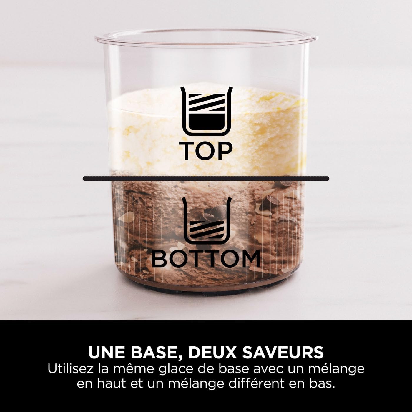 Using both "High" and "Low" processing settings, you can create two different ice cream flavor combinations, such as cherry and vanilla, in the same deluxe ice cream tub. Create your own personalized desserts and drinks: make ice cream and drinks as you like. Recreate classic desserts from cafes or ice cream parlors, experiment with different flavor combinations, or make keto, low-sugar, or vegan desserts. Product includes: base with dual drive motors (European plug), deluxe ice cream churn, three 709ml deluxe ice cream tubs (with storage lids), outer bowl lid, and recipe inspiration guide. Color: Silver. Dimensions: 30.5cm (W) x 42.39cm (H) x 21.38cm (D). Weight: 6.54kg.