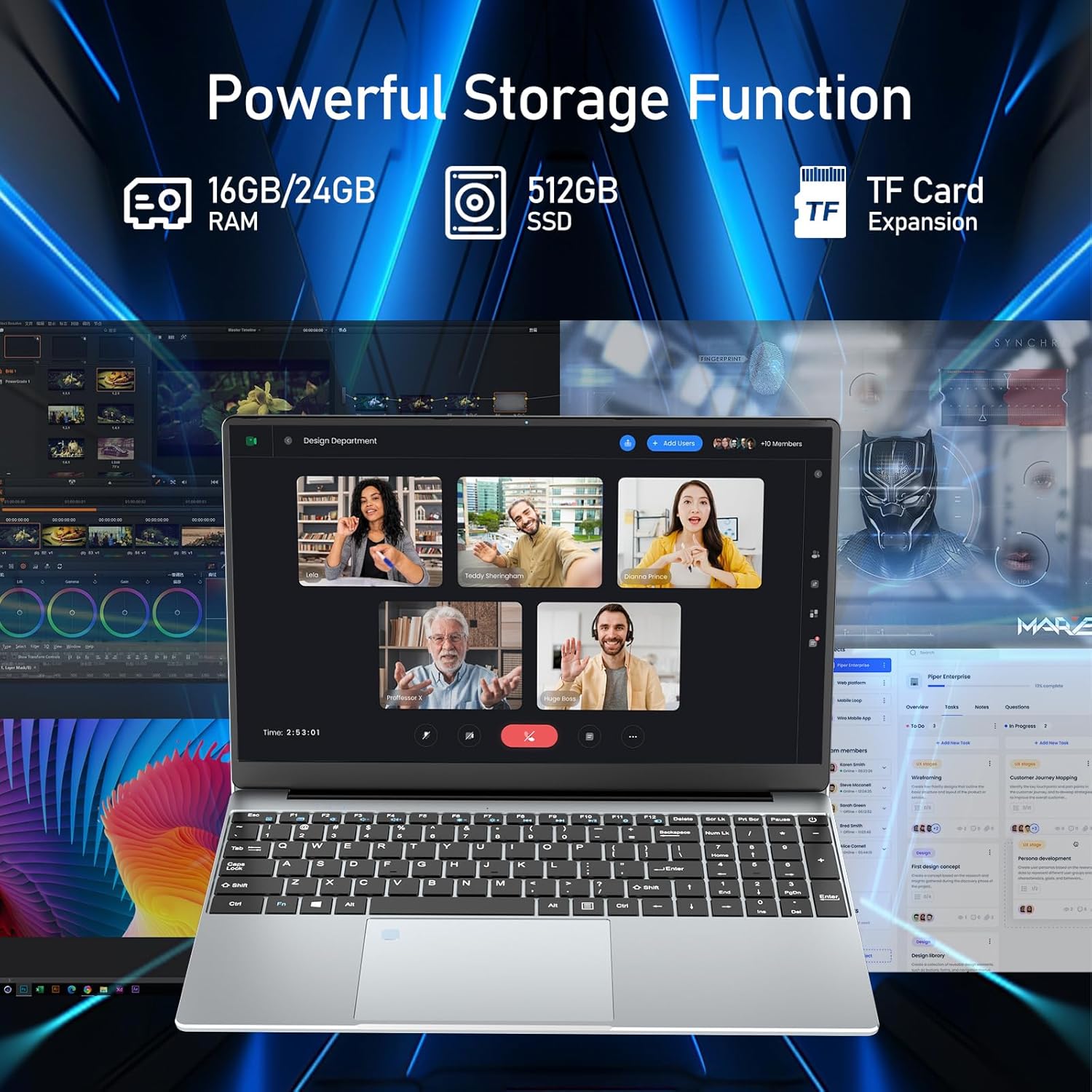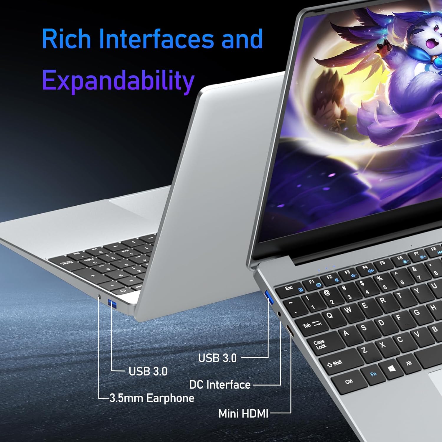 Laptop with Celeron N5095 Processor This 15.6-inch laptop is equipped with the Celeron N5095 processor (base frequency: 2.0 MHz, peak frequency: 2.9 MHz), a fast and powerful quad-core processor that handles all tasks and applications smoothly and quickly. It is compatible with a wide range of office and productivity software, as well as the most popular applications and entertainment programs. Pre-installed with Windows 11 Pro, this Windows 11 laptop will provide you with a smooth and efficient computing experience, allowing you to run all your tasks and applications quickly and effortlessly. Enhanced Storage This 15.6-inch Windows 11 laptop is equipped with 16 GB of RAM to load multiple applications and transfer files faster. Thanks to a 512 GB SSD, you can store your entire digital world with complete peace of mind. Additionally, you can add a 1TB SSD (M.2 2280) for more storage space. Furthermore, the TF card slot allows you to expand your storage capacity for added convenience. 15.6-inch FHD IPS Laptop This laptop features a 15.6-inch Full HD (1920 x 1080) display, providing vibrant images and improved viewing angles. Its adjustable angles offer unparalleled flexibility, ideal for sharing, collaborating, or personalizing your viewing experience. Perfect for reading, working, or studying for extended periods. Whether you're in a meeting or enjoying some entertainment, the front-facing camera ensures an exceptional experience. Multifunctional Design: Full-Size Backlit Keyboard and Fingerprint Unlock This laptop features a full-size backlit keyboard that can be activated with Fn+F5 or Fn+F9 (if you have trouble activating it, please contact us and we will assist you). The fingerprint unlock offers convenience and data protection. The numeric keypad improves typing efficiency and ease of use, meeting the needs of business applications and optimizing the user experience. The front-facing camera ensures an optimal experience whether you're in a meeting or enjoying your leisure time. Advanced Connectivity Our 15.6-inch laptops offer a wide range of ports, including two USB 3.0 ports, a mini HDMI port, a headphone jack, and a micro SD (TF) card reader for maximum compatibility and flexibility. Note: The laptop keyboard is QWERTY, but it comes with keyboard stickers or skins in several languages (French, Italian, Spanish, and German) to meet each customer's needs. We also offer lifetime technical support and a 3-year quality guarantee.