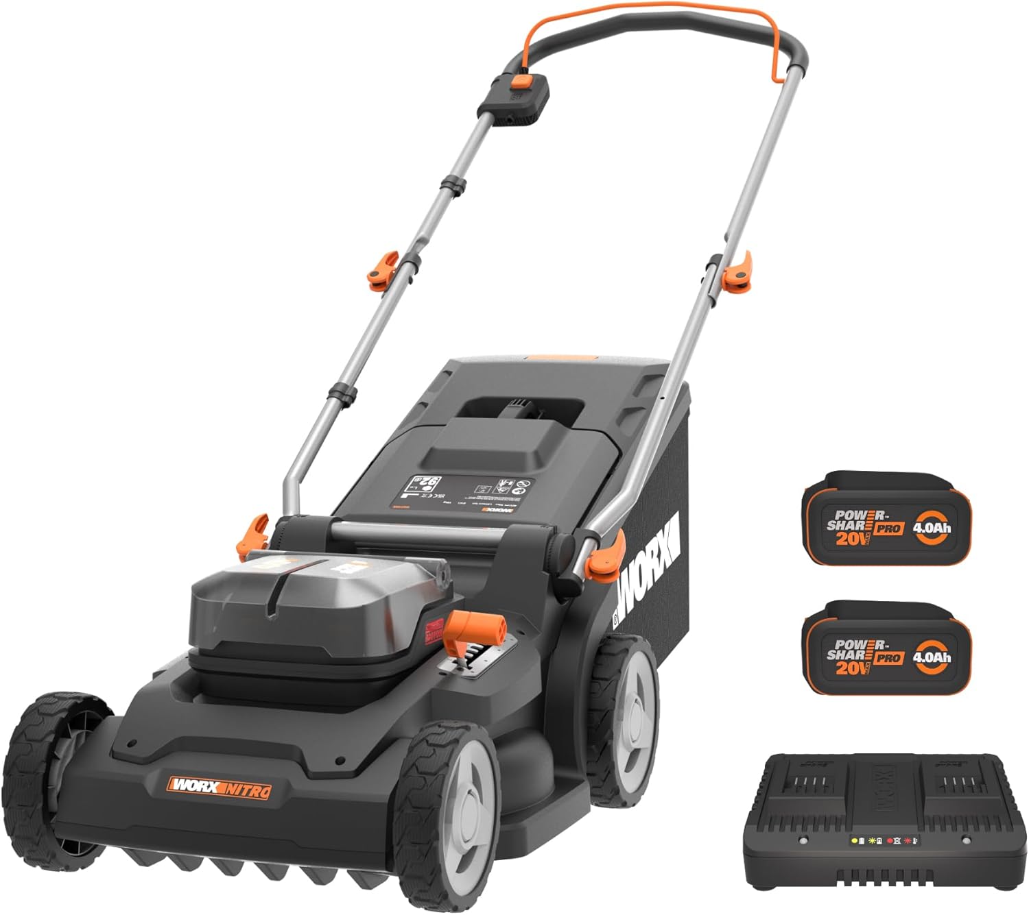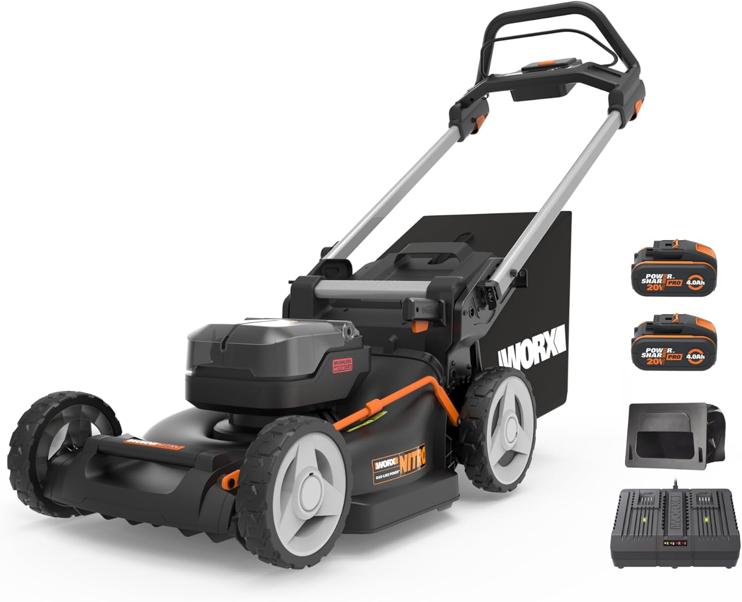 Pro+ Pack: 40V Lawnmower (460m2) + 20V Grass Trimmer + 2 x 4Ah Batteries and 1 x 2Ah Battery + Dual Charger and Single Charger (Ideal for Garden Maintenance)
