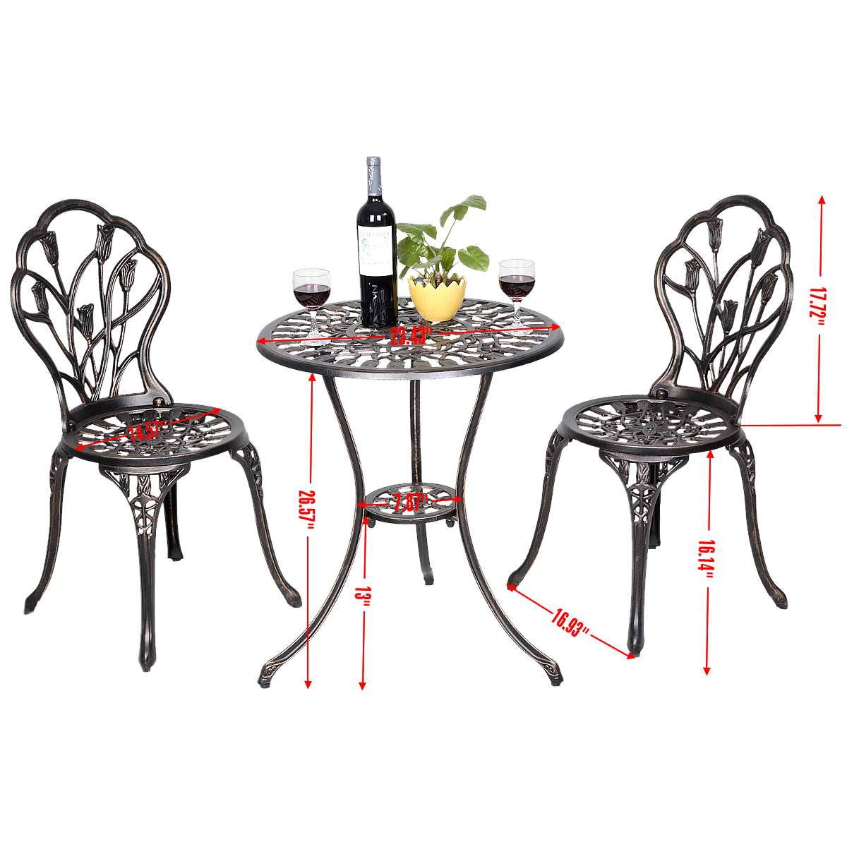 This garden furniture set includes a table and two chairs. The entire set is made of durable, weather-resistant cast aluminum. You can enjoy outdoor breakfasts at this large table. The natural colors create a beautiful ambiance. High-quality materials ensure better weather resistance and easy maintenance. Product Features: Three-piece garden furniture set including a table and two chairs suitable for gardens, patios, and camping. Complete Set: This furniture set includes a table and two chairs. The entire set is made of durable, weather-resistant cast aluminum. You can enjoy outdoor breakfasts at this large table. The natural colors create a beautiful ambiance. Sturdy and Durable: The metal frame makes the furniture easy to clean and sturdy. Versatile: Suitable for gardens, camping, vacations, patios, and kitchens. Premium Materials: Better resistant to weather conditions and easy to maintain. Product Features: High-quality aluminum frame, seat, and backrest; round tabletop with weather-resistant aluminum coating; waterproof; stackable chairs. Specifications: Material: Cast aluminum; Set: 1 table, 2 chairs; Table dimensions: 59.5 x 67.5 cm (diameter x height); Chair dimensions: 46.5 x 43 x 86 cm (length x width x height). Shipping list: 1 x table; 2 x chairs.