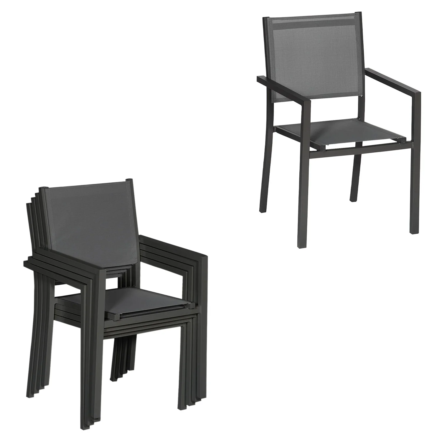 This furniture set will perfectly complement your garden furniture, allowing you to entertain guests during the summer. It includes a 140/200 cm dining table with an extendable and stackable tabletop, and 10 stackable chairs to help you expand your outdoor space. The VENEZIA collection is practical, stylish, and fully functional, offering everything you need. The garden furniture features a lightweight yet sturdy aluminum frame with Teslin fabric seat covers for optimal comfort. Our garden furniture is UV resistant, durable, and will remain looking brand new for years to come. Details: Dimensions: - Table: 140/200 cm (L) * 140 cm (W) * 75 cm (H) - Tabletop: Tabletop 1: 140 cm (L) * 132.7 cm (W); Tabletop 2: 60 cm (L) * 132.7 cm (W) - Chair: 56.5 cm (D) * 57 cm (W) * 89.5 cm (H) - Seat Depth: 45.5 cm - Seat Width: 41 cm - Seat Height: 44 cm Material: - Fabric: Teslin fabric - Frame: Aluminum - Tabletop: Aluminum Color: - Fabric: Gray - Frame: Charcoal Gray - Tabletop: Charcoal Gray Other Information: - Maximum Load Capacity: Table: 160 kg; Chair: 120 kg - Fabric + Frame: UV resistant - Tabletop can be added - Chairs are stackable - Assembly required