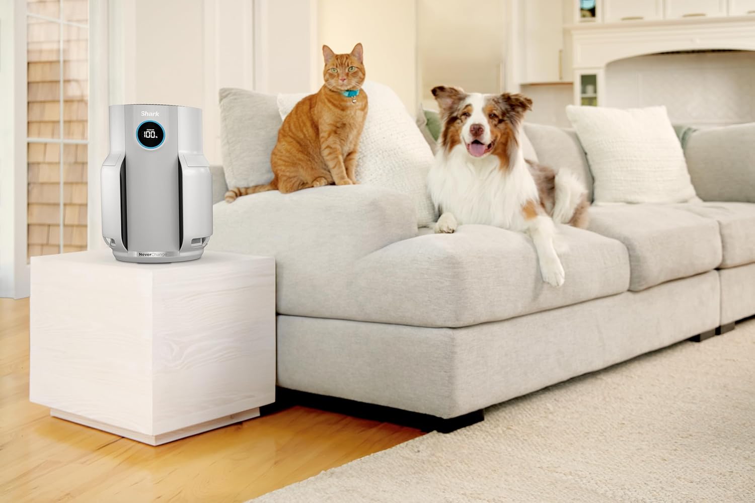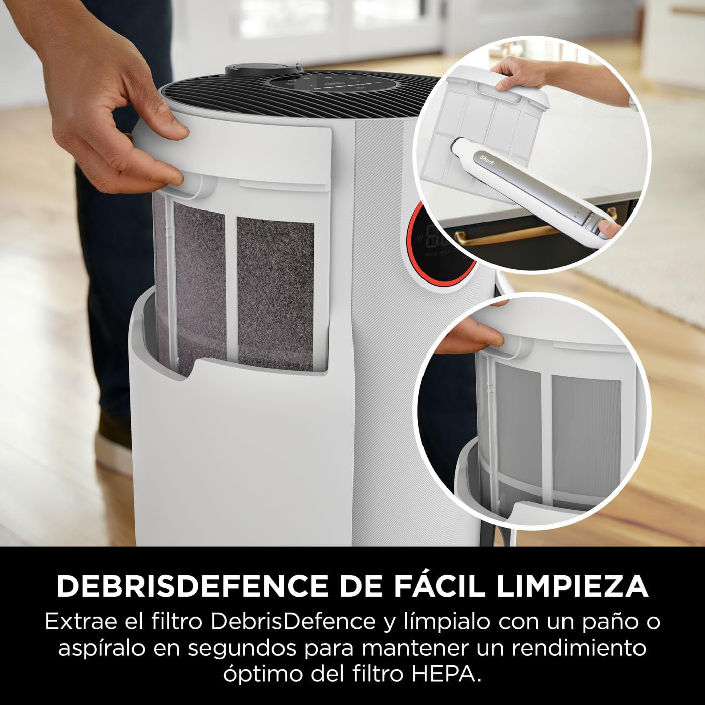 Shark NeverChange Air Purifier, up to 5 years, HEPA filter, 60m2 coverage, captures 99.97% of allergens, automatic mode, quiet operation, LED display, for home and bedroom, white HP150EU