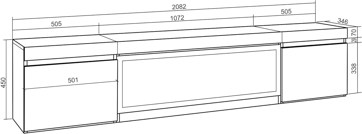 LED Electric Fireplace. Dimensions: 107 cm wide, 32 cm high. Realistic 3D flame effect. No burns due to the absence of a heat source. Power: 34 watts. Includes remote control and 3-level brightness adjustment. TV cabinet with doors, large storage space. Module dimensions: 51 cm wide, 45 cm high, 35 cm deep. Black with high-quality porous wood grain finish. LED Fireplace Module. Module dimensions: 107 cm wide, 45 cm high, 35 cm deep. Black with high-quality porous wood grain finish. Easy Assembly: Skraut Home furniture is easy to assemble and comes with clear and detailed instructions. Enjoy your new furniture quickly without special tools. Warranty: Skraut Home products come with a 2-year warranty and excellent after-sales service, with ample spare parts available. The electric fireplace operates by connecting to a power source and requires no batteries. The remote control requires batteries but is not included. LED Electric Fireplace. Dimensions: 107 cm. Width: 32 cm. Alto. Realistic 3D flame effect. No risk of burns as it contains no heat source. Power: 34 watts. Includes remote control and 3-level brightness adjustment. TV module with door, large storage space. Module dimensions: 51 cm. Width: 45 cm. Height: 35 cm. Black with high-quality porous wood grain. LED fireplace module. Module dimensions: 107 cm. Width: 45 cm. Height: 35 cm. Dark black with high-quality porous wood grain.