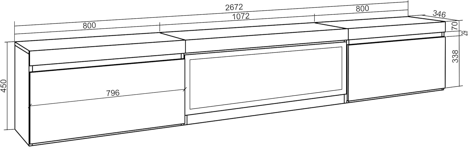 LED Electric Fireplace. Dimensions: 107 cm wide, 32 cm high. Realistic 3D flame effect. No burns due to the absence of a heat source. Power: 34 watts. Comes with remote control and three adjustable brightness levels. LED Fireplace Module. Module dimensions: 107 cm wide, 45 cm high, 35 cm deep. Black with high-quality porous wood grain. TV Cabinet with Doors, Large Storage Space. Module dimensions: 80 cm wide, 45 cm high, 35 cm deep. Black with high-quality porous wood grain. Convenient Packaging System for Easy Transportation. Packaging design facilitates transportation; all packages weigh less than 30 kg and are less than 120 cm in size. Warranty: Skraut Home products come with a 2-year warranty and comprehensive after-sales service, with ample spare parts available. Easy Assembly: Skraut Home furniture is easy to assemble and comes with clear and detailed instructions. Enjoy your new furniture quickly without special tools. This electric fireplace is powered by an electrical outlet and requires no batteries. The remote control requires batteries but is not included. Product Description: LED Electric Fireplace. Dimensions: 107 cm (W) x 32 cm (H). Realistic 3D flame effect. No risk of burns as it contains no heat source. Power: 34 watts. Includes remote control with 3 brightness levels. LED Fireplace Module. Module Dimensions: 107 cm (W) x 45 cm (H) x 35 cm (D). Black with high-quality porous wood grain. TV Stand with Doors, Large Storage Space. Unit Dimensions: 80 cm (W) x 45 cm (H) x 35 cm (D). Black with high-quality porous wood grain.