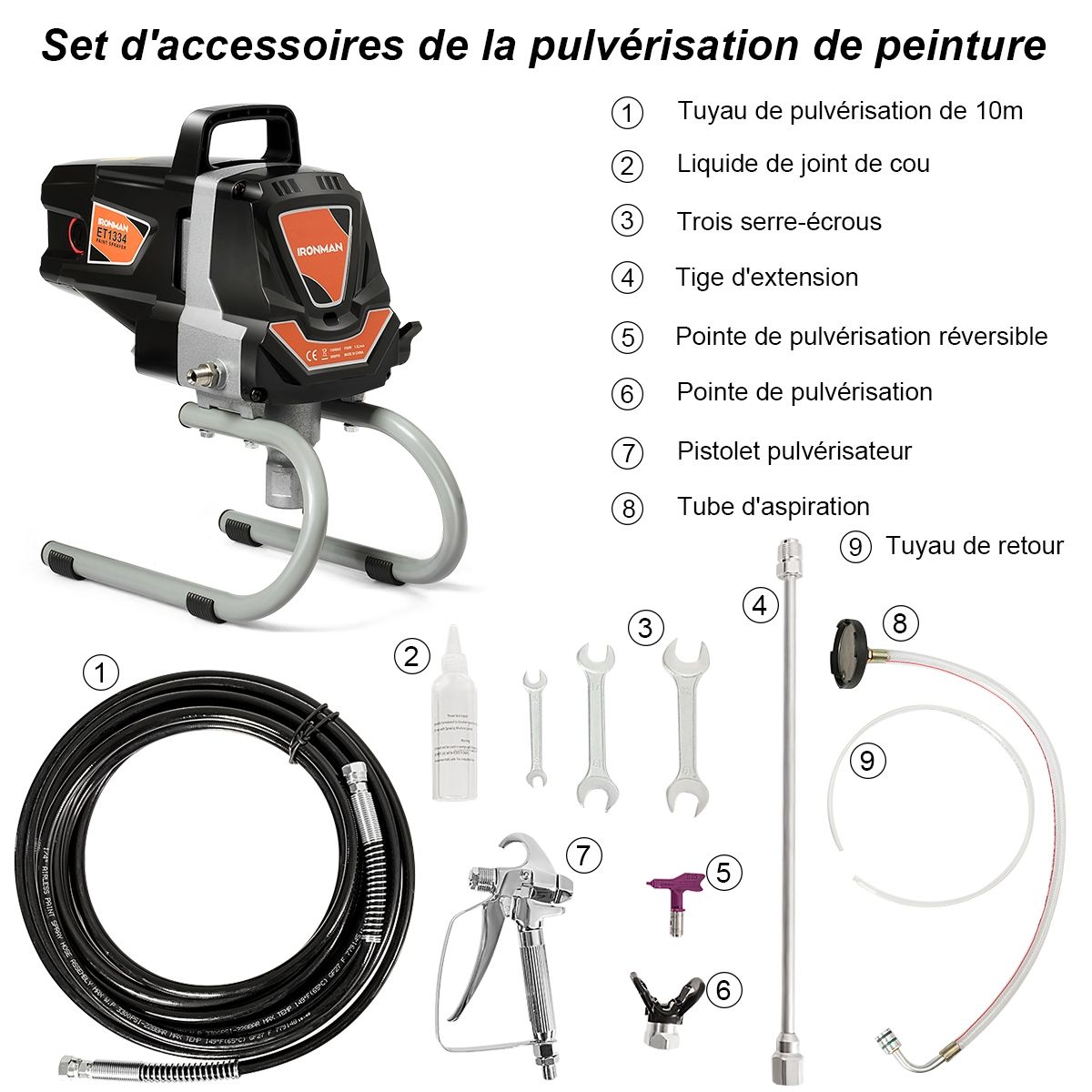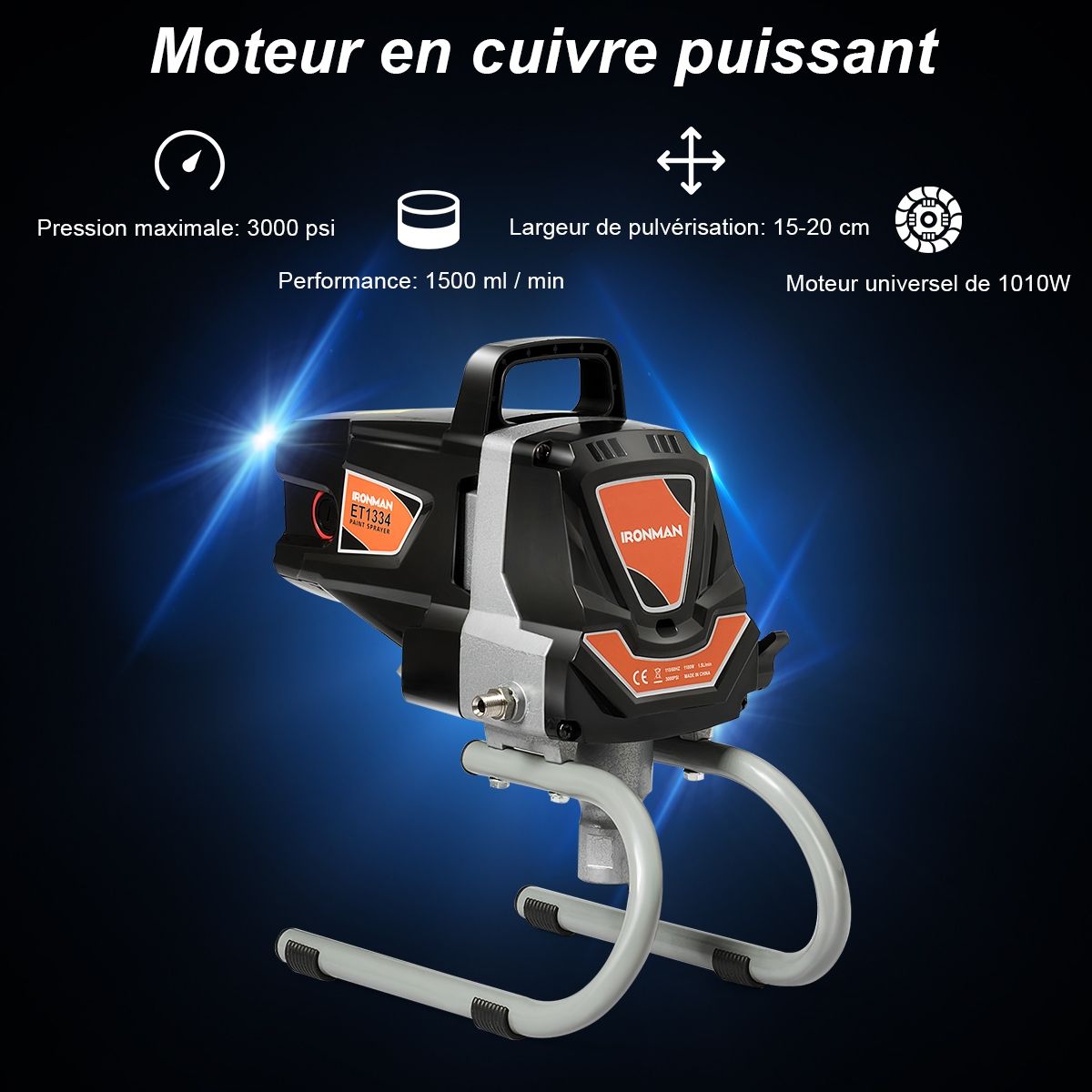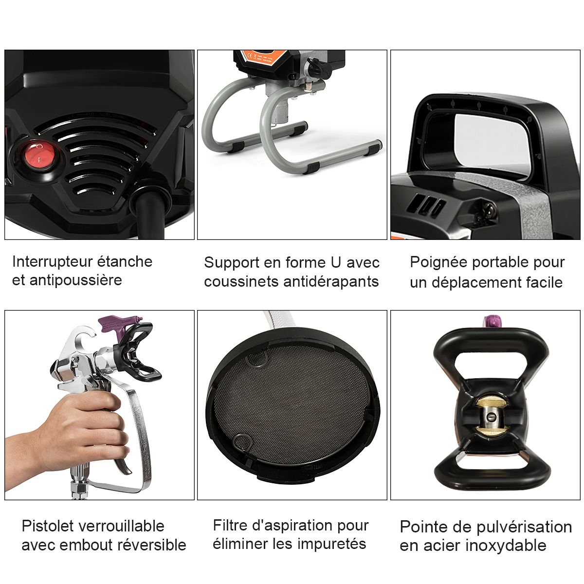 Our spray gun is the ideal choice for anyone who needs to paint. Designed to meet most of your renovation project needs, whether it's interior decorating, sheds, patios, or fences, this spray gun allows you to easily apply a wide variety of paints without dilution. This high-quality spray gun saves you more time than traditional brushes and rollers. Don't hesitate, buy now it's excellent value! Key Features: Even, undiluted coating. Equipped with a 1010W motor, providing up to 3000psi (20.68Kpa) of maximum pressure. Locking button allows for continuous spraying, ensuring consistent results. It sprays evenly on uneven surfaces compared to traditional rollers and brushes. Durable design. The entire frame is constructed from high-quality steel, ensuring durability and strength. The motor uses copper instead of aluminum, significantly improving energy efficiency. The U-shaped base enhances stability. Consistent paint flow. This powerful spray gun design provides a maximum paint flow of up to 3000psi. This helps avoid mistakes by beginners and gives them the opportunity to complete DIY projects. Easy to use and clean, it's lightweight, portable, and quick and easy to install. The nozzle is made of stainless steel with a smooth, stain-resistant surface that's easy to clean. Soap and water are suitable for most types of paint. Ideal for renovation projects, this spray gun delivers superior painting results for all your projects. It's ideal for anyone planning to repaint their home to give it a fresh, more creative makeover. It can be used for a variety of projects, including painting interior and exterior walls, furniture, and more. Key features: Powerful copper-core motor; unique U-shaped base design; spray gun with a flip-up nozzle; maximum paint pressure of 3000psi; can spray undiluted paint even under high pressure; designed specifically for home renovation projects; spray gun with a locking button for continuous spraying and to prevent accidental overspray. Specifications: Net weight: 8 kg; Power: 1010 watts; Voltage: 220V-240V 50HZ; Rated power: 1.5 hp; Maximum pressure: 3000 psi; Material: Steel + plastic; Spray width: 15 cm-20 cm; Spray gun hose length: 10 m; Maximum spray flow rate: 1.5 liters/minute; Product dimensions: 22 x 40 x 36 cm (L x W x H). Package contents: 1 x Spray gun sprayer, 1 x Throat sealant, 1 x Reversible nozzle, 1 x Nozzle head, 1 x 3-foot spray hose, 3 x Wrenches, 1 x User manual