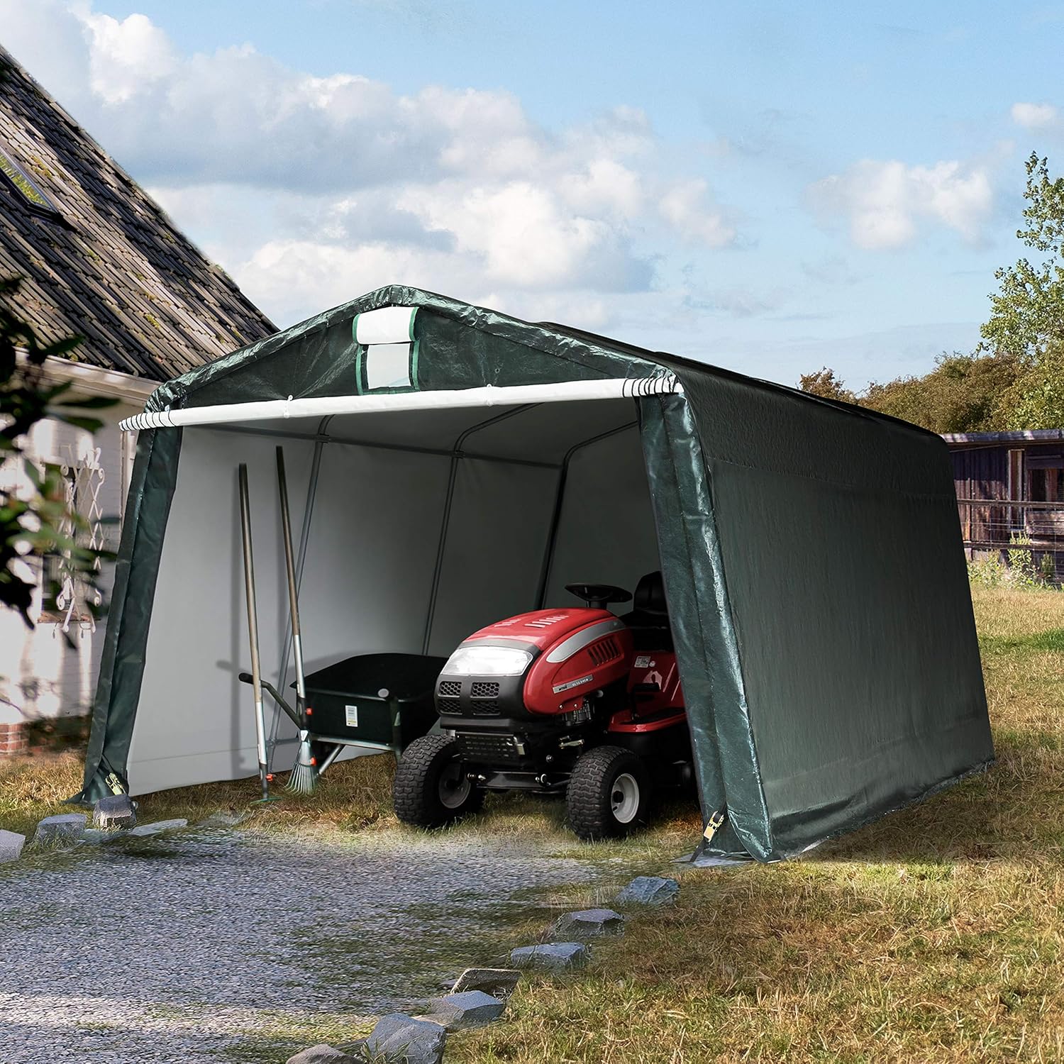 TOOLPORT 3.3 x 4.8 m Garage, Storage Shelter, PE 450 N, Dark Green Garage Tent