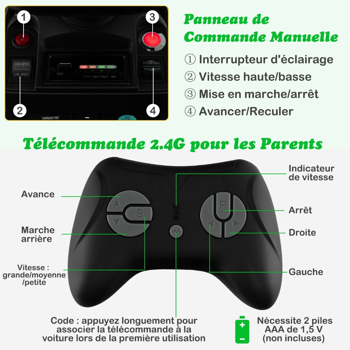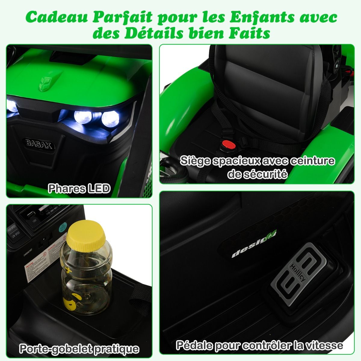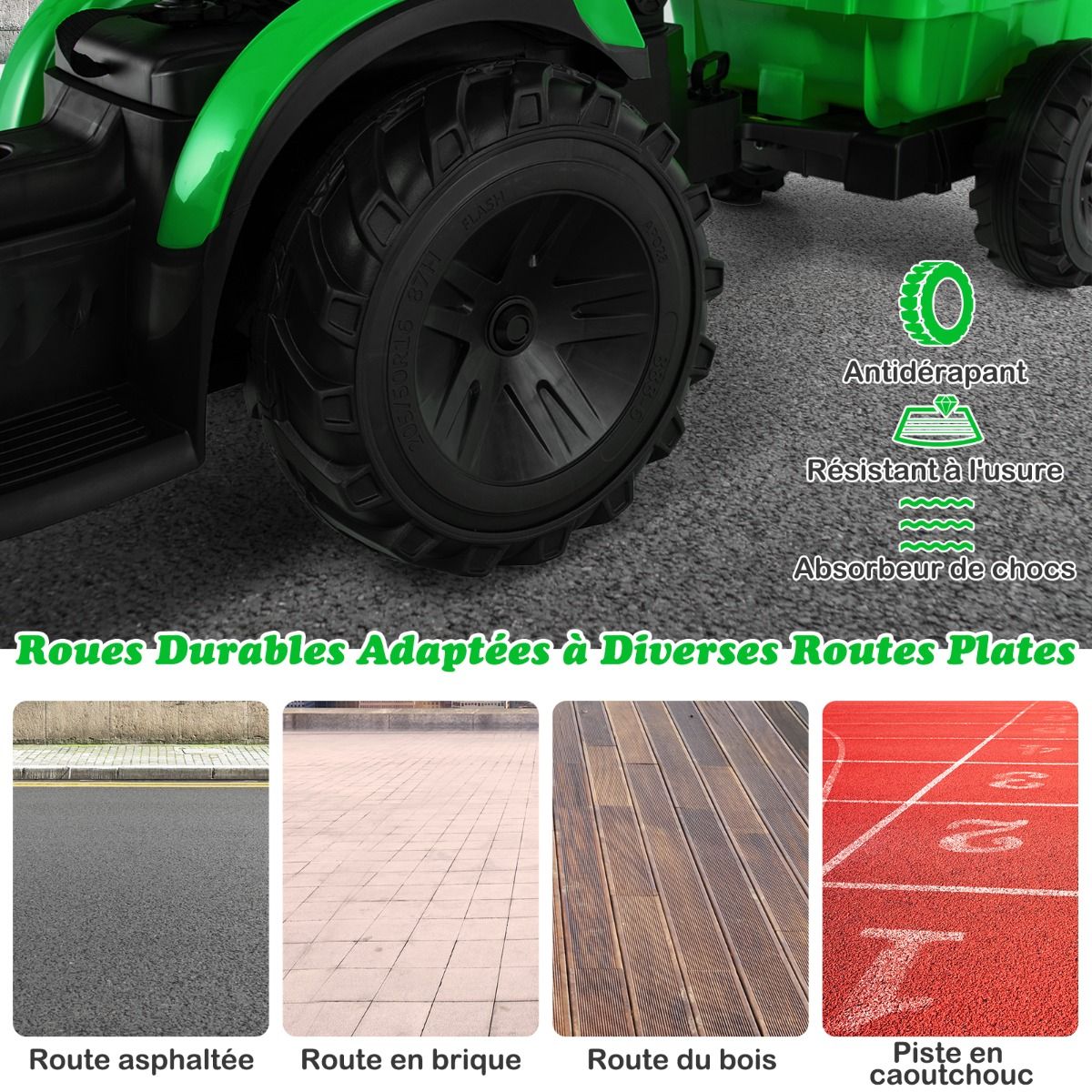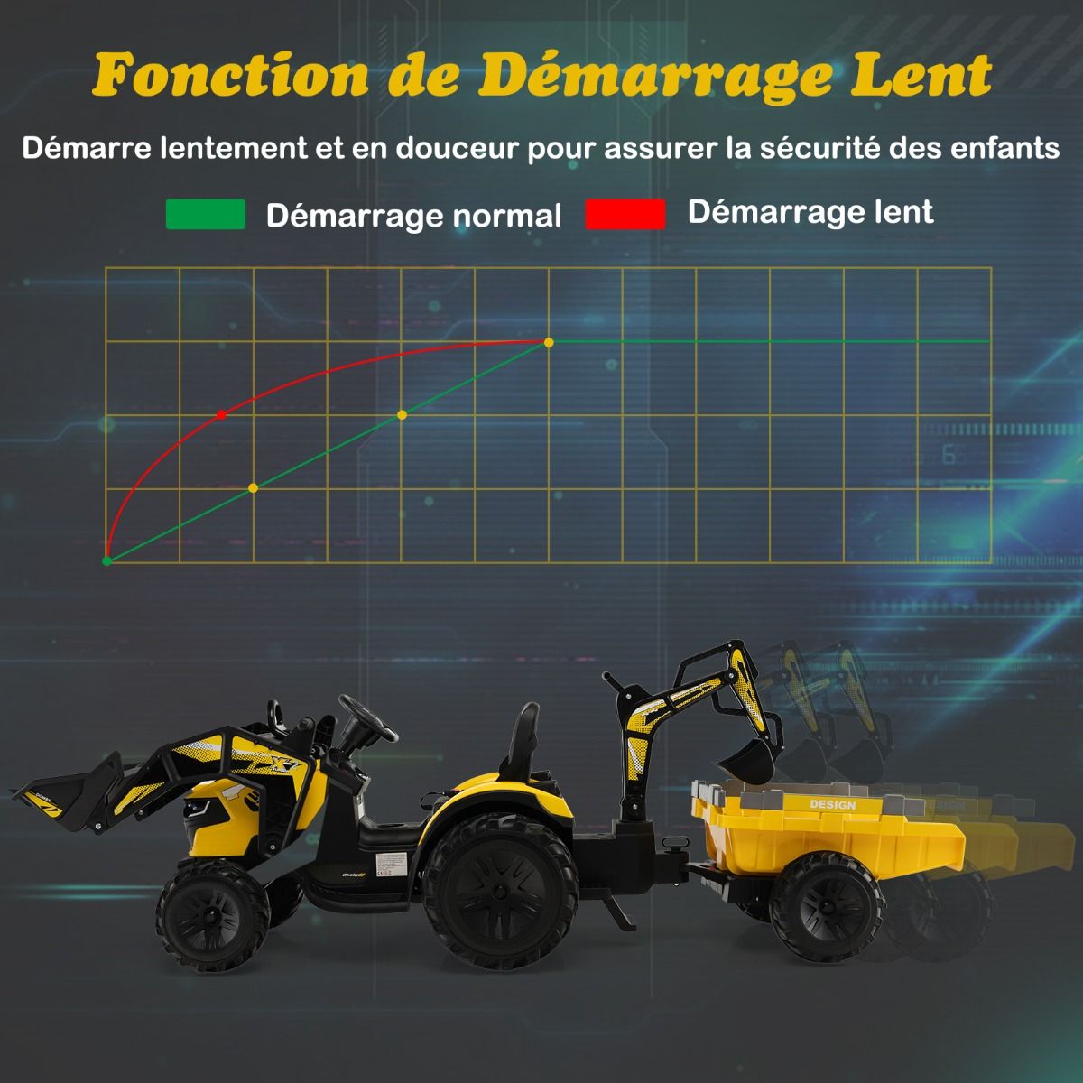 • 12V Electric Tractor for Children, 3-5 km/h, Remote Control, MP3, USB, Green/Yellow -