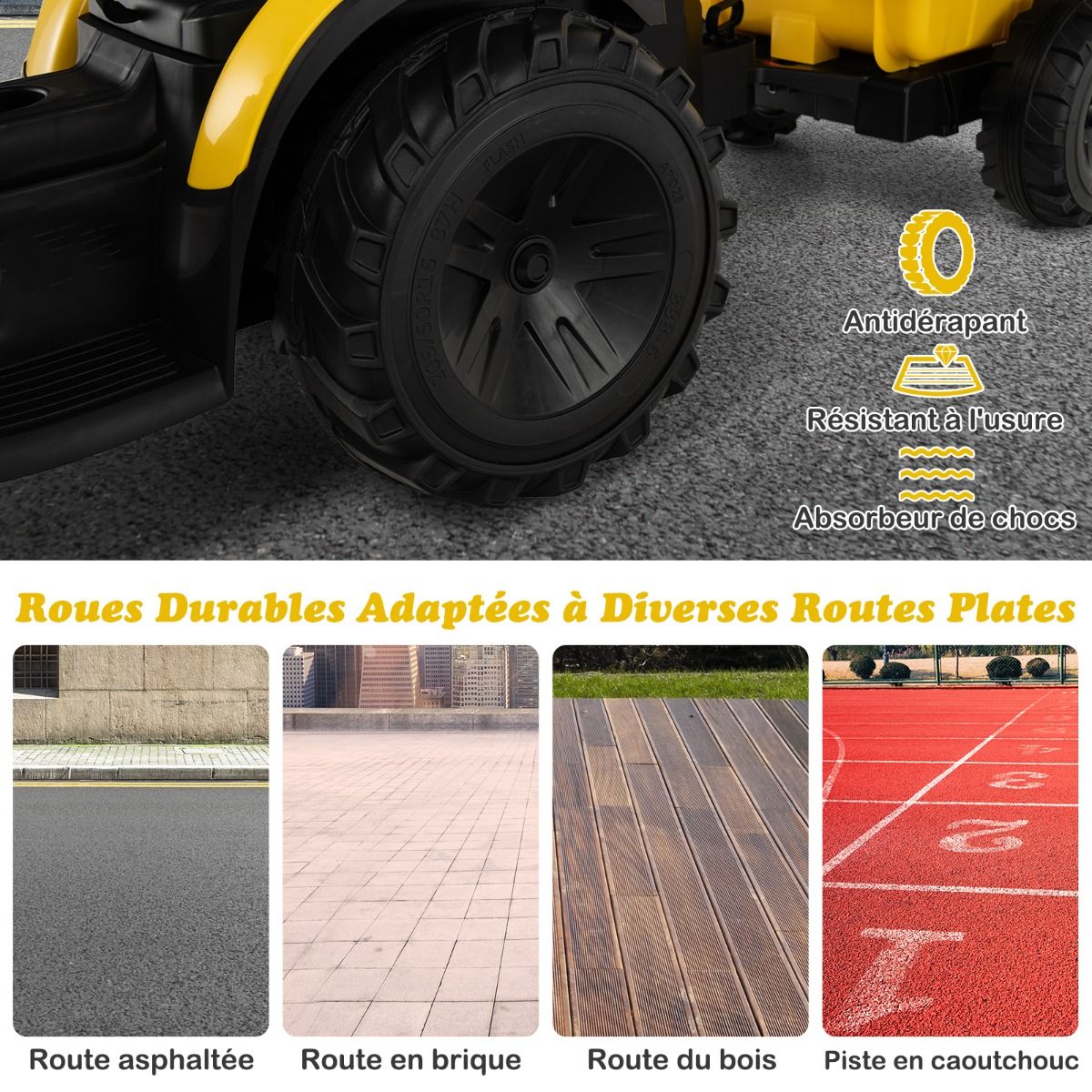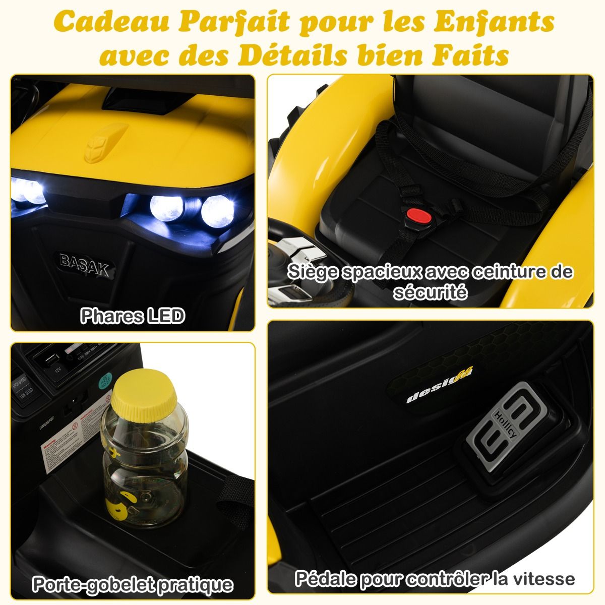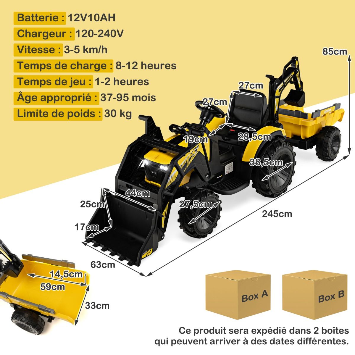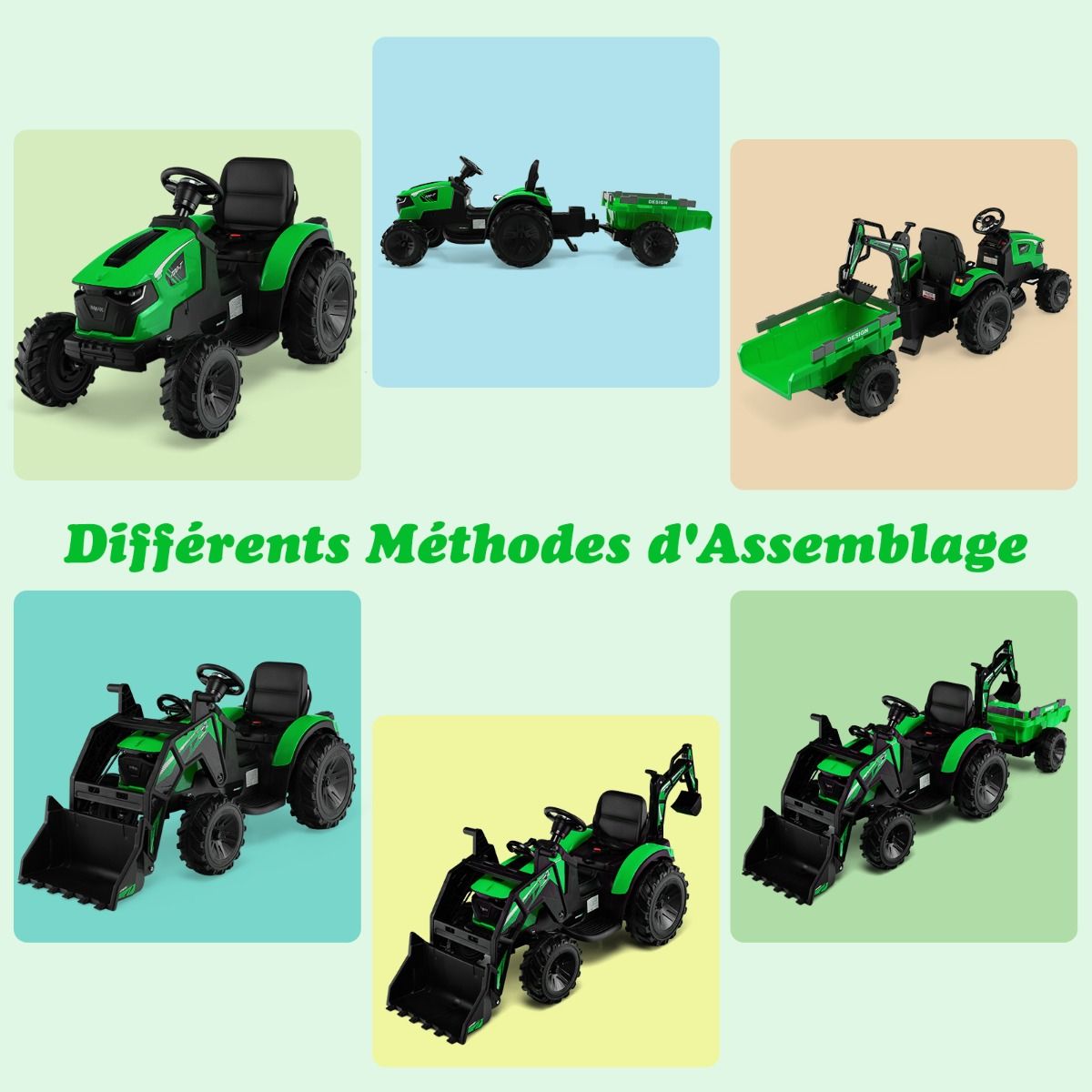 • 12V Electric Tractor for Children, 3-5 km/h, Remote Control, MP3, USB, Green/Yellow -