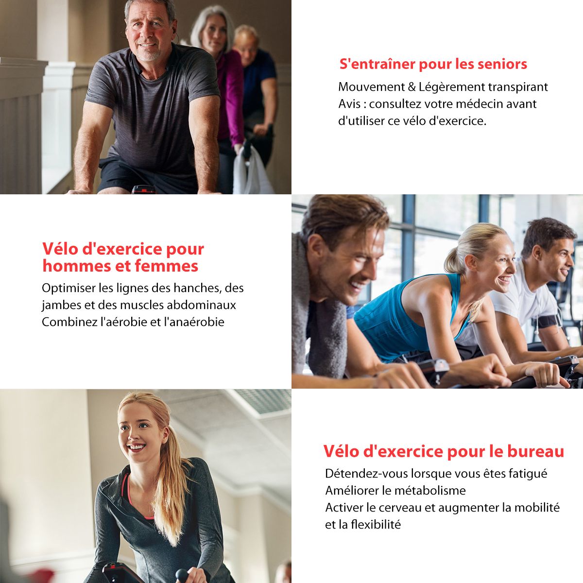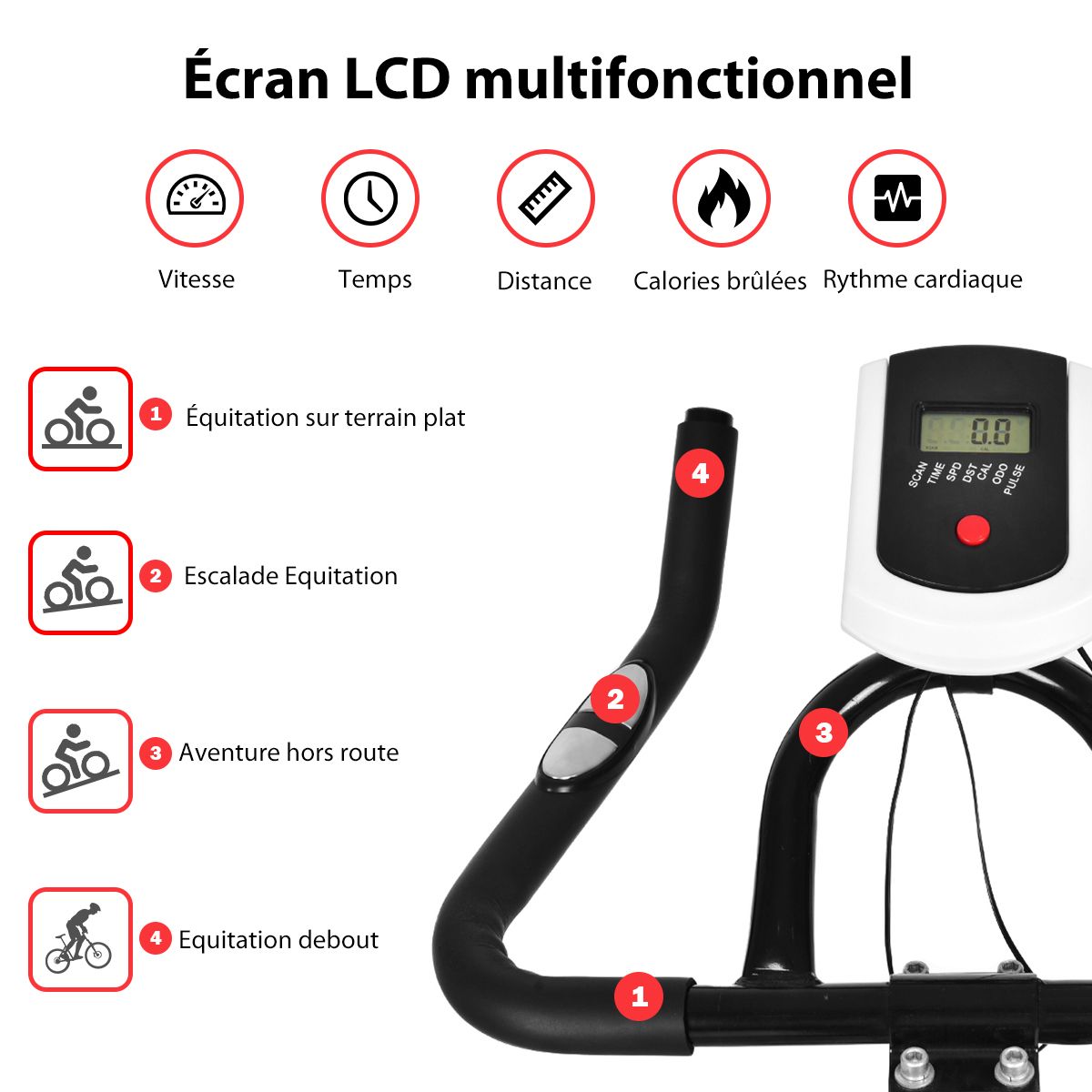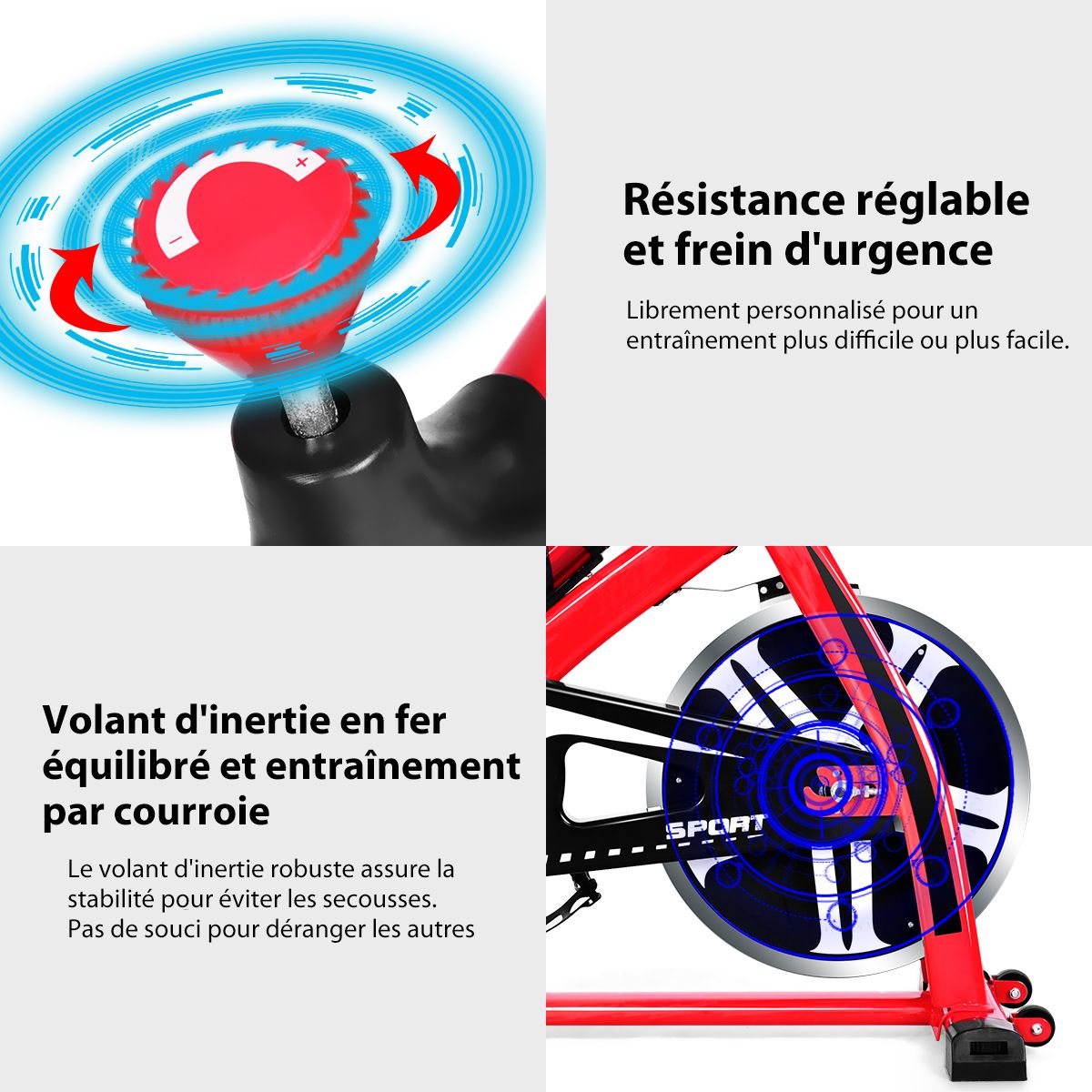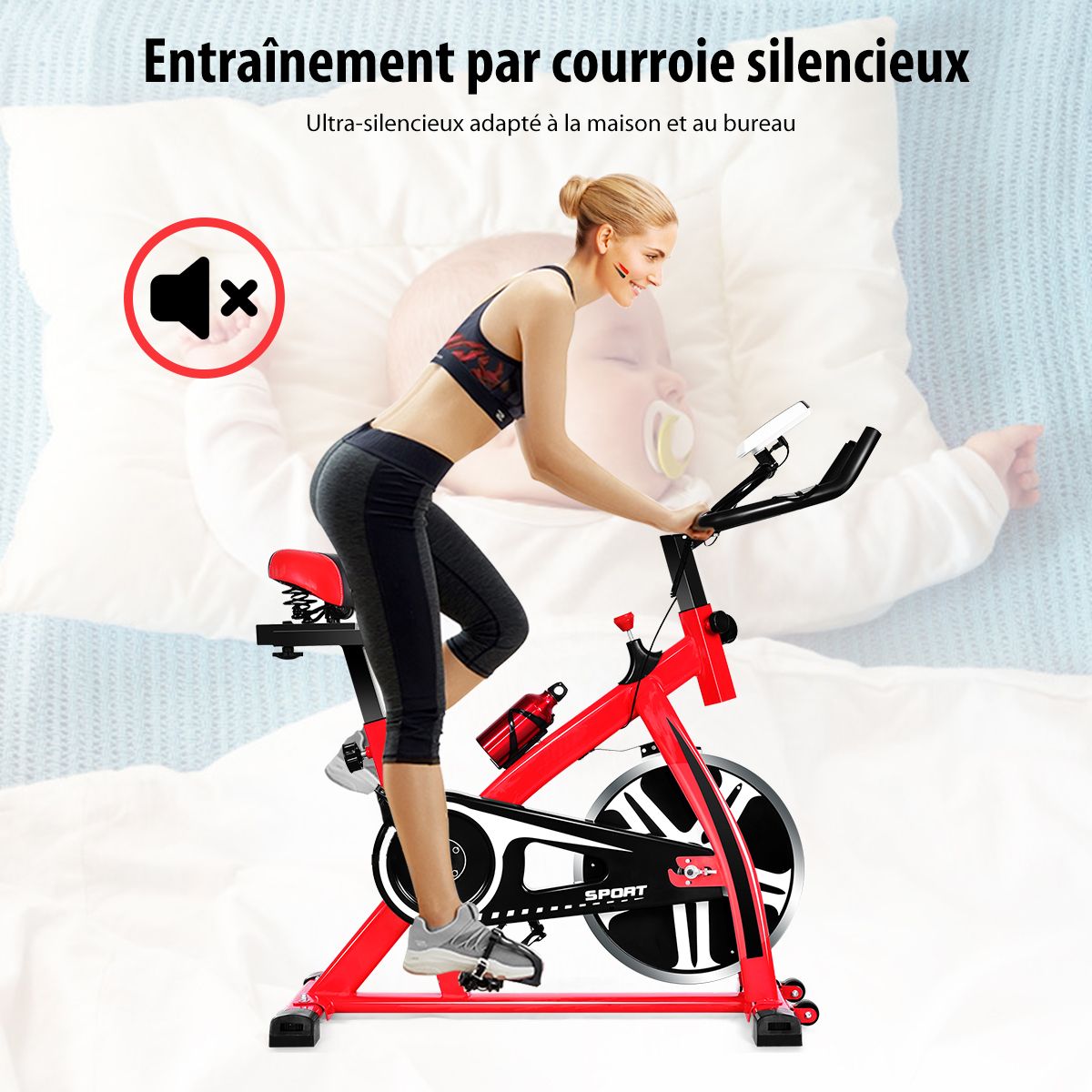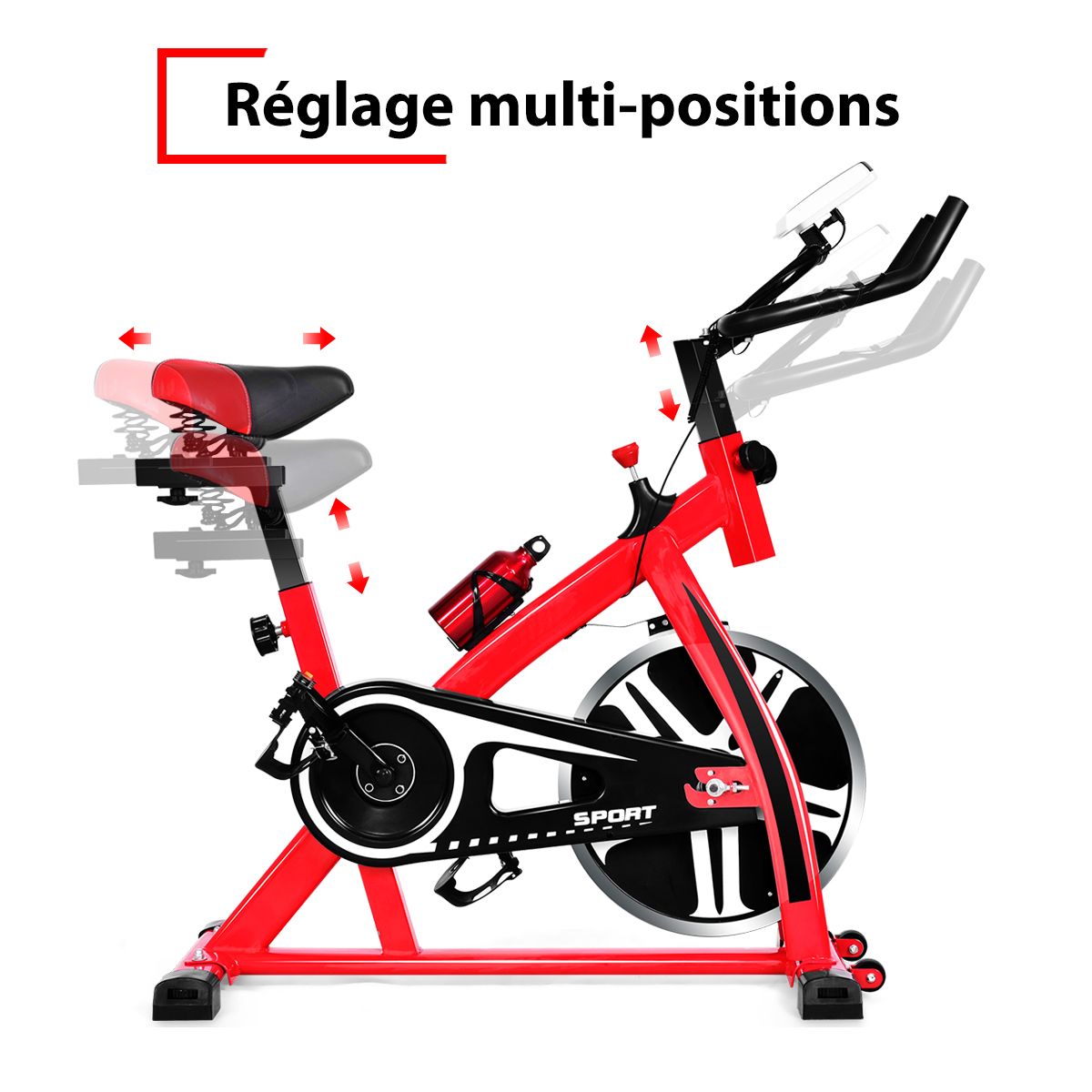 This exercise bike features a robust double-triangle steel frame with a maximum weight capacity of 150 kg. Adjustable height (80 cm to 91 cm) and handlebars allow you to adjust your riding posture to suit your needs. A sturdy frame, four non-slip footpads, and an extended support bar prevent tipping and ensure safe workouts. A wide, padded seat and easy-grip handlebars enhance comfort. An included water bottle keeps you hydrated. This exercise bike is perfect for working out and strengthening your leg, glute, and abdominal muscles, making it ideal for home workouts! Don't hesitate, treat yourself! Features: Durable and Reliable This exercise bike features a durable double-triangle steel frame with a maximum weight capacity of 150 kg. Heavy-duty flywheels and non-slip pads ensure stability and safety. Adjustable Height and Handlebars: Both the seat and handlebars are adjustable to multiple positions to accommodate different users and ensure proper riding posture. Additionally, you can adjust the workout intensity using a knob to make it easier or more challenging. LCD Display and Water Bottle Cage: The LCD display records your workout data, including heart rate, time, speed, distance, and calories burned, allowing you to adjust your workout plan as needed. Additionally, our exercise bike comes with an aluminum water bottle and bottle cage for easy hydration. Ergonomic Details and Efficient Exercise: The soft seat provides a comfortable ride, and the adjustable foot pedals conform to your foot shape to prevent slipping. Furthermore, the silent belt ensures smooth and quiet operation without disturbing others. Versatile and Portable: This exercise bike is suitable for anyone looking to lose weight, tone up, or more. Integrated wheels make it easy and convenient to move. It can be installed in living rooms, offices, gyms, and other locations. Powerful Features: The seat and handlebars are height-adjustable to accommodate users of different heights. The LCD display records data such as time, speed, distance, heart rate, and calories burned. The sturdy steel frame and durable flywheel provide excellent stability and durability. A knob adjusts the resistance, allowing you to easily or challenge yourself with more difficult workouts. The silent belt drive ensures smooth and quiet operation without disturbing others. Padded seat and easy-grip handlebars for comfortable use. Adjustable pedals conform to the foot shape and prevent slipping. Anti-slip mats enhance bicycle stability. Flexible embedded wheels for easy movement. Equipped with a water bottle cage for convenient drinking. Specifications: Colors: Red and Black. Material: Steel, PU (Polyurethane). Dimensions: 110cm x 110cm x 47cm (L x W x H). Base Dimensions: 93cm x 47cm (L x W). Saddle Dimensions: 27cm x 20cm x 13cm (L x W x H). Seat Height Adjustment: 80cm to 91cm. Flywheel Weight: 8kg. Net Weight: 25kg. Maximum Load: 150kg. Package Includes: 1 x Bicycle Apartment, 1 x Water Bottle, 1 x Instruction Manual