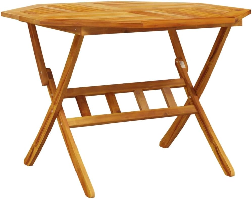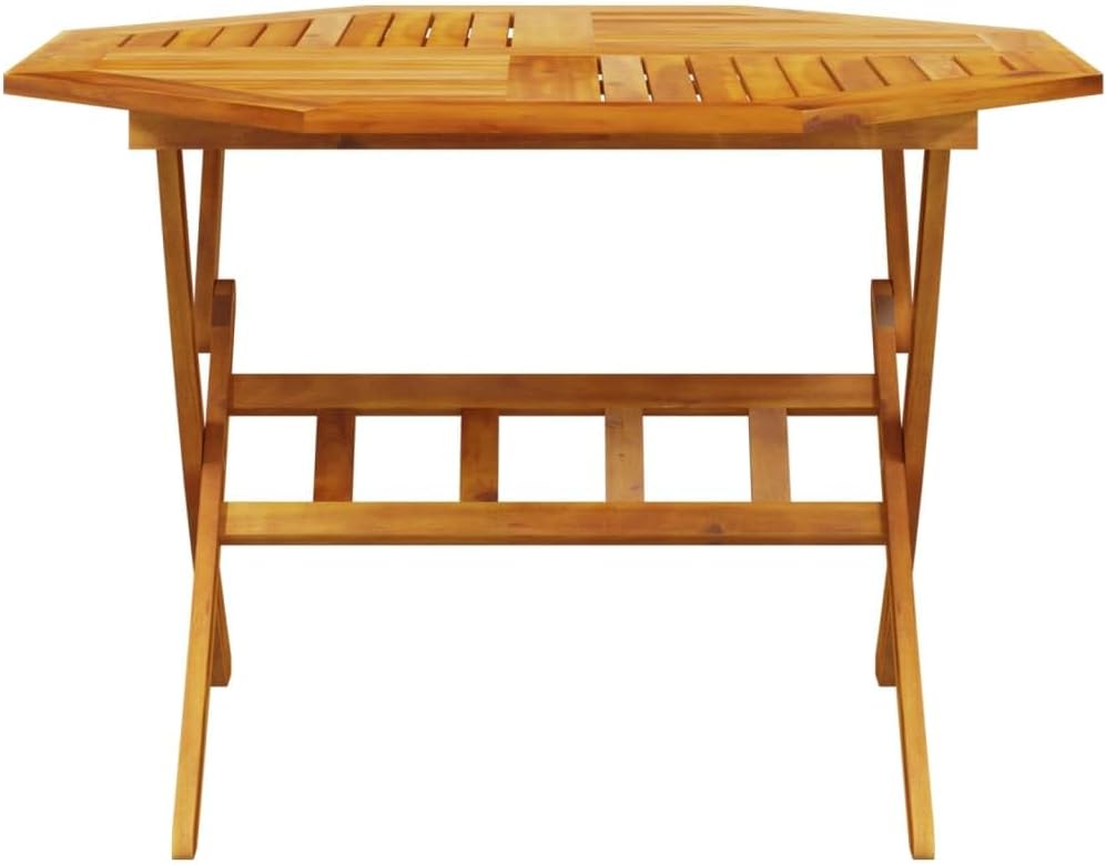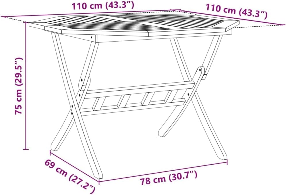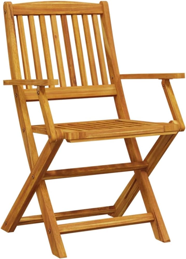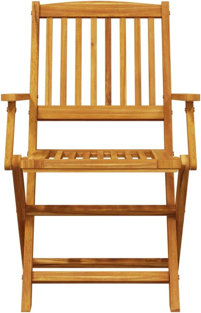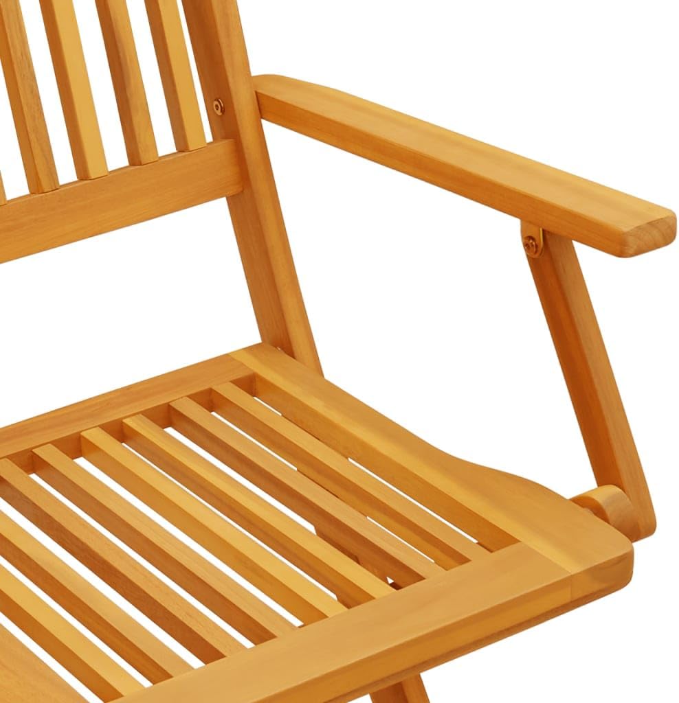 This folding garden table and chair set is a great choice for outdoor dining or relaxing in your garden, backyard, or patio. [Solid Acacia Wood:] Solid acacia wood is a beautiful natural material. Acacia is a tropical hardwood, dense and durable. [Foldable Function:] This outdoor table and chair set folds up when not in use, saving space. [Ventilated Design:] This patio table and chair set features a slatted design for easy drainage, preventing rot and ensuring a longer lifespan. [Stable Tabletop:] The sturdy tabletop provides easy access for drinks or other essentials. This folding garden table and chair set is a great choice for outdoor dining or relaxing in your garden, backyard, or patio. Solid Acacia Wood: Solid acacia wood is a beautiful natural material. Acacia is a tropical hardwood, dense and durable. Foldable Design: This outdoor table and chair set folds up when not in use, saving space. Ventilated: This outdoor table and chair set features a slatted design for easy drainage, preventing rot and extending its lifespan. Stable Tabletop: The sturdy tabletop provides easy access for drinks or other essentials. Easy to Clean: The oil-finished finish makes this garden table and chair set easy to clean; simply wipe with a damp cloth. Tip: To keep your outdoor furniture in optimal condition, we recommend using a waterproof cover. Folding Garden Table: Material: Solid acacia wood, oil-finished. Dimensions: 110 x 110 x 75 cm (L x W x H). Folding Garden Chair: Material: Solid acacia wood, oil-finished. Unfolded Dimensions: 54 x 57 x 91 cm (W x D x H). Folded Dimensions: 54 x 15 x 109 cm (W x D x H). Seat Width: 44 cm. Seat Depth: 39 cm. Seat Height: 44 cm. Armrest Height: 64 cm. Assembly Required: Yes. Package Includes: 1 folding garden table, 4 folding garden chairs.