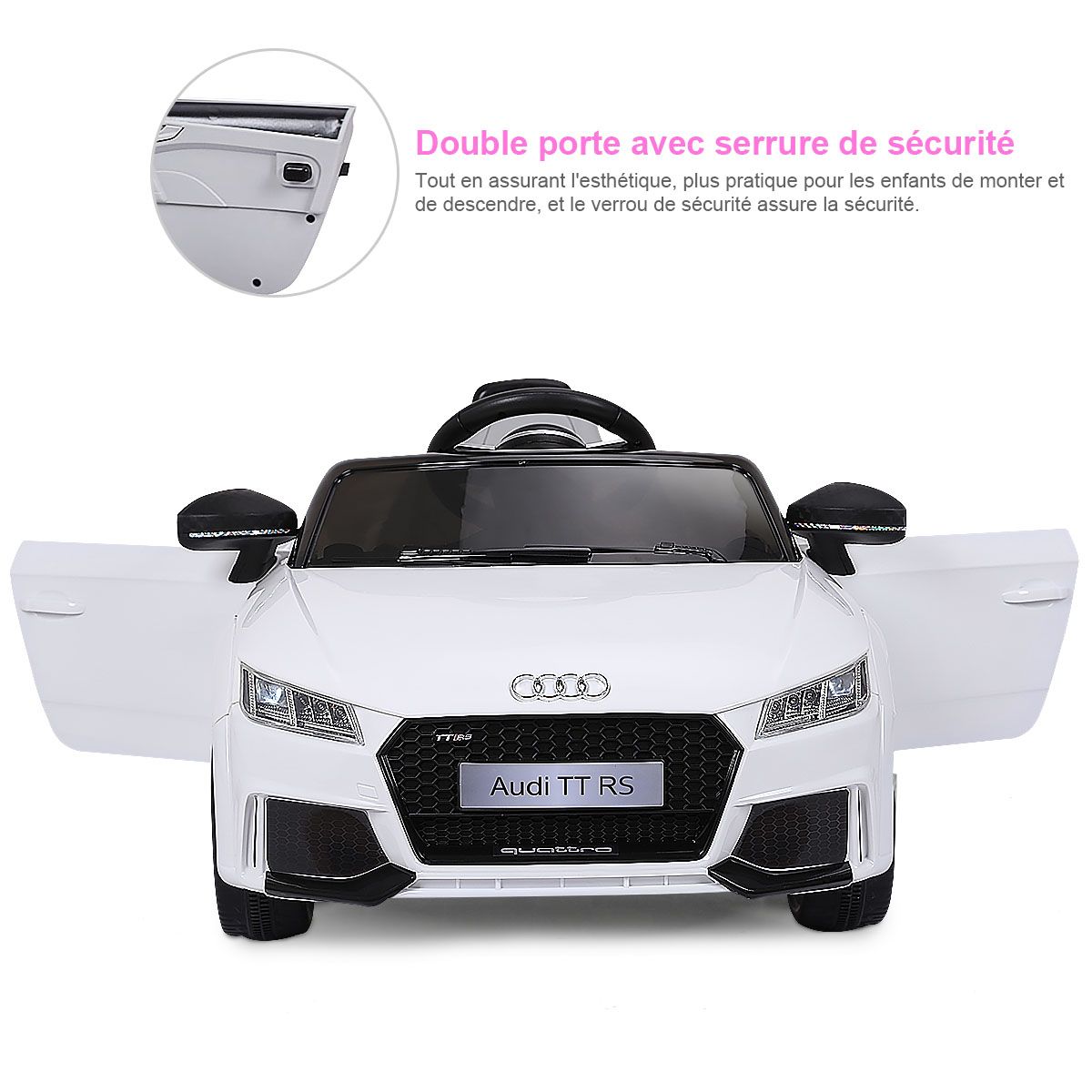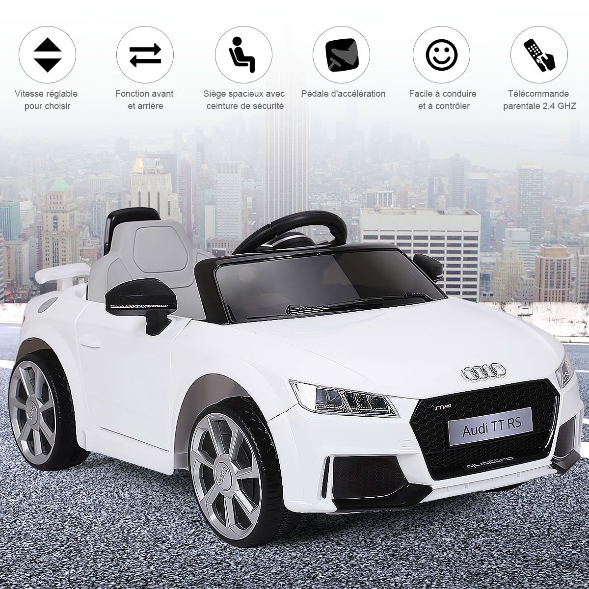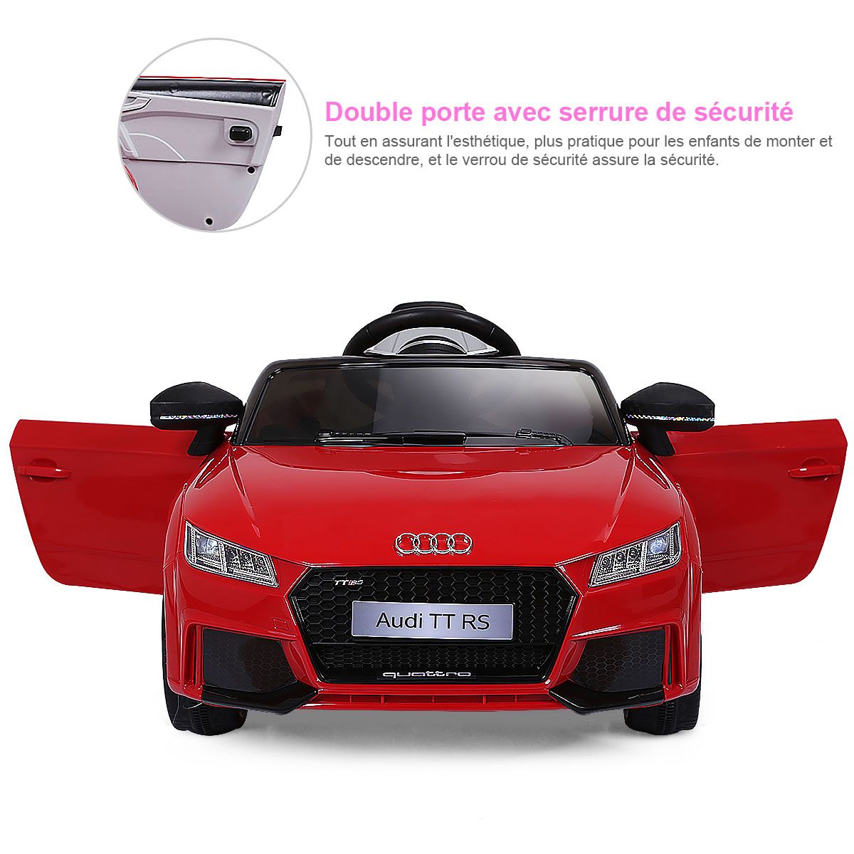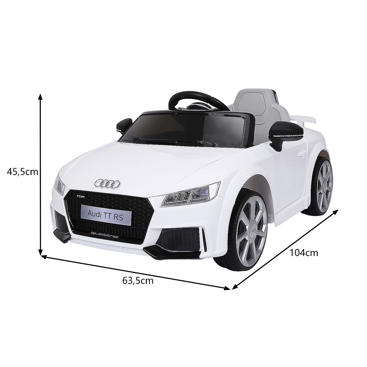 Let this cool electric children's car help kids create precious childhood memories! This Audi electric children's car can be manually controlled or remotely controlled by parents, allowing children to enjoy the fun of driving while ensuring safety. It features an MP3 player and USB interface, allowing children to play music and various stories, learning while playing. Durable and wear-resistant wheels effectively absorb vibrations, ensuring a smooth ride on various road surfaces, fulfilling the driving dreams of little drivers. Two powerful drive motors enable the vehicle to reach a top speed of 3 to 5 km/h, providing children with an exciting driving experience. Furthermore, the spacious seat, pedals, horn, and steering wheel ensure an extraordinary and exciting driving experience for children. Product Features: Remote and Manual ControlThis electric children's car is equipped with a 2.4GHz remote control, allowing parents to easily control the vehicle and avoid safety hazards caused by improper operation by children. Children can also experience real driving fun by controlling the pedals, steering wheel, and other controls. Safety GuaranteeThe vehicle is equipped with a soft-start function. This effectively prevents potential injuries caused by sudden braking or acceleration. Seat belts and lockable doors ensure children are securely fastened to the seat. Four wear-resistant wheels ensure a smooth and safe ride. Multiple Functions for a Fun Driving ExperienceThe horn and LED headlights add to the appeal of this children's stroller. MP3 and USB interfaces allow you to play your child's favorite music, stories, and other content. Dynamic music will excite both boys and girls. Children can adjust the volume themselves. The Perfect Gift for Your ChildThe stylish and cool design attracts children's attention, making this stroller a perfect gift for boys and girls. It's lightweight and portable, allowing children to enjoy driving anytime, anywhere. Suitable for children aged 37-96 months: They can switch songs and adjust the volume by pressing buttons on the dashboard. Powerful and DurableTwo powerful drive motors enable the car to reach speeds of 2.5 to 5 km/h, providing children with an exciting driving experience. Charging time is approximately 8 to 12 hours. Furthermore, this stroller comes with two 6V 4AH batteries and a charger adapter for extended use. Product Features: Remote control and manual operation meet different needs. Four durable wheels ensure safe driving. The horn and LED lights add a realistic touch. The vehicle can reach speeds of 2.5-5 km/h. One-button start for added convenience. A soft-start function ensures smooth acceleration and reliable braking. Doors with safety locks prevent children from falling out. Includes a rechargeable battery and charger adapter. Features an MP3 interface and USB port for connecting external devices. Product Specifications: Color: White/Red. Material: Polypropylene + Iron. Dimensions: 63.5 x 104 x 45.5 cm (L x W x H). Net Weight: 11.7 kg. Speed: 2.5-5 km/h. Charging Time: 8-12 hours. Battery: 6V 4AH. Suitable for children aged 37-96 months. Charger: 12V 500MA. Package Contents: 1 stroller, 1 2.4G remote control, 1 instruction manual.