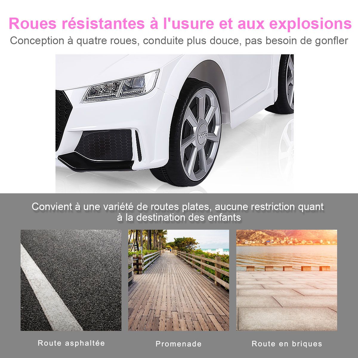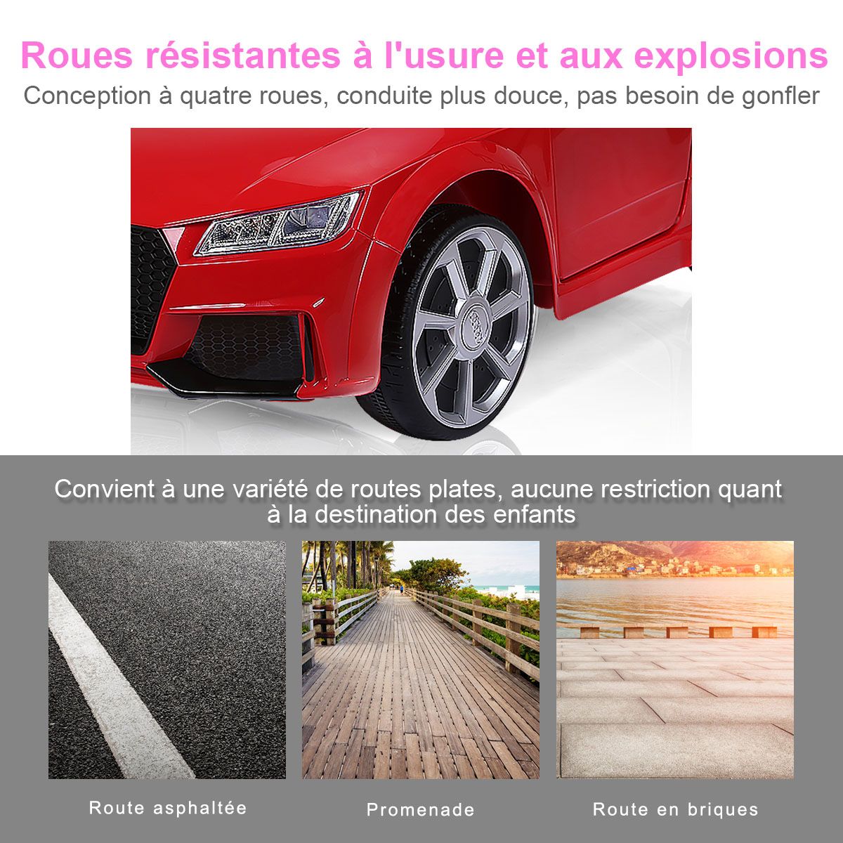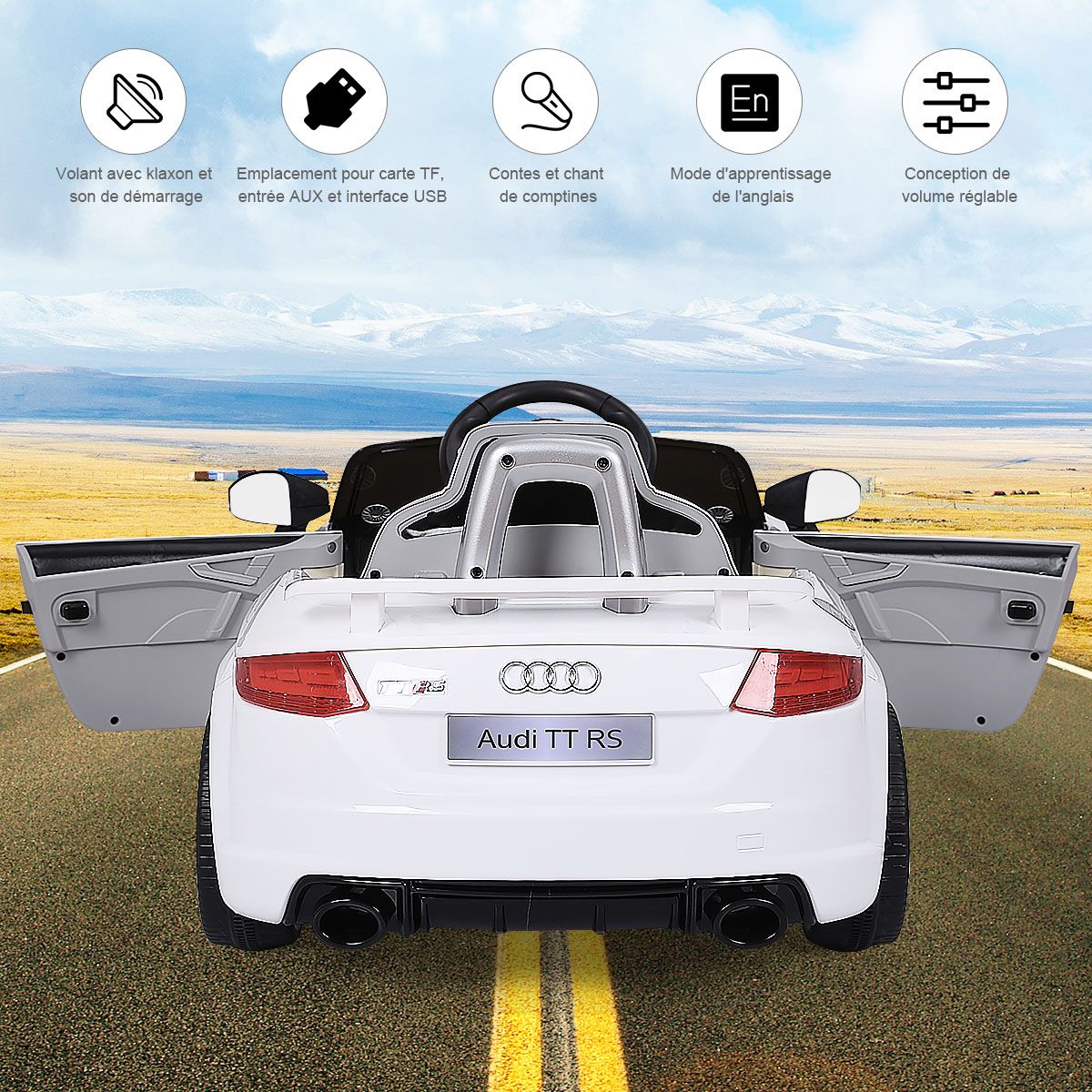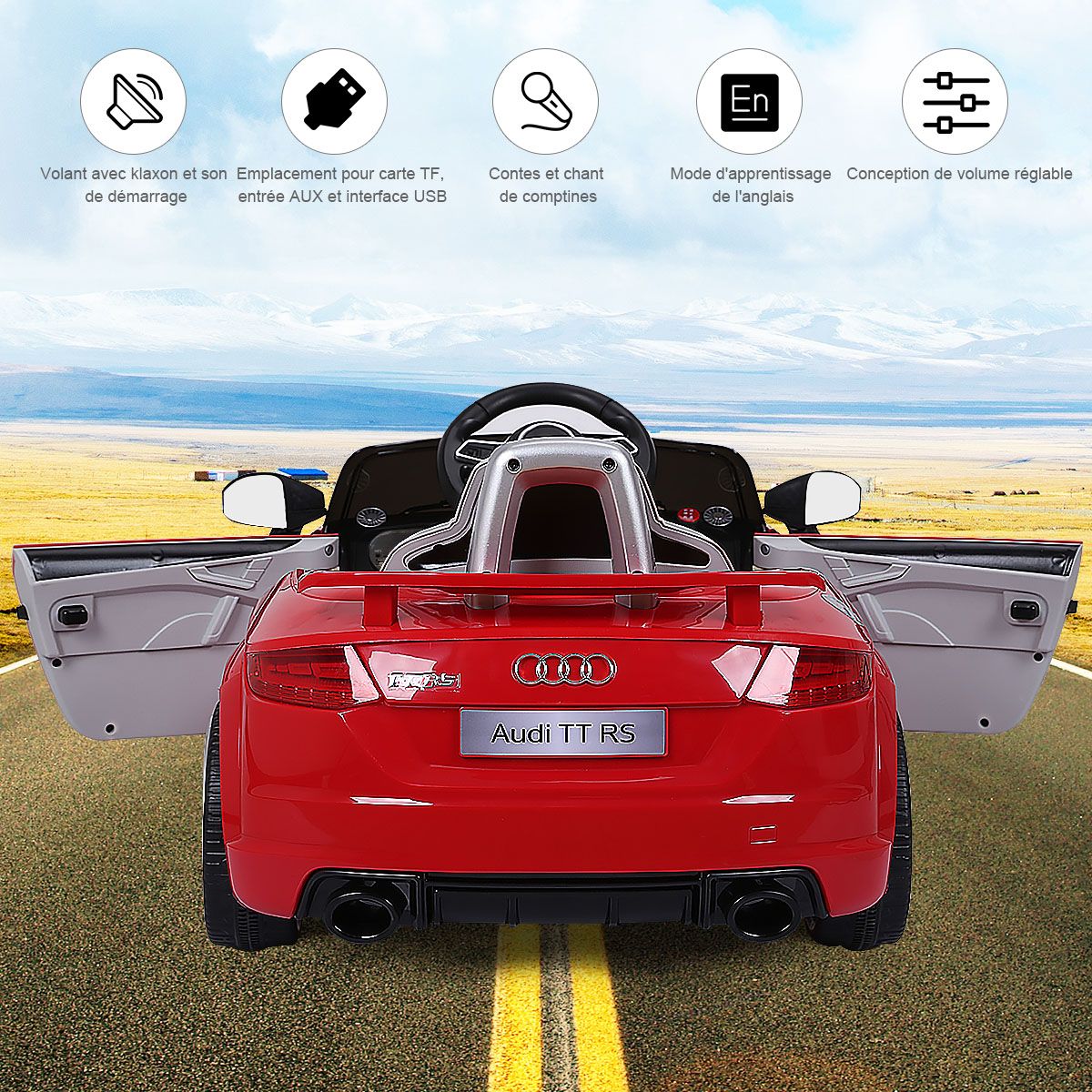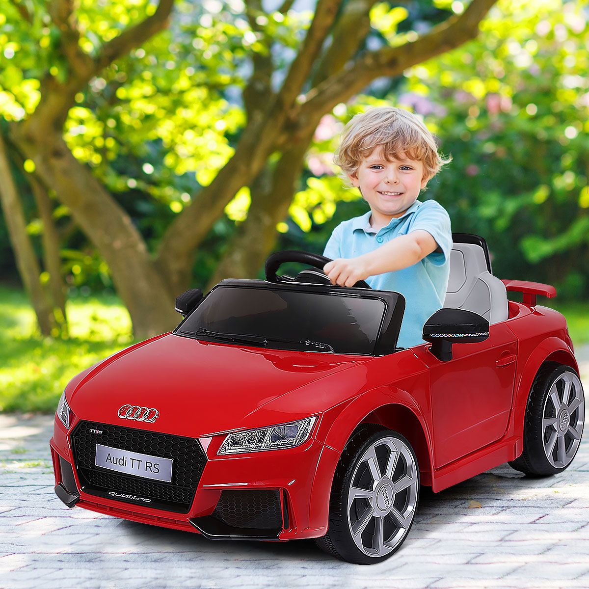 Let this cool electric children's car help kids create precious childhood memories! This Audi electric children's car can be manually controlled or remotely controlled by parents, allowing children to enjoy the fun of driving while ensuring safety. It features an MP3 player and USB interface, allowing children to play music and various stories, learning while playing. Durable and wear-resistant wheels effectively absorb vibrations, ensuring a smooth ride on various road surfaces, fulfilling the driving dreams of little drivers. Two powerful drive motors enable the vehicle to reach a top speed of 3 to 5 km/h, providing children with an exciting driving experience. Furthermore, the spacious seat, pedals, horn, and steering wheel ensure an extraordinary and exciting driving experience for children. Product Features: Remote and Manual ControlThis electric children's car is equipped with a 2.4GHz remote control, allowing parents to easily control the vehicle and avoid safety hazards caused by improper operation by children. Children can also experience real driving fun by controlling the pedals, steering wheel, and other controls. Safety GuaranteeThe vehicle is equipped with a soft-start function. This effectively prevents potential injuries caused by sudden braking or acceleration. Seat belts and lockable doors ensure children are securely fastened to the seat. Four wear-resistant wheels ensure a smooth and safe ride. Multiple Functions for a Fun Driving ExperienceThe horn and LED headlights add to the appeal of this children's stroller. MP3 and USB interfaces allow you to play your child's favorite music, stories, and other content. Dynamic music will excite both boys and girls. Children can adjust the volume themselves. The Perfect Gift for Your ChildThe stylish and cool design attracts children's attention, making this stroller a perfect gift for boys and girls. It's lightweight and portable, allowing children to enjoy driving anytime, anywhere. Suitable for children aged 37-96 months: They can switch songs and adjust the volume by pressing buttons on the dashboard. Powerful and DurableTwo powerful drive motors enable the car to reach speeds of 2.5 to 5 km/h, providing children with an exciting driving experience. Charging time is approximately 8 to 12 hours. Furthermore, this stroller comes with two 6V 4AH batteries and a charger adapter for extended use. Product Features: Remote control and manual operation meet different needs. Four durable wheels ensure safe driving. The horn and LED lights add a realistic touch. The vehicle can reach speeds of 2.5-5 km/h. One-button start for added convenience. A soft-start function ensures smooth acceleration and reliable braking. Doors with safety locks prevent children from falling out. Includes a rechargeable battery and charger adapter. Features an MP3 interface and USB port for connecting external devices. Product Specifications: Color: White/Red. Material: Polypropylene + Iron. Dimensions: 63.5 x 104 x 45.5 cm (L x W x H). Net Weight: 11.7 kg. Speed: 2.5-5 km/h. Charging Time: 8-12 hours. Battery: 6V 4AH. Suitable for children aged 37-96 months. Charger: 12V 500MA. Package Contents: 1 stroller, 1 2.4G remote control, 1 instruction manual.