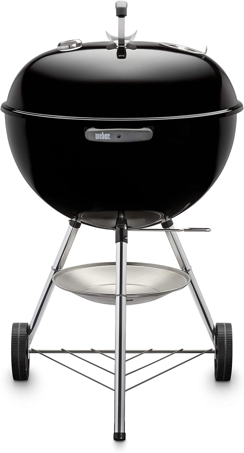 About this item WEBER ORIGINAL 57CM BARBECUE: The classic charcoal barbecue with built-in thermometer, fire bowl and heat-resistant lid, triple-layer steel cooking grate, heavy-duty steel fuel grate, and protective handle. WEBER 57CM GRILL BARBECUE: Easy-to-clean outdoor barbecue. Ideal for cooking and grilling steaks, sausages, and much more to perfection, whatever the season. WEBER CHARCOAL BARBECUE WITH LID: Outdoor charcoal barbecue with wheels, ideal for cooking with family and friends. The Weber Kettle barbecue limits rust and retains heat during cooking. THE UNIQUE WEBER TASTE: This premium Weber barbecue works with charcoal and briquettes for amazing results. Additional accessories for the 57cm Classic Kettle BBQ are available. 10-YEAR WEBER QUALITY GUARANTEE: We are so confident in our products that we guarantee every part of our gas, charcoal, and electric BBQs for up to 10 years. Enjoy delicious barbecues at home with the Weber Classic Kettle 57cm Charcoal BBQ. Stay true to the modern version of our oldest BBQ the Original Kettle. Designed by Weber's founder himself and used all over the world: it's the very essence of barbecue. The built-in lid thermometer helps you adjust your BBQ in no time for perfect cooking. The convenient lid hook lets you store the main lid to the side for hands-free cooking. Featuring a heat-resistant handle, this BBQ is easy to use and effectively protects you from the risks of extreme heat. Easy to clean, the original Weber Kettle grill features an instant cleaning system made of aluminized steel located in the center of the bowl to regulate airflow and expel ash. Its clever wheeled design makes it easy to move around your home. The grill includes a rust-resistant aluminum ash catcher positioned between the three legs to prevent any ash from escaping. This beautiful Weber Kettle grill can be used with charcoal or briquettes for an authentic grilled flavor.